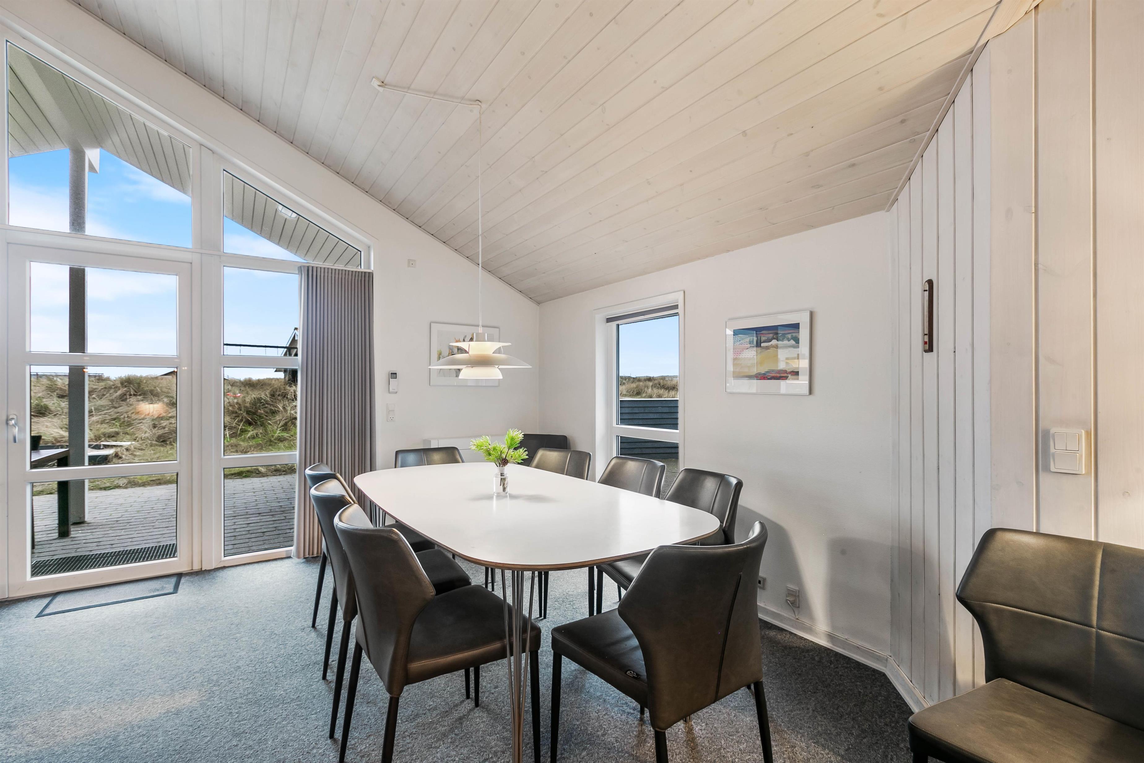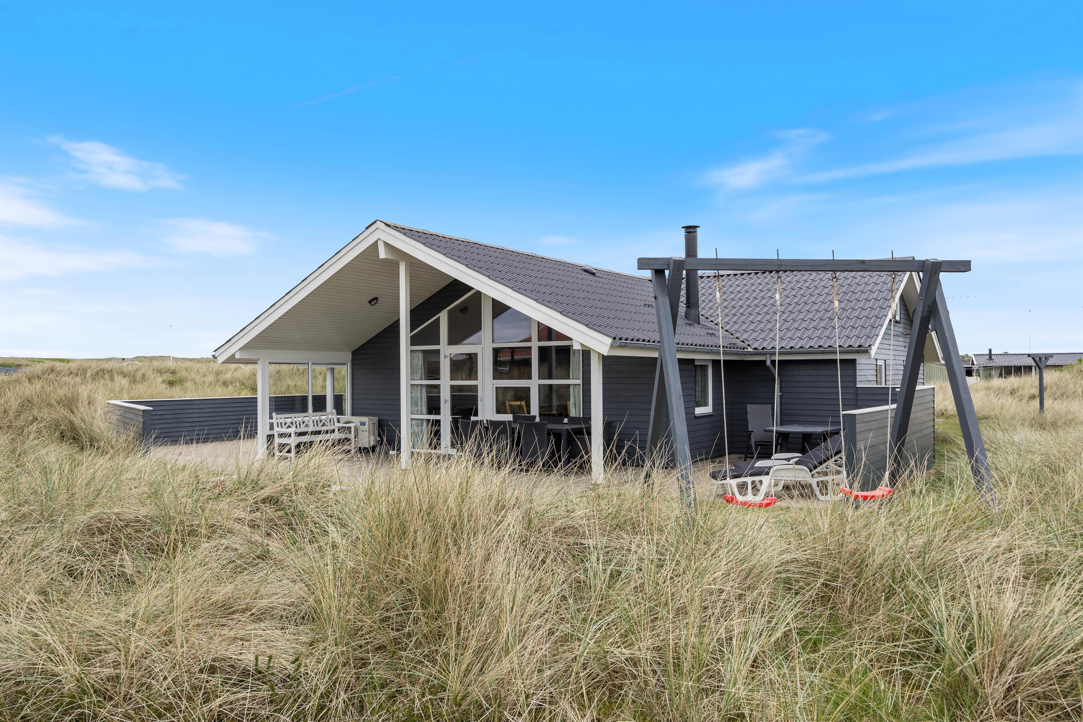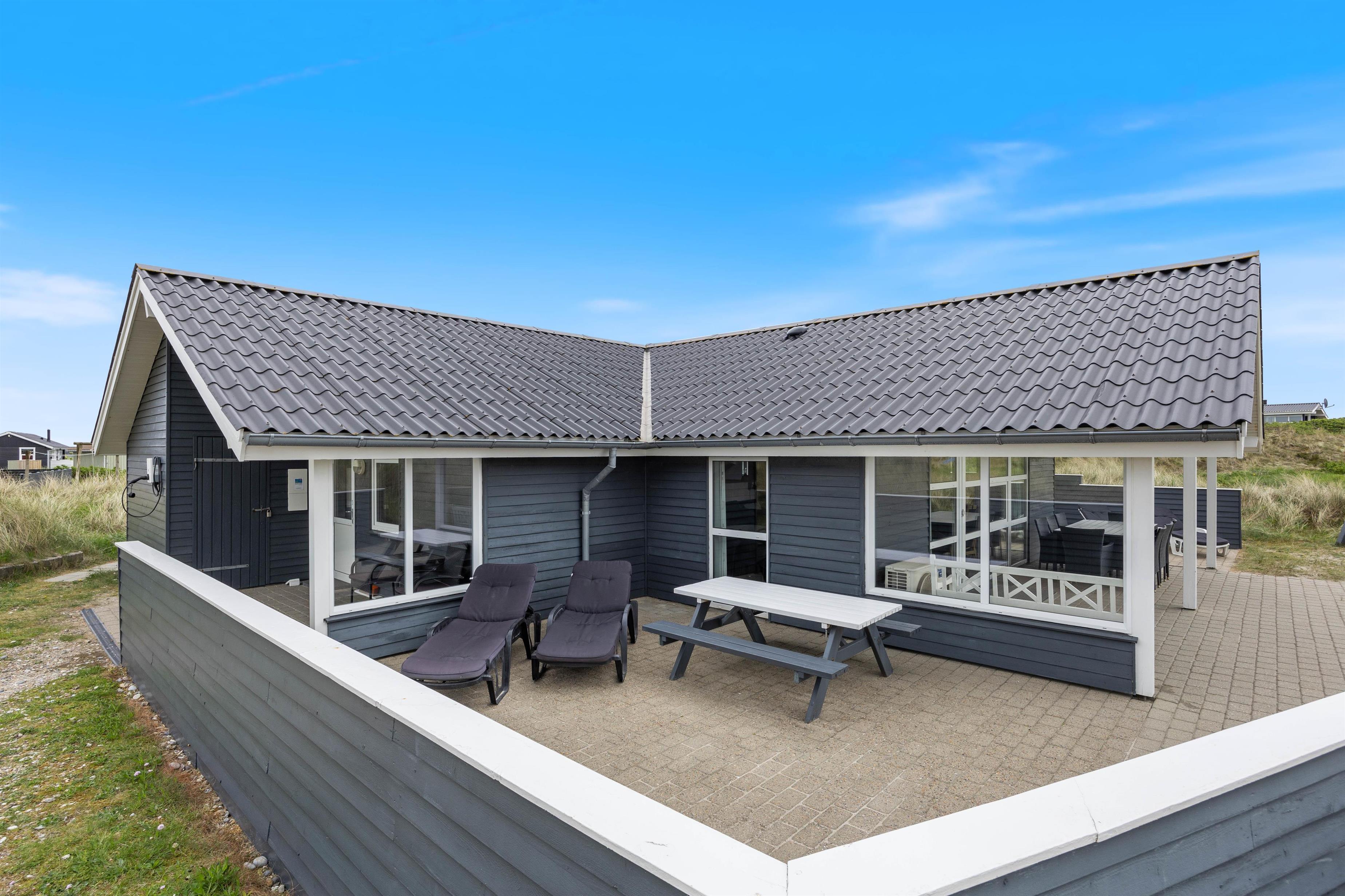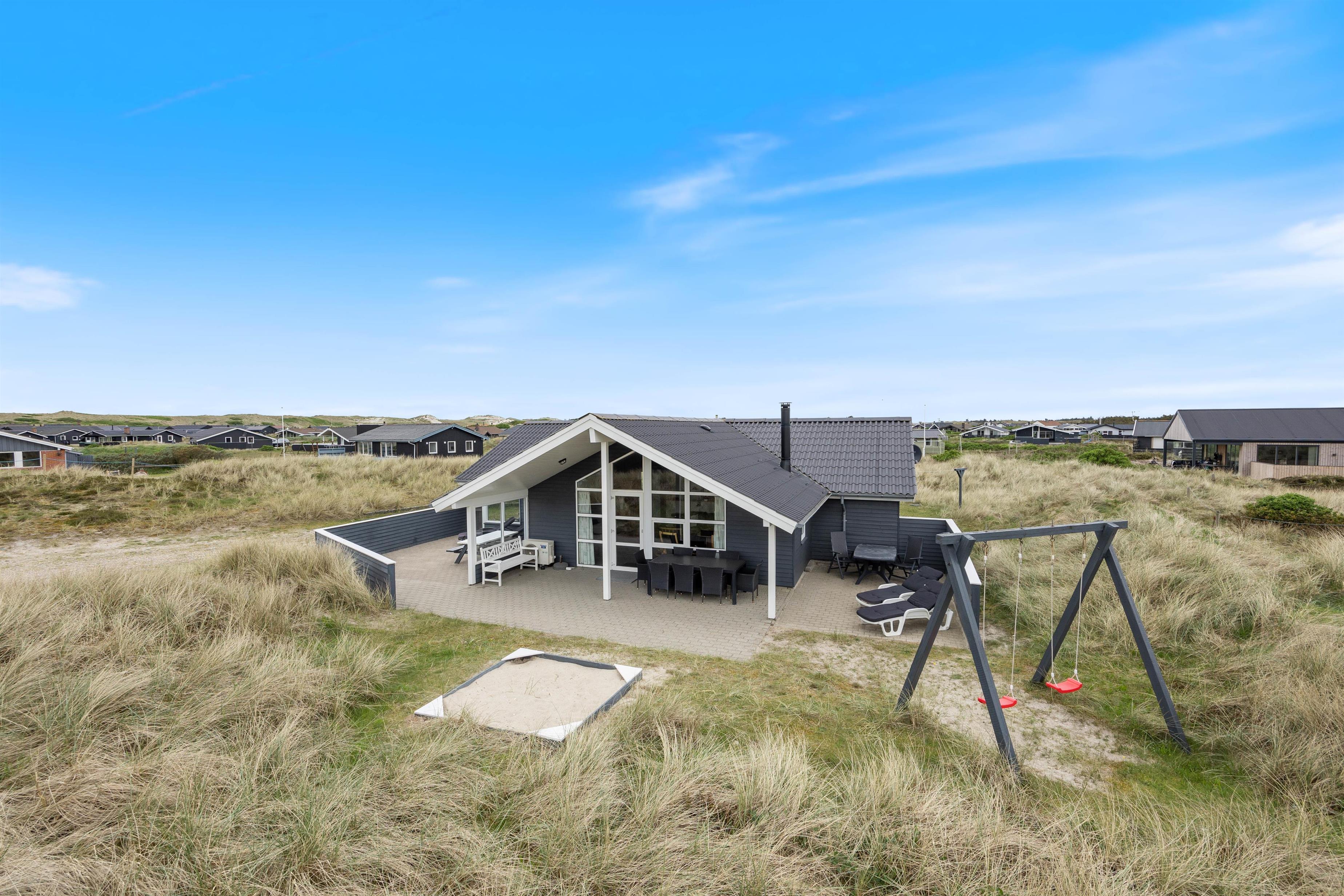 Her har I mulighed for at holde ferie i et feriehus tæt på stranden i Vestjylland. Sommerhuset er rummeligt og velindrettet, så det egner sig til den store familie på op til 10 personer. På det store badeværelse er der både sauna og et spabad til 6 personer. Derudover er der gode afskærmede og delvist overdækkede terrasser til hyggelige grillaftener.