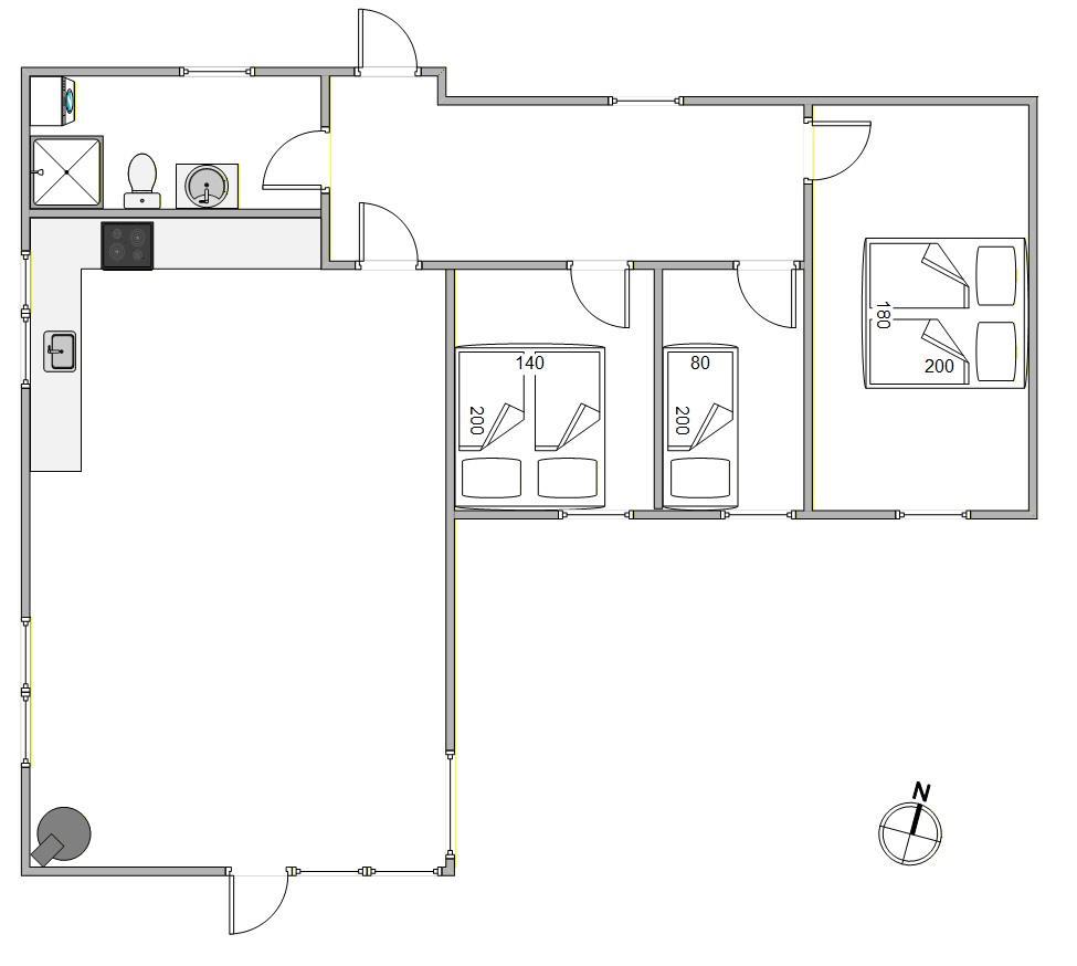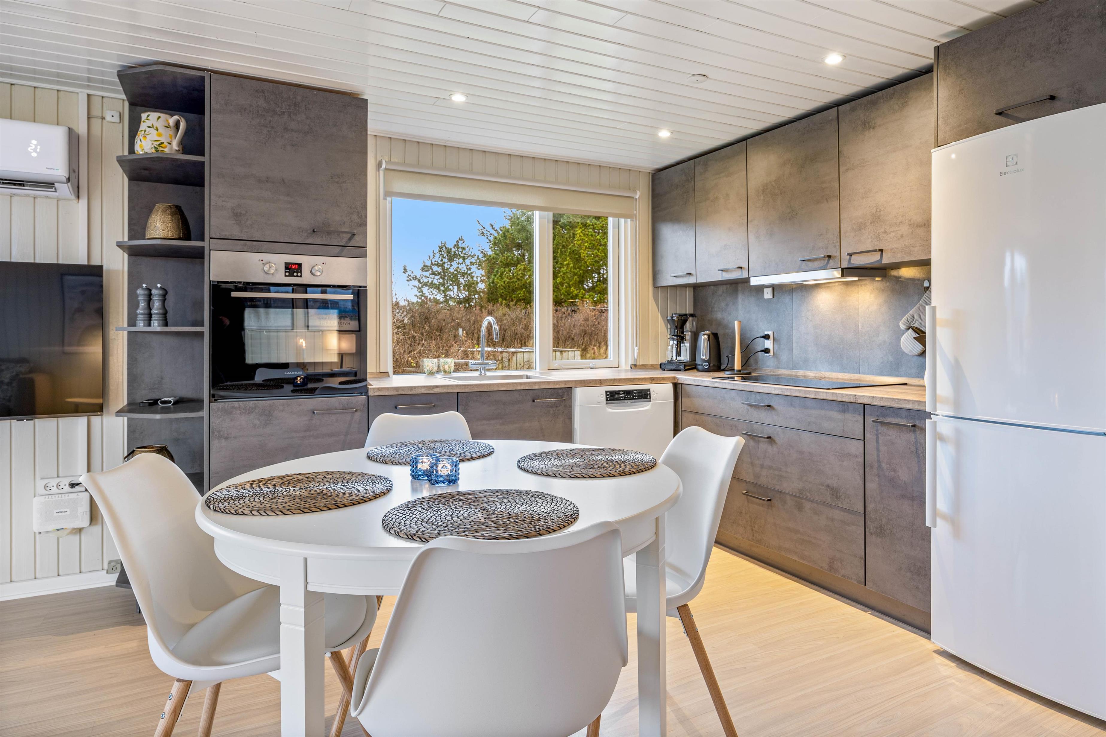 I køkkenet gør opvaskemaskinen og det veludstyrede inventar hverdagen nemmere, så I får mere tid til afslapning. På sommerhusets 79 m² finder I 3 soveværelser - 2 med en dobbeltseng og 1 med en enkeltseng, så alle har deres eget private fristed. For ekstra bekvemmelighed er der også en vaskemaskine og tørretumbler til rådighed, og Google Chromecast sørger for, at I kan nyde jeres yndlingsunderholdning på ferien.