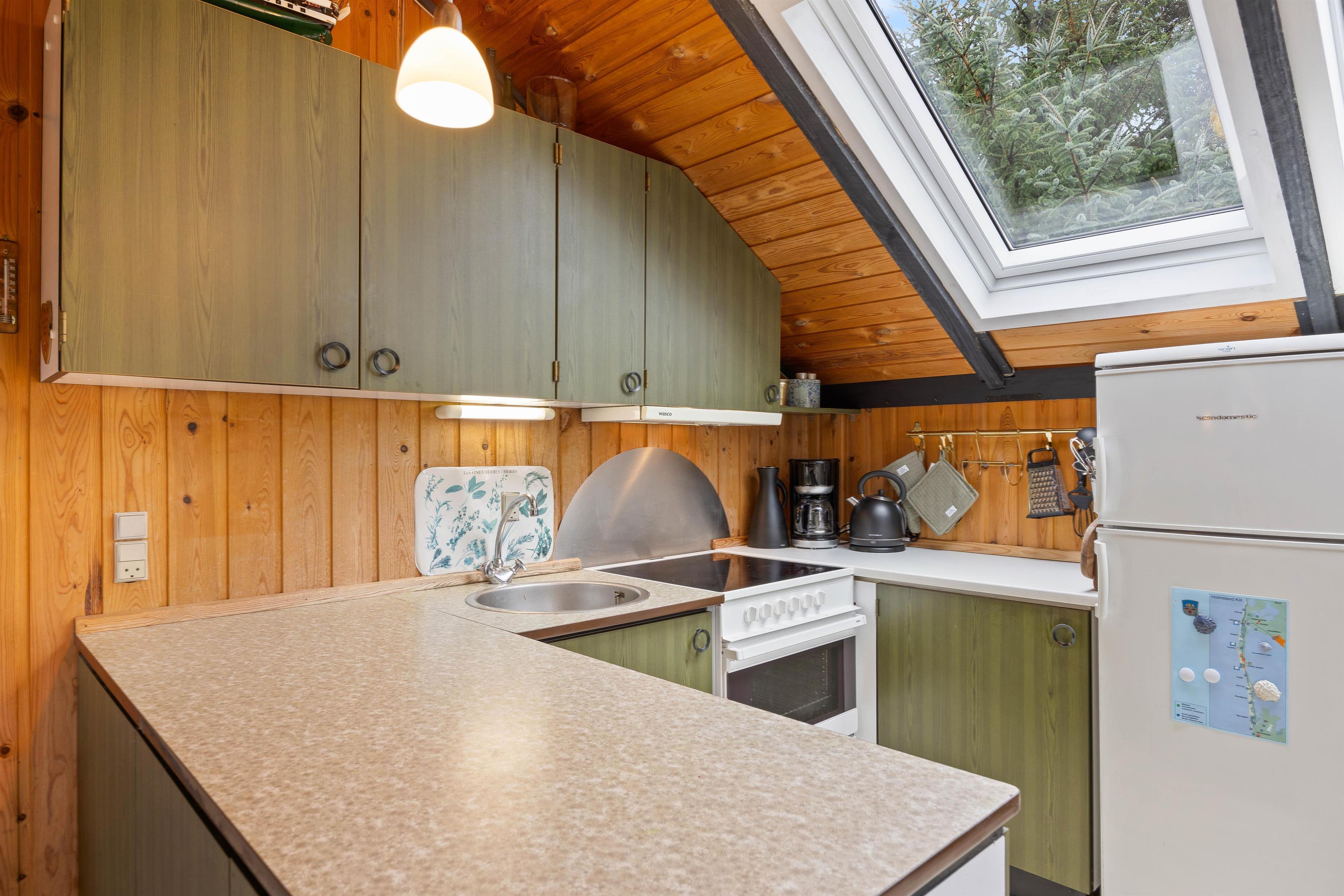 På Kirstinevej 6 vil I straks føle jer hjemme, når I træder ind i dette sommerhus. I stuen kan I hygge jer i sofaen, se film sammen på TV'et eller læse en god bog. Køkkenet indeholder alt, hvad I har brug for til at forkæle hinanden med lækre måltider eller delikatesser fra fiskebilen. Ved spisebordet kan I dække op til dagens måltider, spille et brætspil eller gætte en kryds-og-tværs. Rumtemperaturen kan I holde behagelig ved at gøre brug af den energibesparende varmepumpe eller I kan tænde op i brændeovnen. Brændeovnen er helt fantastisk på de køligere dage, hvor den både skaber varme og hygge.