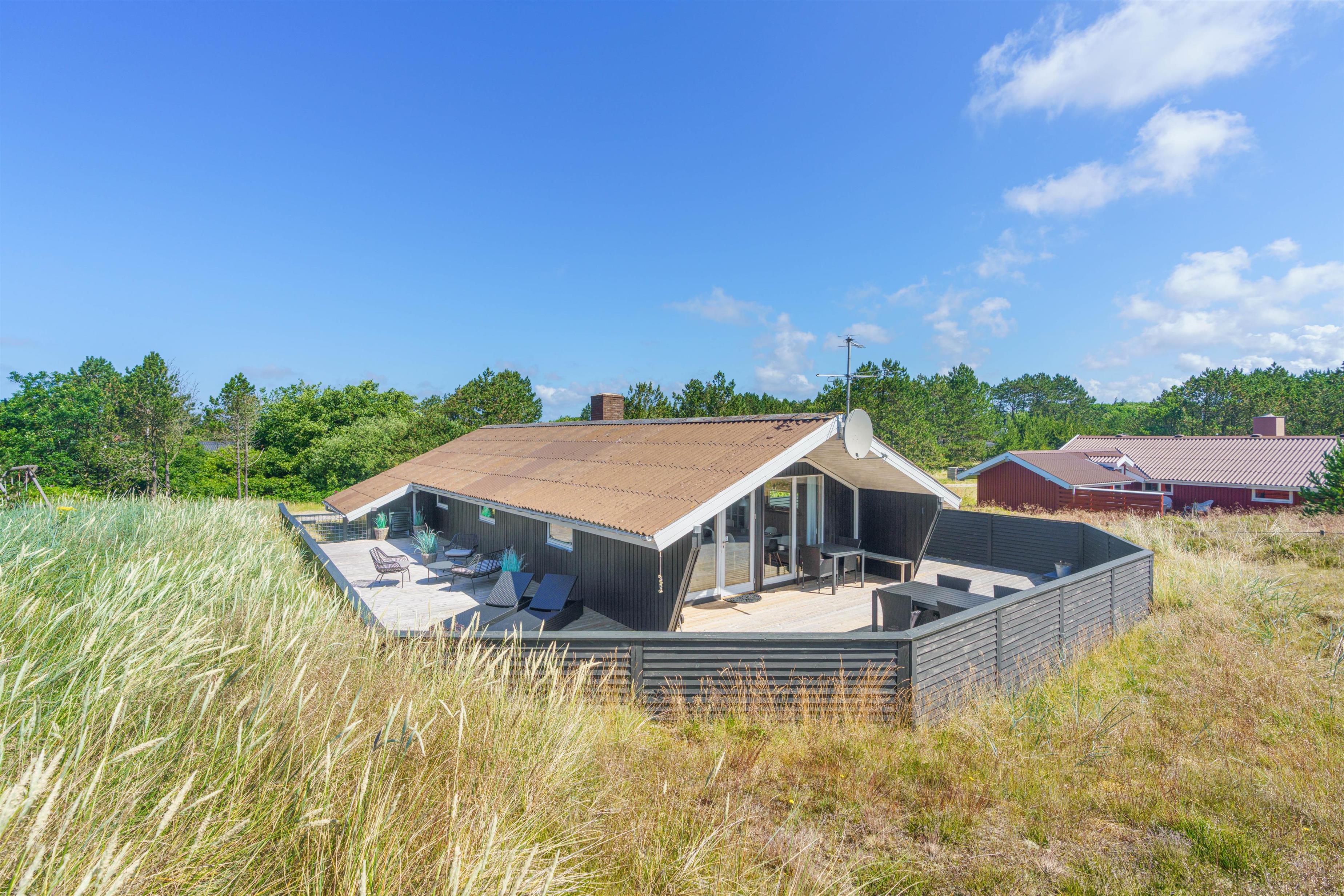 Feriehuset er skønt beliggende på en afskærmet naturgrund med masser af læ muligheder omkring huset. Vesterhavet er i kort gåafstand fra feriehuset og indbyder til leg og solbadning.
