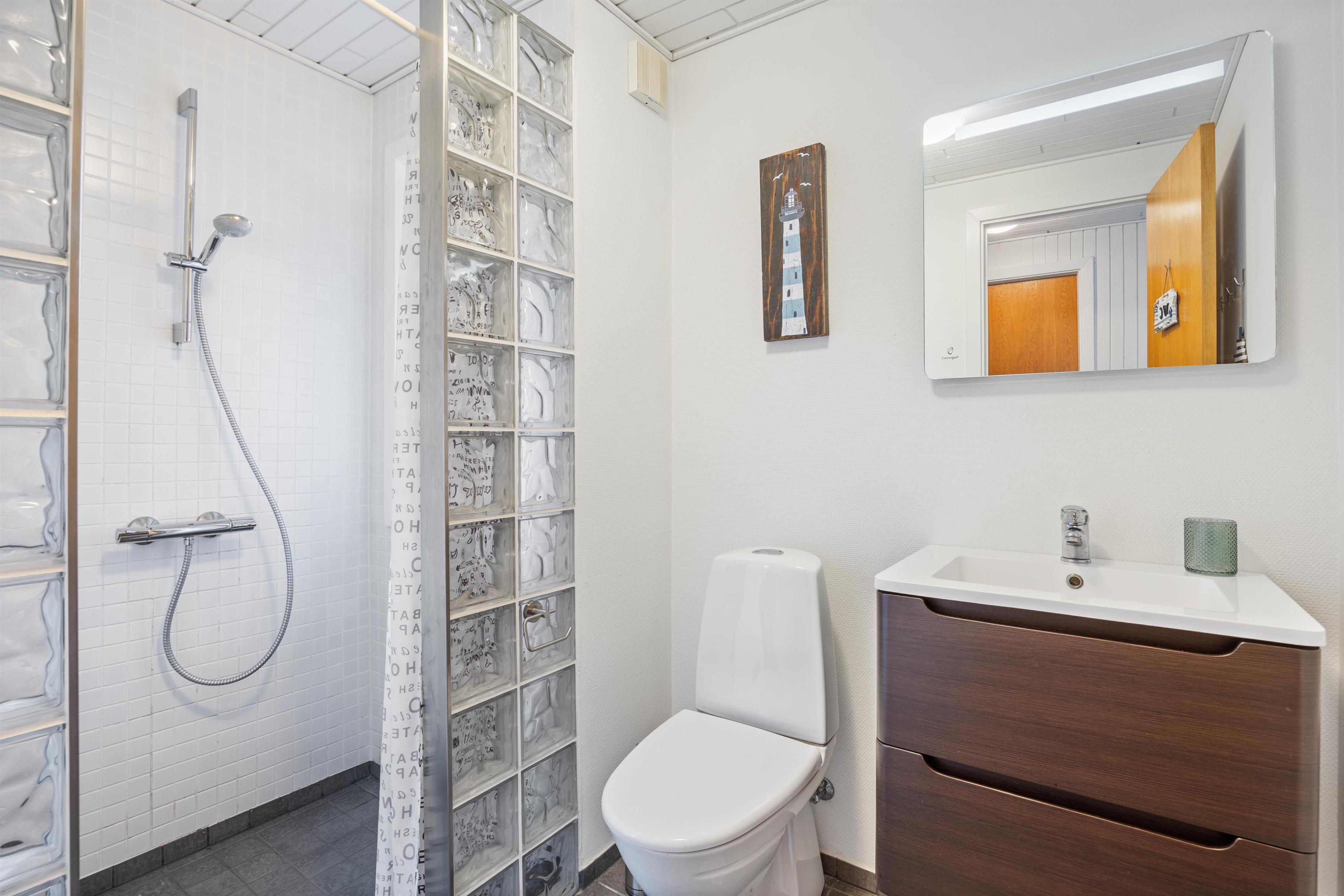 Badeværelset har gulvvarme, og i de 3 soveværelser fordeles 6 komfortable sovepladser sig med 1 værelse med dobbeltseng 180 x 200 centimeter, 1 værelse med dobbeltseng 140 x 200 centimeter og 1 værelse med køjesenge 2 x 70 x 190 cm. Her er også vaskemaskine og tørretumbler, så I kan friske garderoben op i løbet af ferien. Den omkostnings- og energibesparende varmepumpe sørger for behagelige temperaturer i feriehuset.