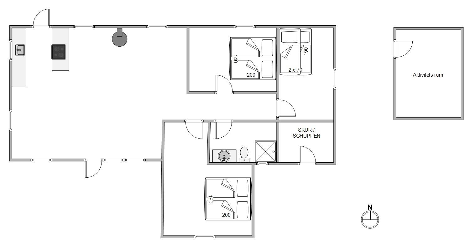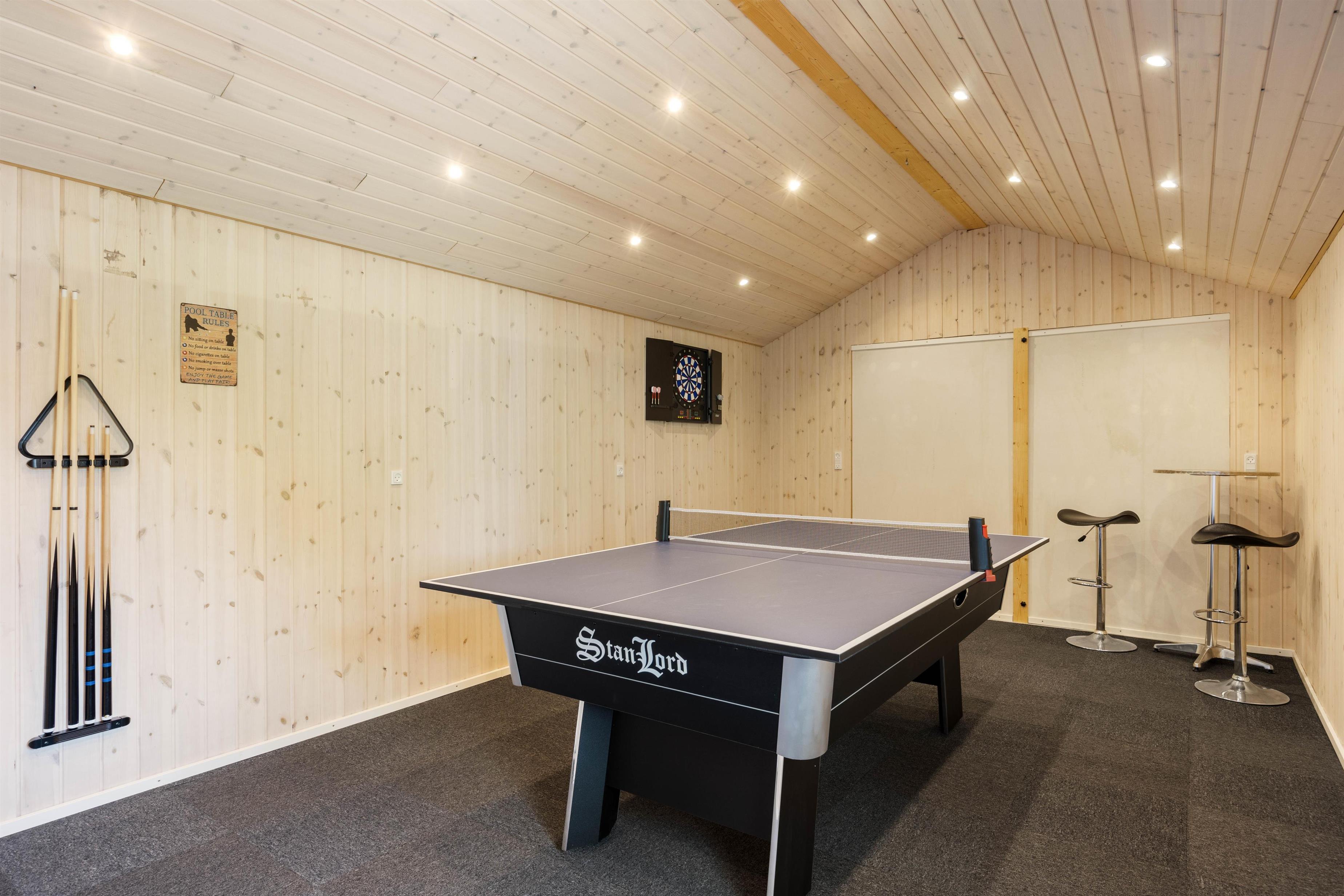 På Sigfred Jensens Vej 37 melder feriestemningen sig straks, man træder ind ad døren. Den lyse og venlige indretning indbyder til, at I slapper af i sofaen foran den knitrende ild i brændeovnen. Det åbne køkken indeholder alt, hvad I behøver for at forkæle hinanden med lækre hjemmelavede måltider, herunder induktionskomfur, opvaskemaskine og mikrobølgeovn. I det separate aktivitetsrum kan I spille bordtennis, pool eller elektronisk dart.