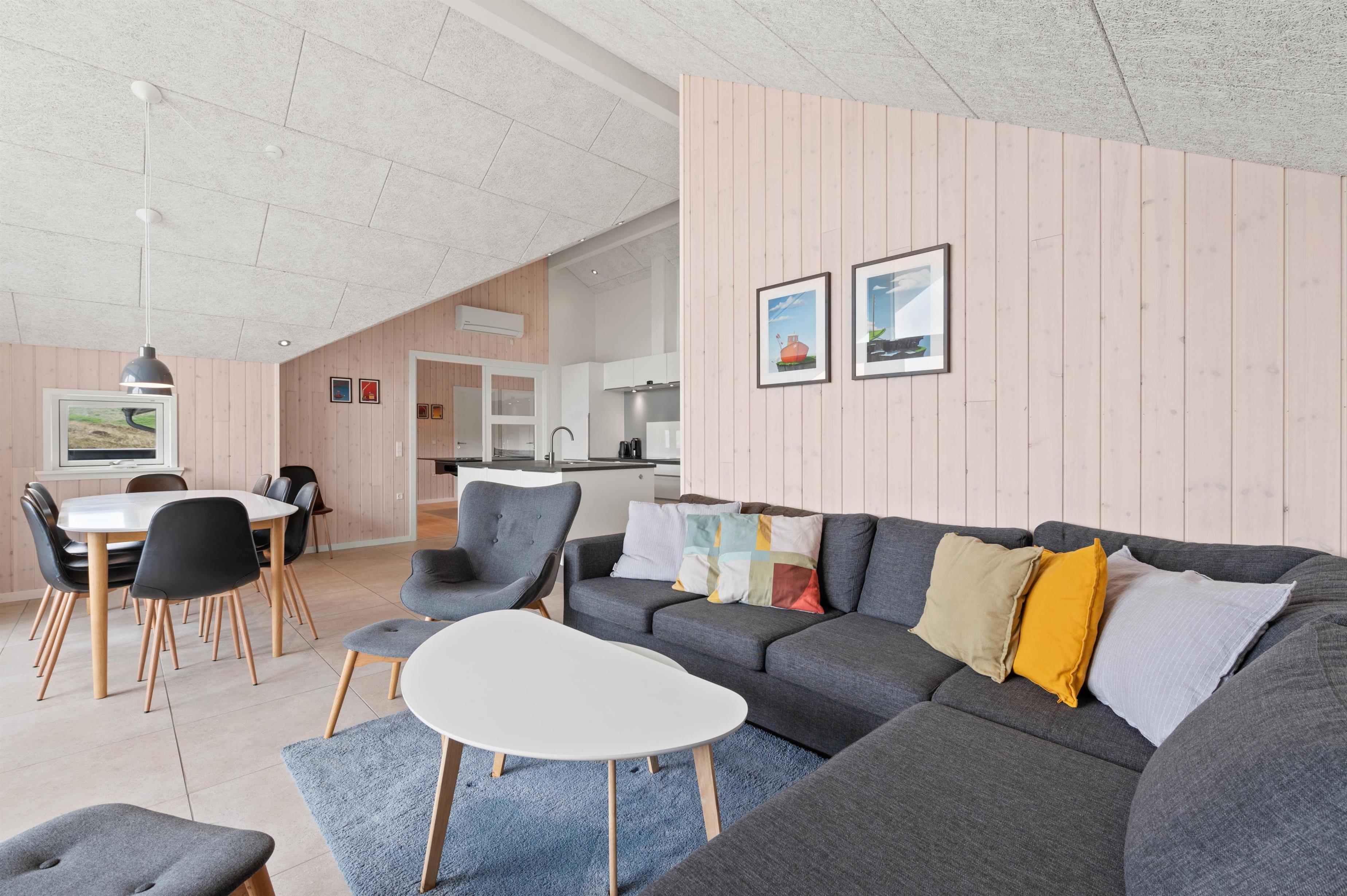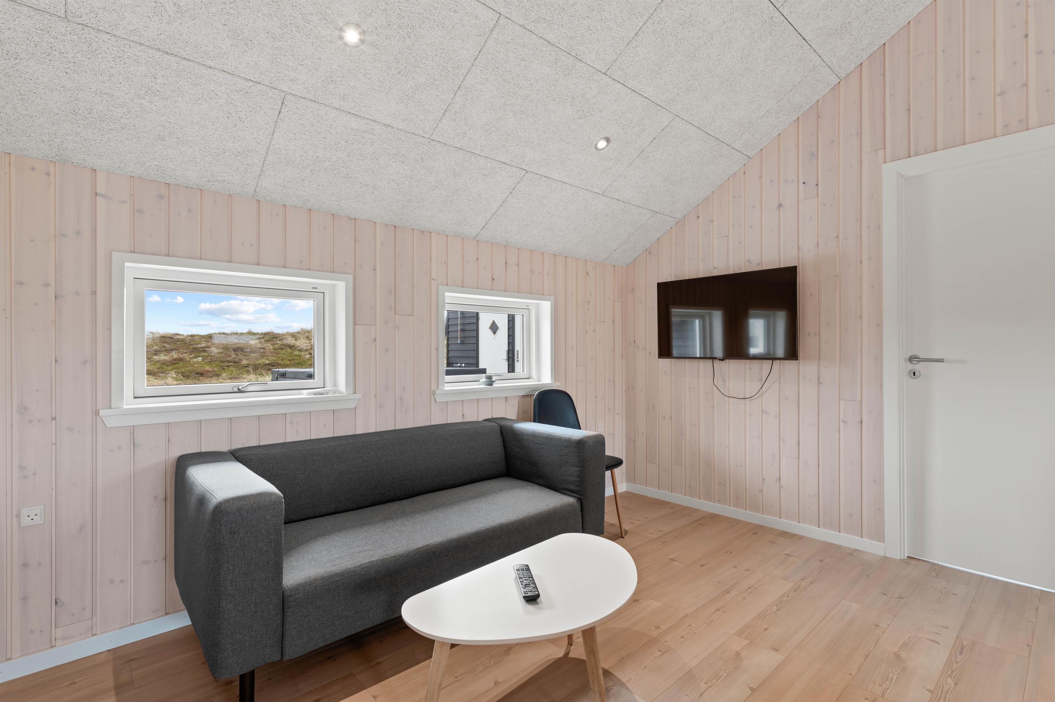 I opholdsstuen af sommerhuset kan du hygge dig med din familie og vennerne. Den energibesparende varmepumpe sikrer en behagelig temperatur hele året rundt.