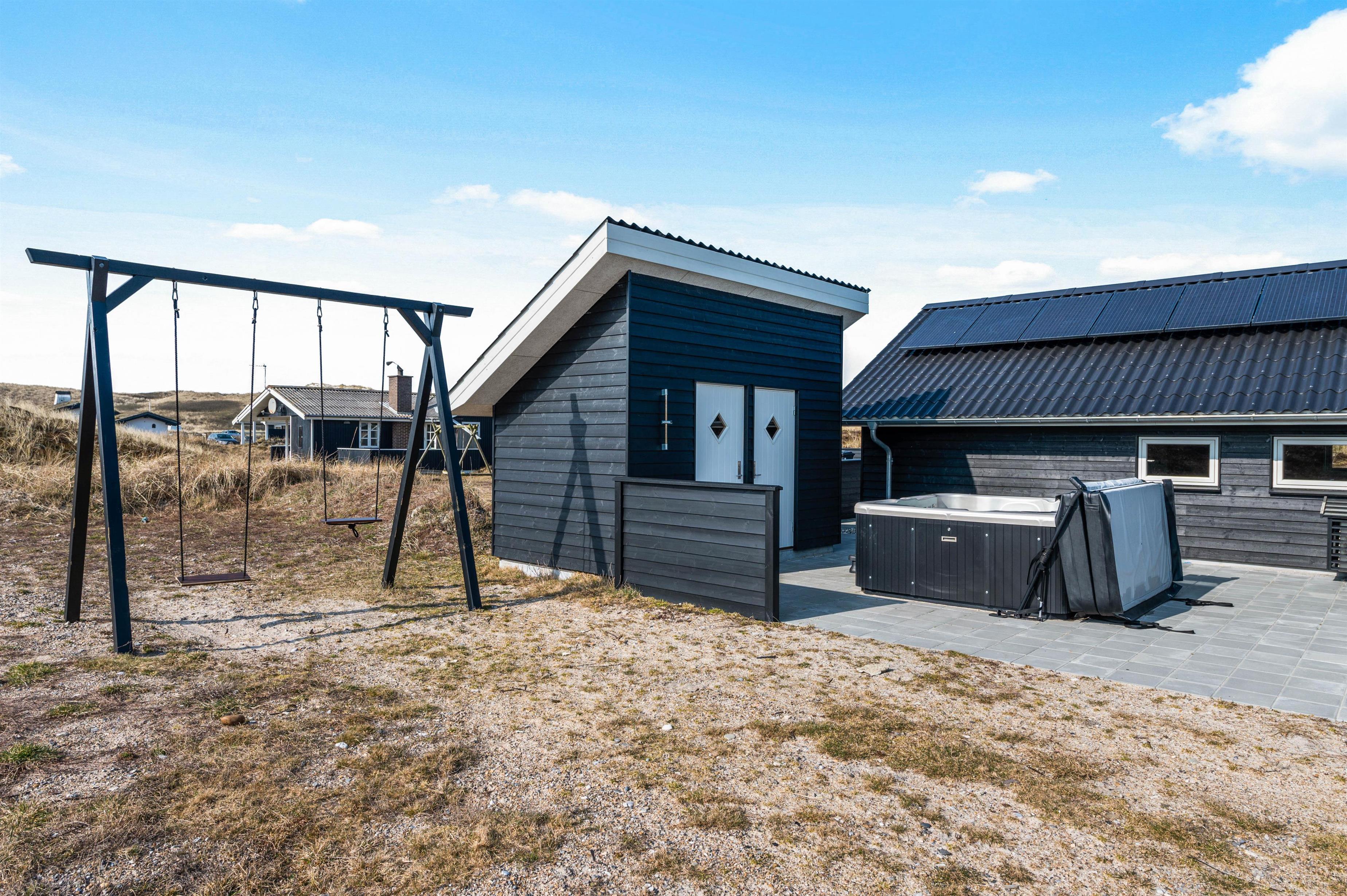 Ønsker du at koble helt af og har lyst til at nyde wellness, mens du holder ferie med familien, er dette sommerhus det perfekte valg til jer. Efter et solbad på terrassen i den friske vesterhavsluft kan du køle ned under den forfriskende udendørs bruser, som kan bruges fra april til november.