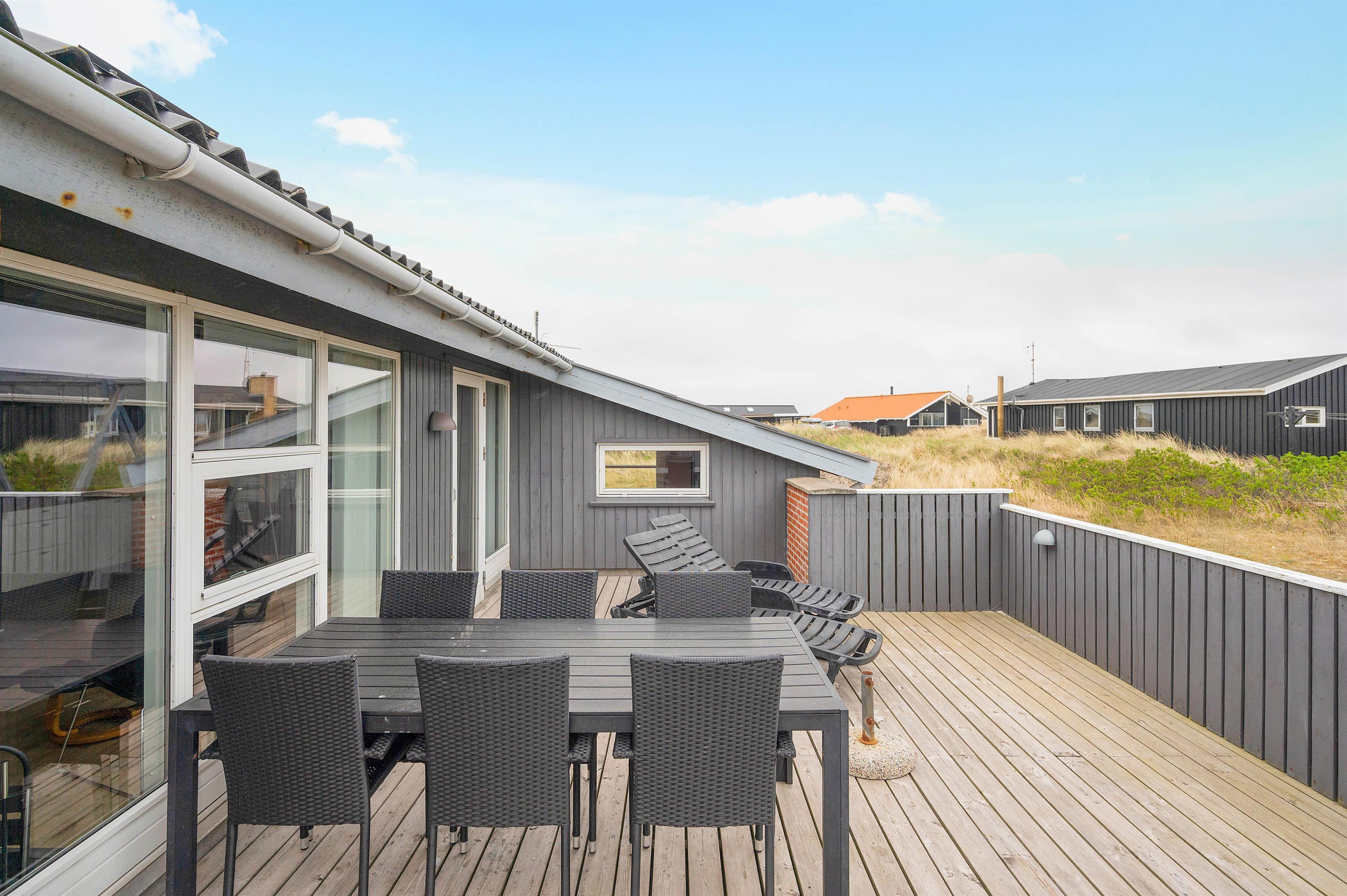 De store, velmøblerede terrasser er ideelle for familien med småbørn og indbyder til afslappende nydelse af solen, den friske luft i Vestjylland og den storslåede natur.En begivenhedsrig feriedag kan afsluttes med et lækkert aftensmåltid, som er tilberedt på sommerhusets grill.