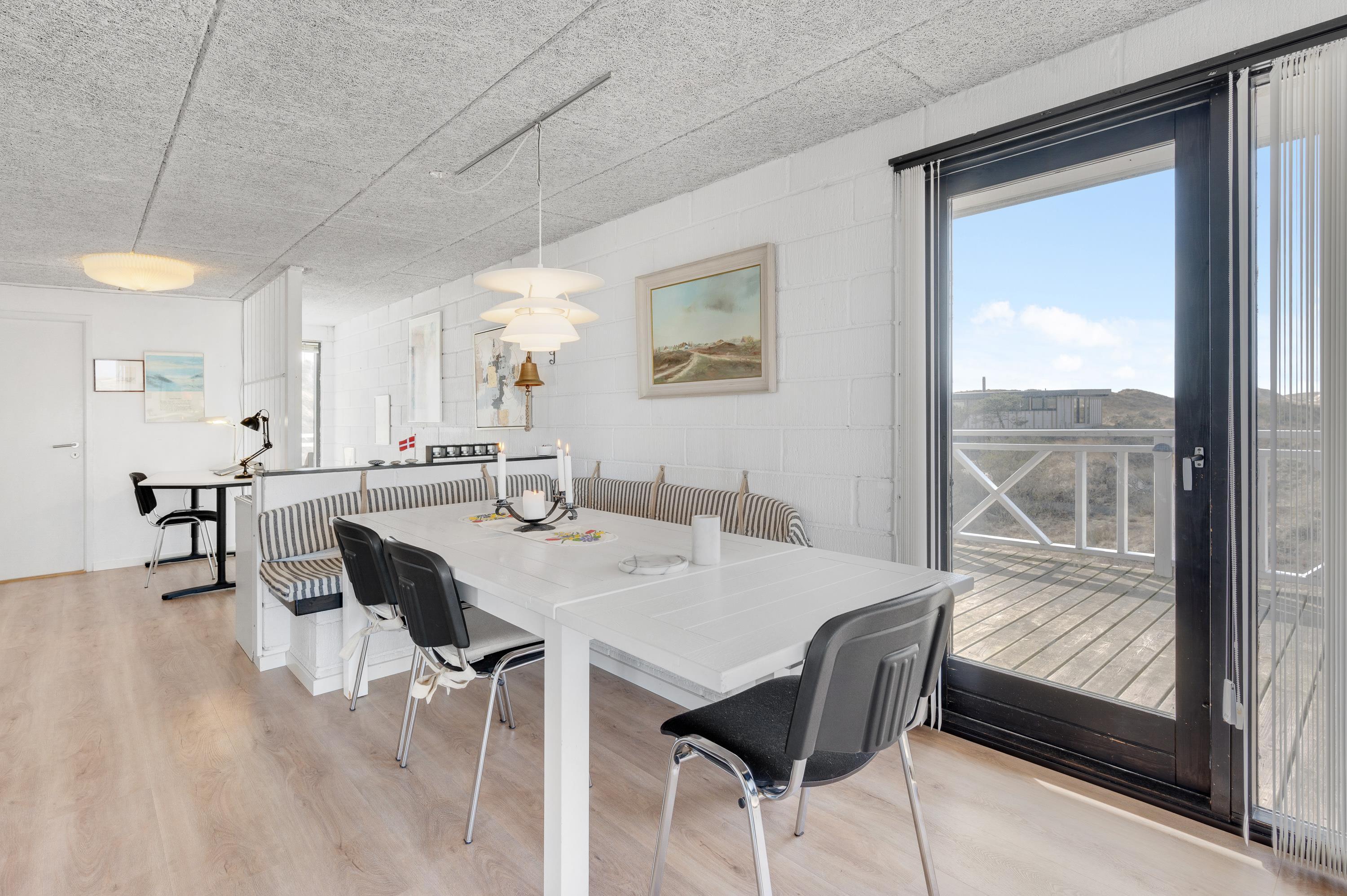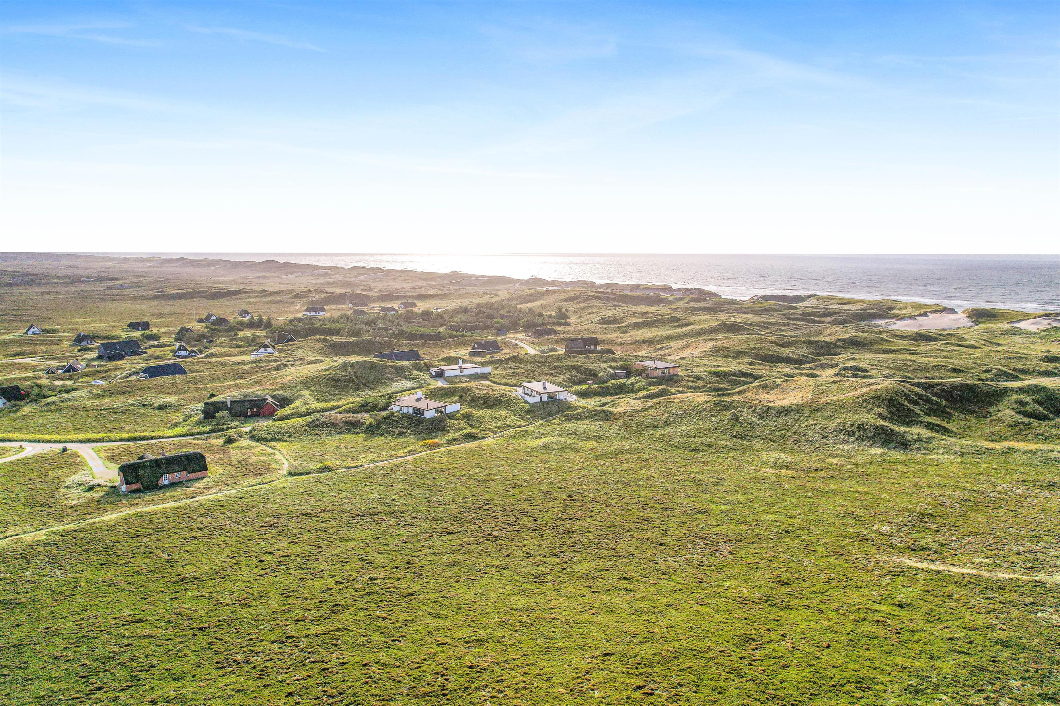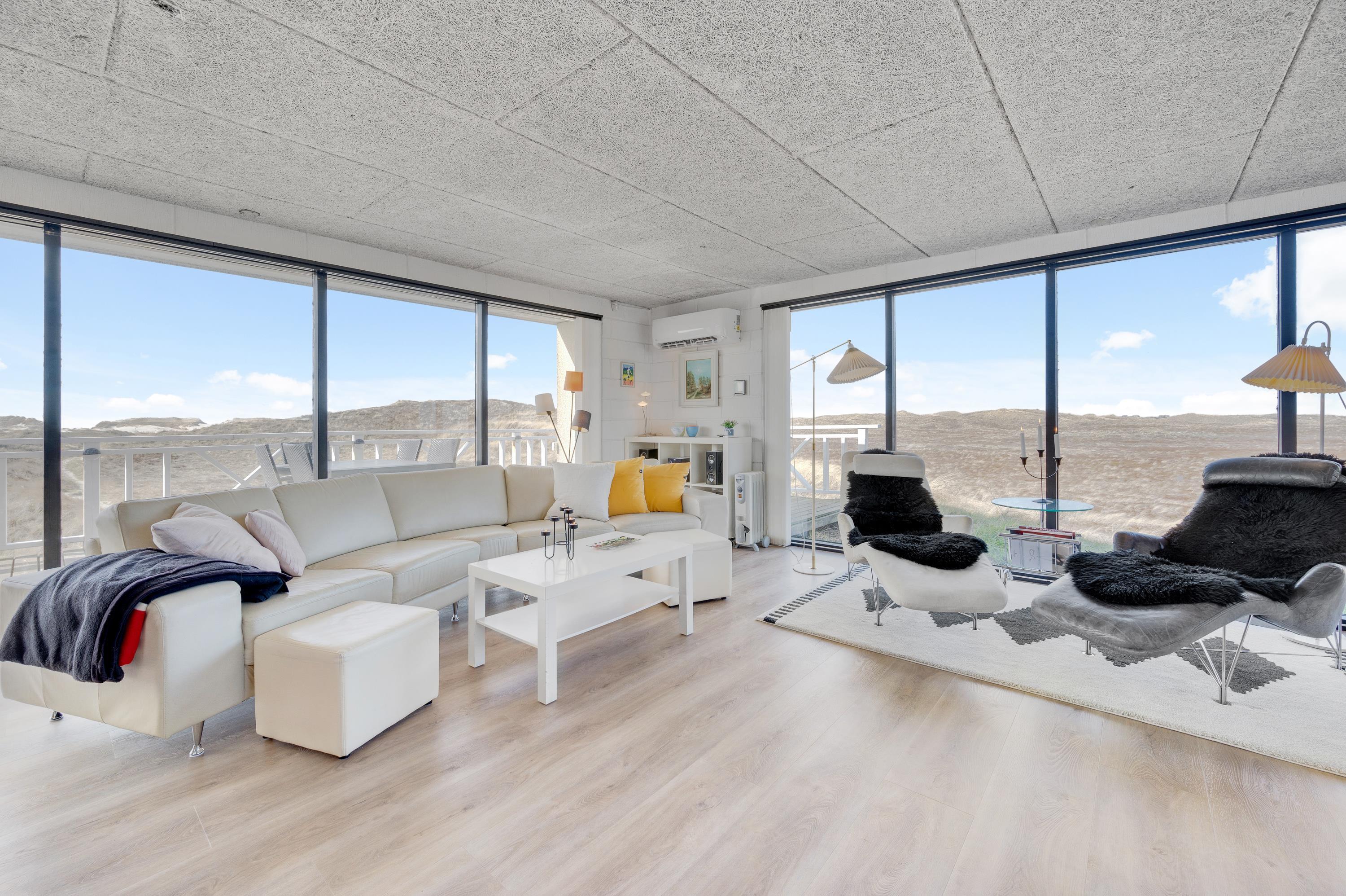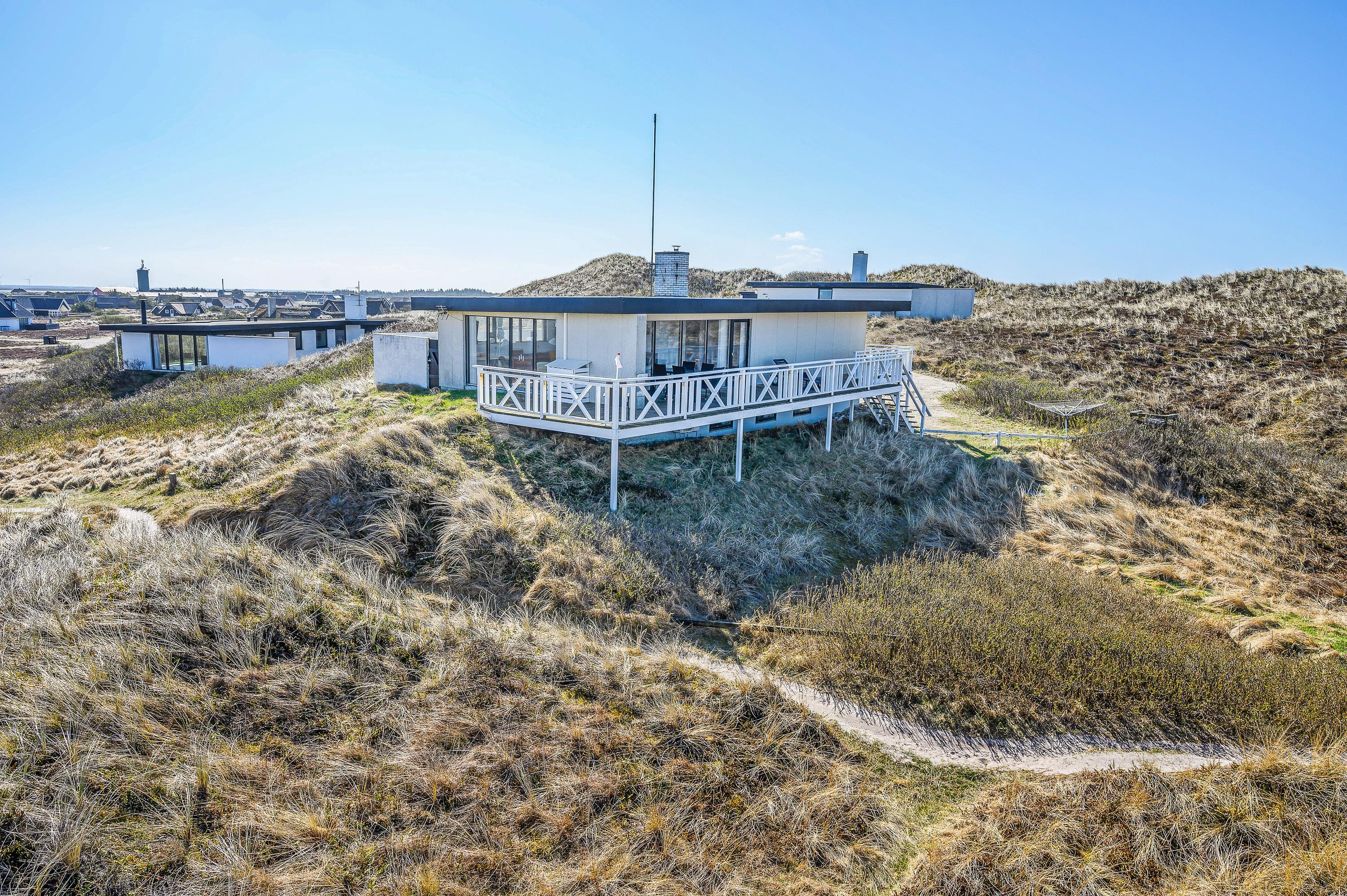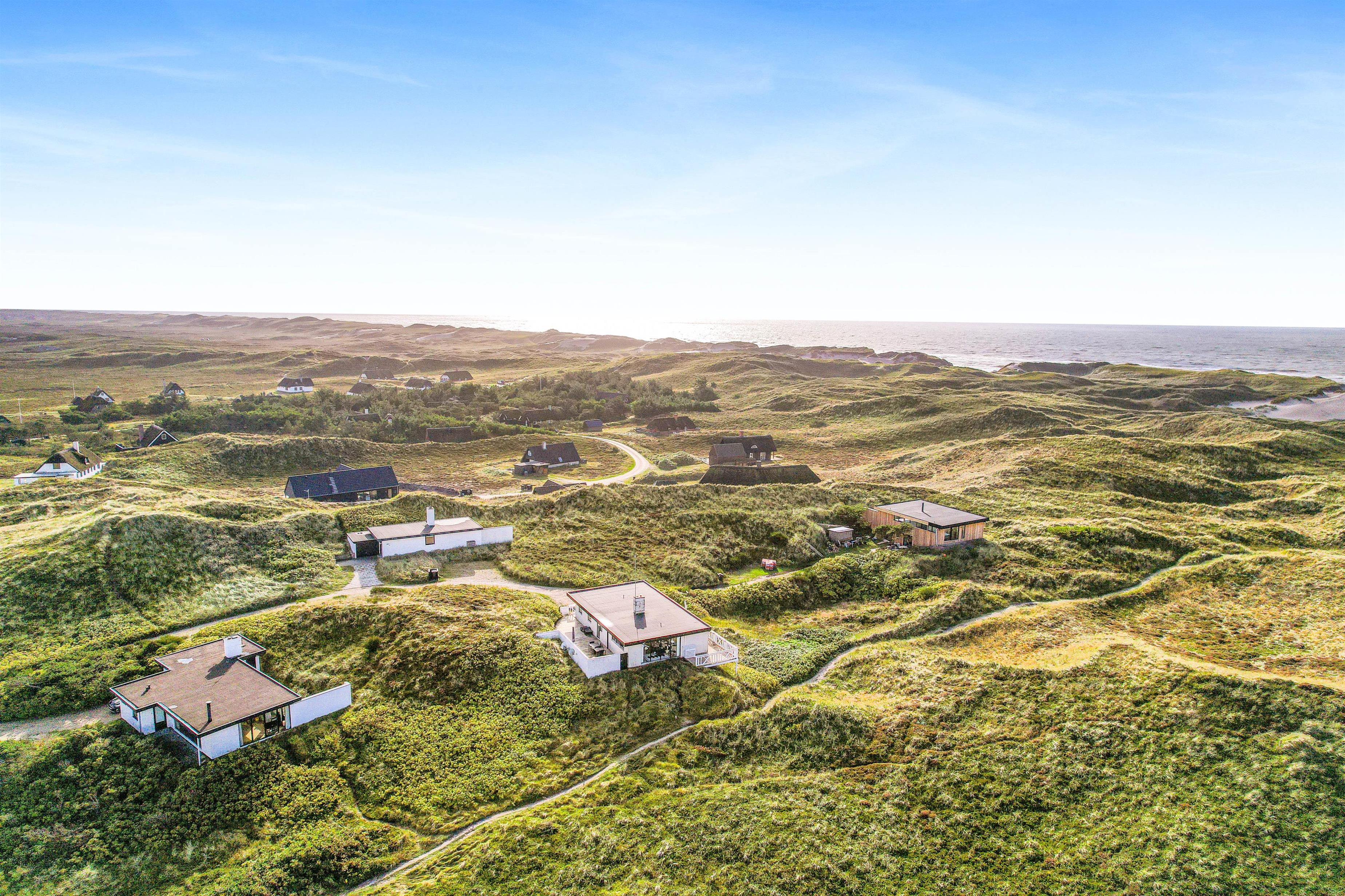 Det dejlige hus med panoramaudsigten er omgivet af terrasser og alle måltider kan således nydes ude, lige meget hvor på himlen solen står. Følg solen hele dagen, fra opgang i øst til nedgang i vest over klitterne. Ultimativ nydelse er en veltilberedt grillmiddag, mens I ser solen farve himlen orangerød over klitterne.