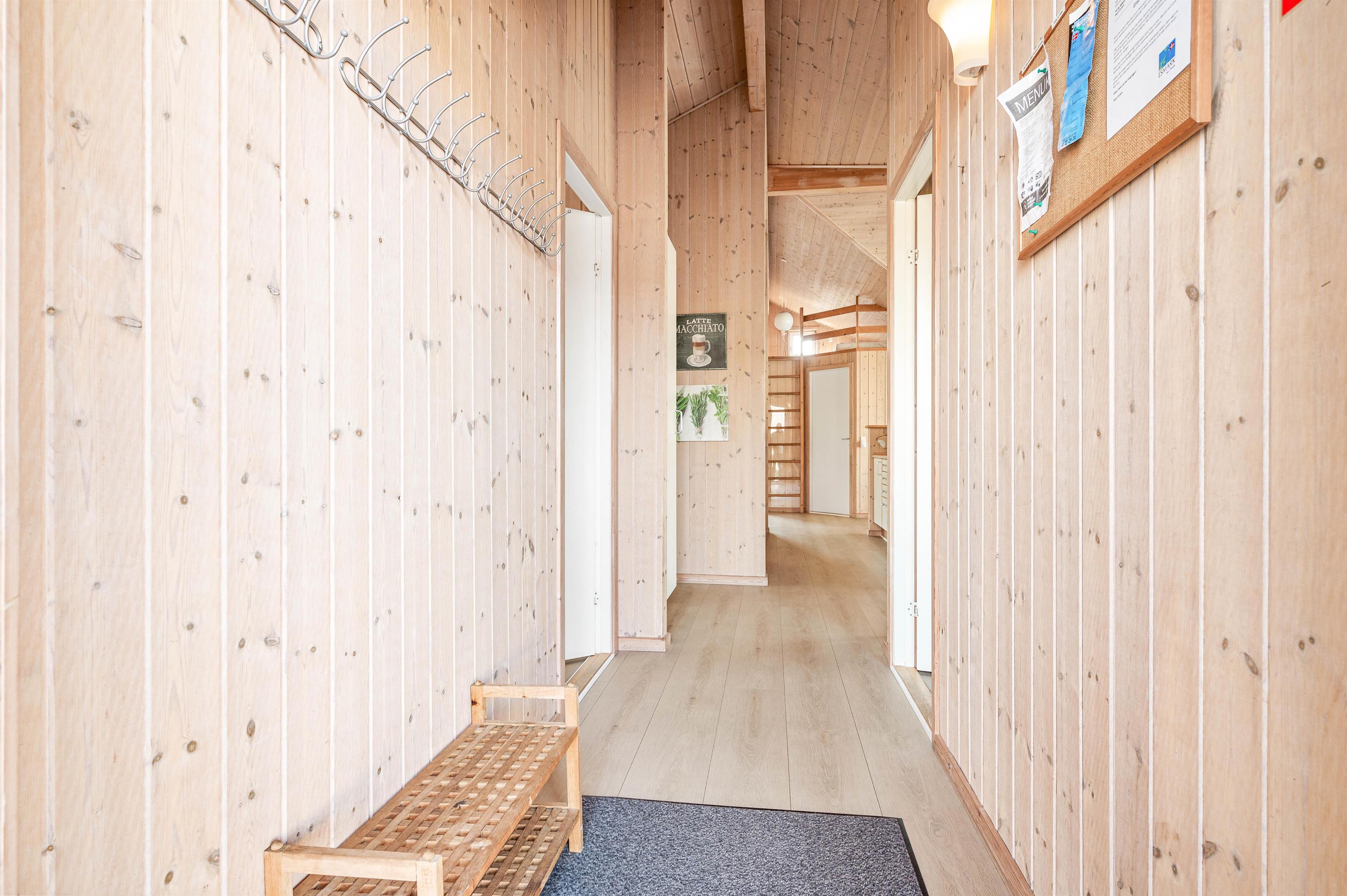 Sommerhuset er stort og indbydende med masser af lysindfald gennem de store vinduespartier og åbent til kip i opholdområdet. Her er plads til 8 personer. De 4 soveværelser er alle udstyret med dobbelte boksmadrasser og har trægulve.