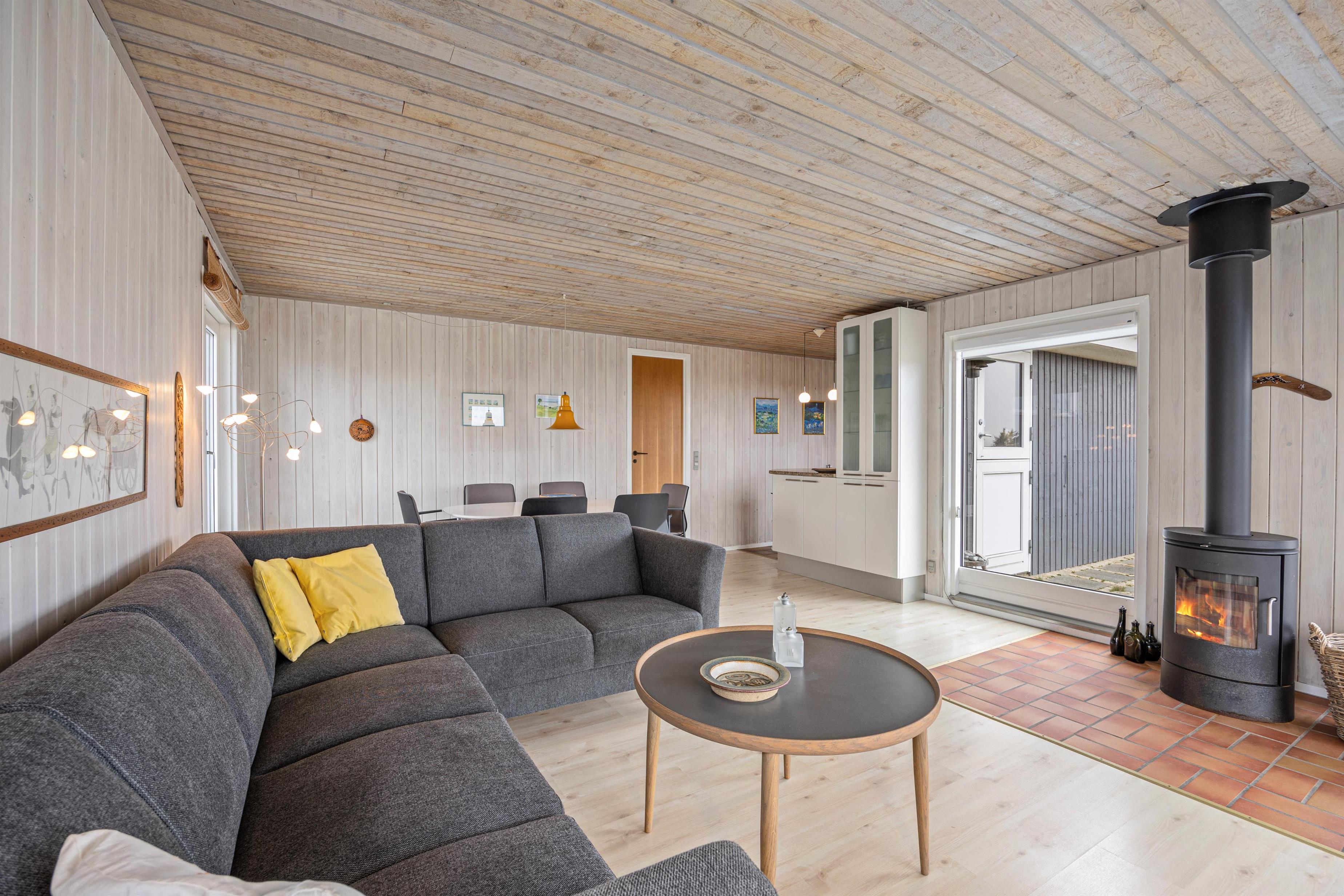 Det 80 kvadratmeter store sommerhus har plads til op til 5 personer. I stuen kan I hygge jer foran ilden i brændeovnen, og straks vil feriestemningen brede sig, uanset årstiden. I de 3 soveværelser kan I hvile ud efter en dag fyldt med oplevelser. Læg mærke til, at den friske vesterhavsluft gør noget godt for nattesøvnen.
