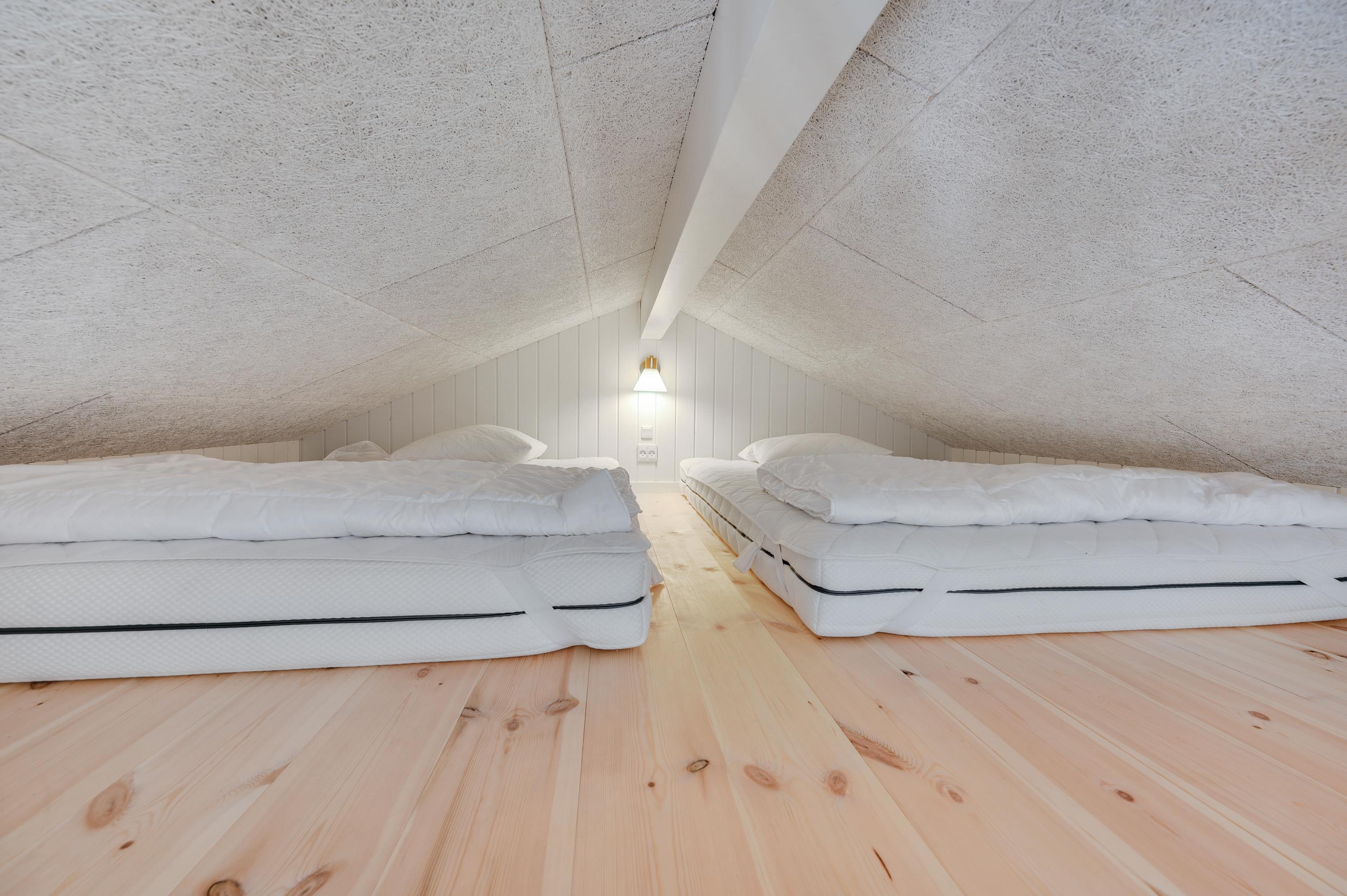 Sommerhusets sovepladser fordeler sig på 4 gode soveværelser samt en hems, som er et stort hit blandt børnene. Der er 3 komfortable dobbeltsenge, mens de resterende sovepladser er enkeltsenge.