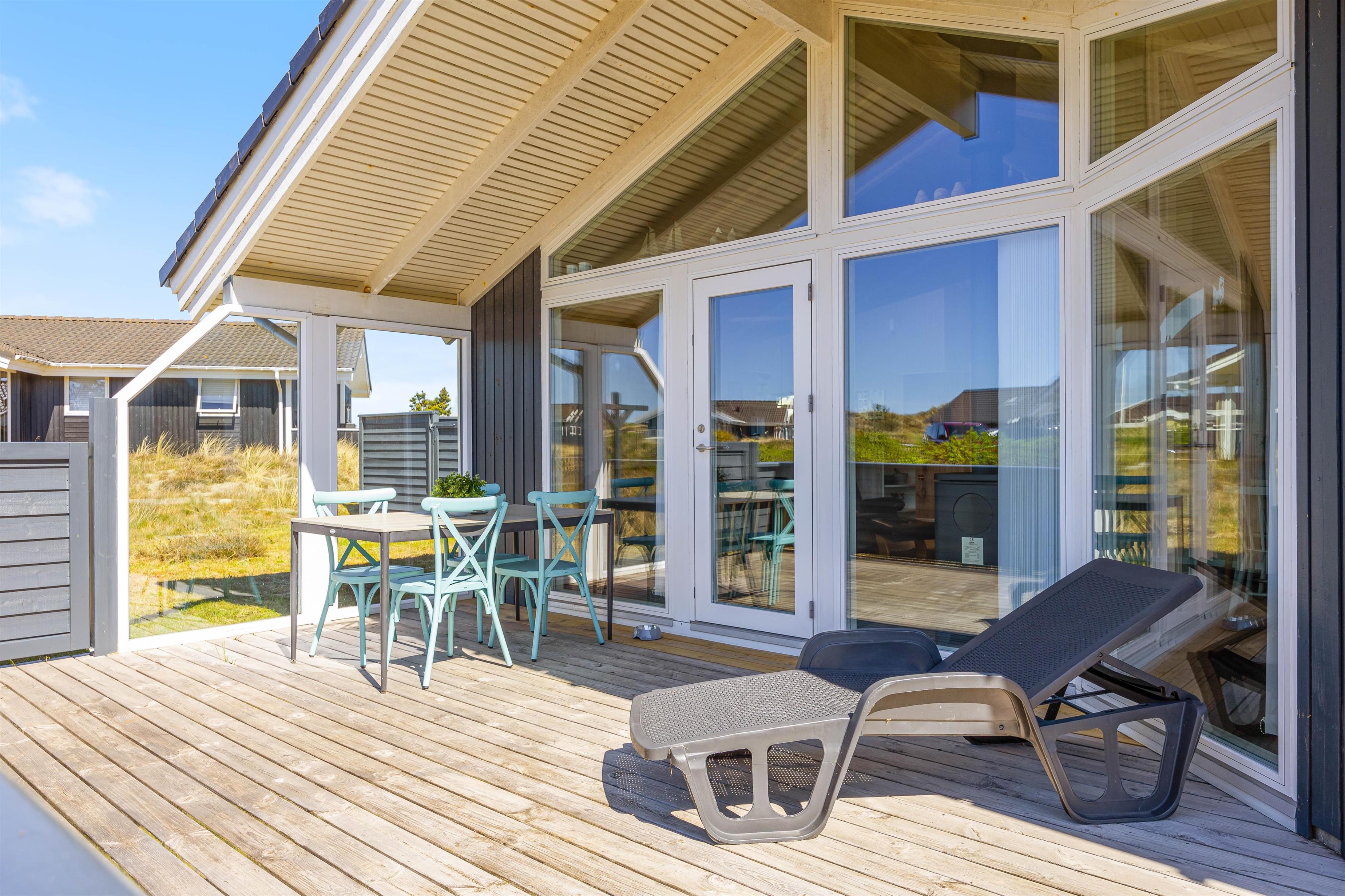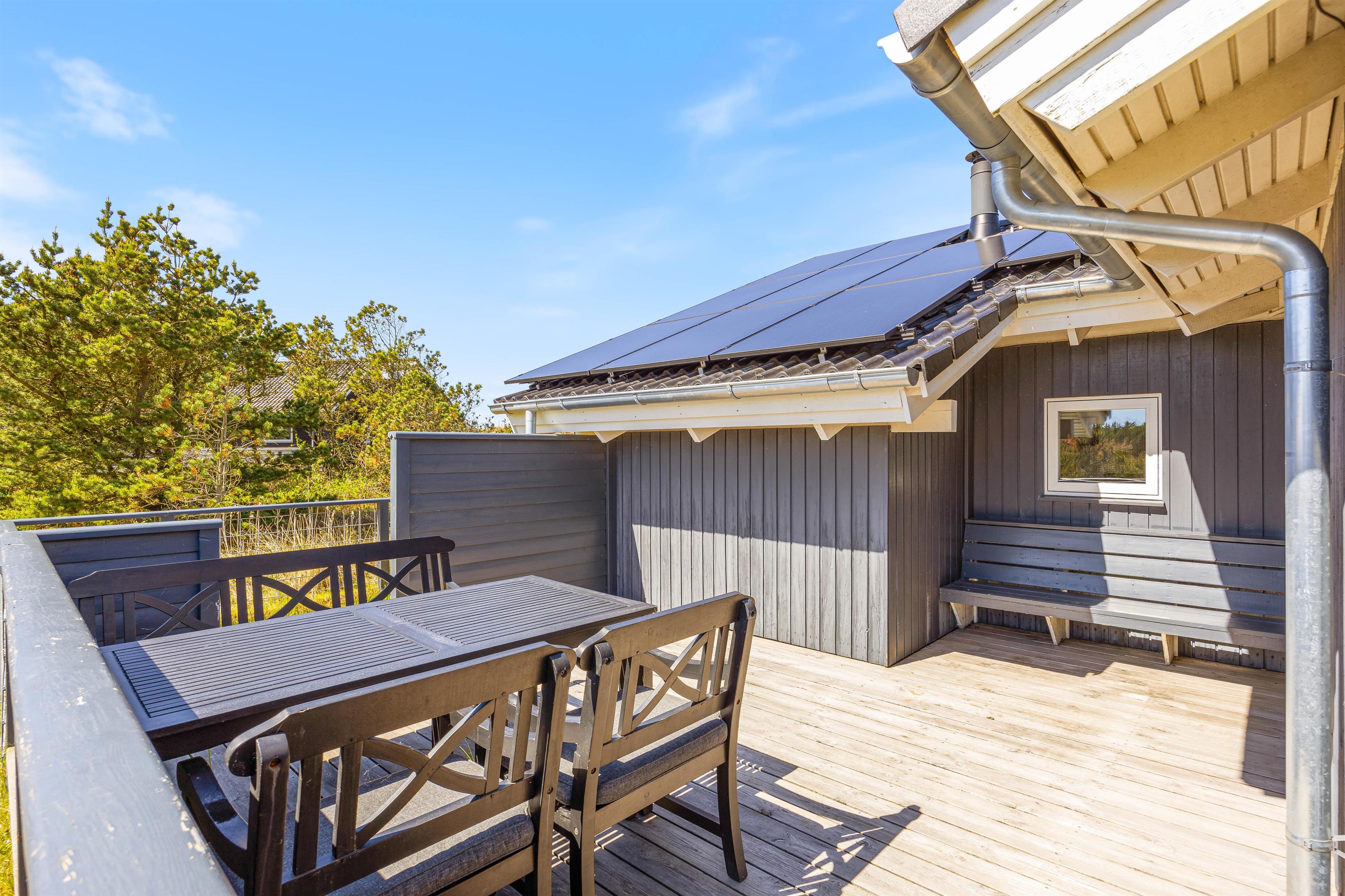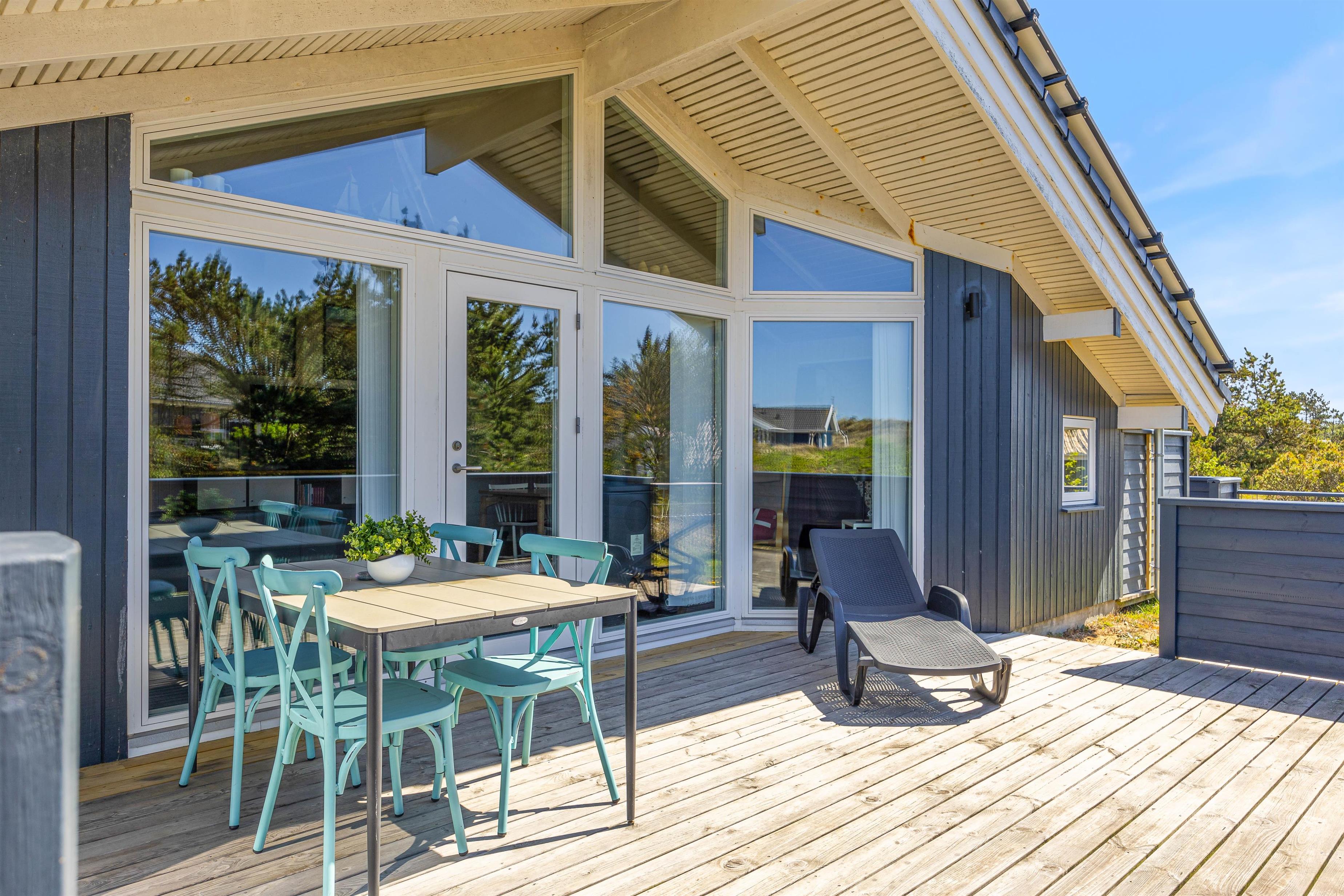 Dette dejlige sommerhus står oven i købet parat med adskillige gode terrasser, der både byder på afskærmning for en eventuel brise og en overdækning, som giver jer mulighed for at nyde de lyse sommeraftner helt indtil solen går ned over klitterne mod vest.