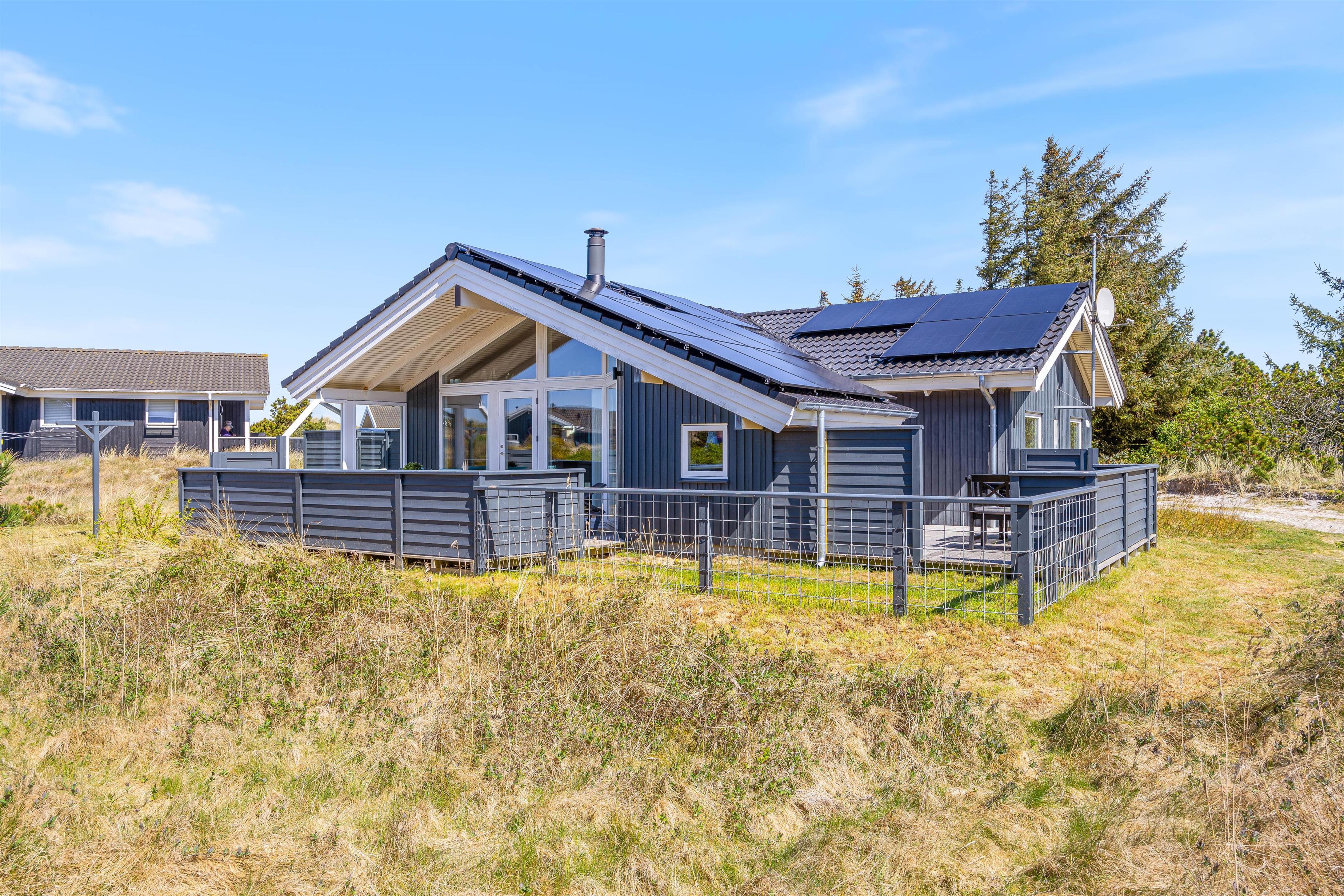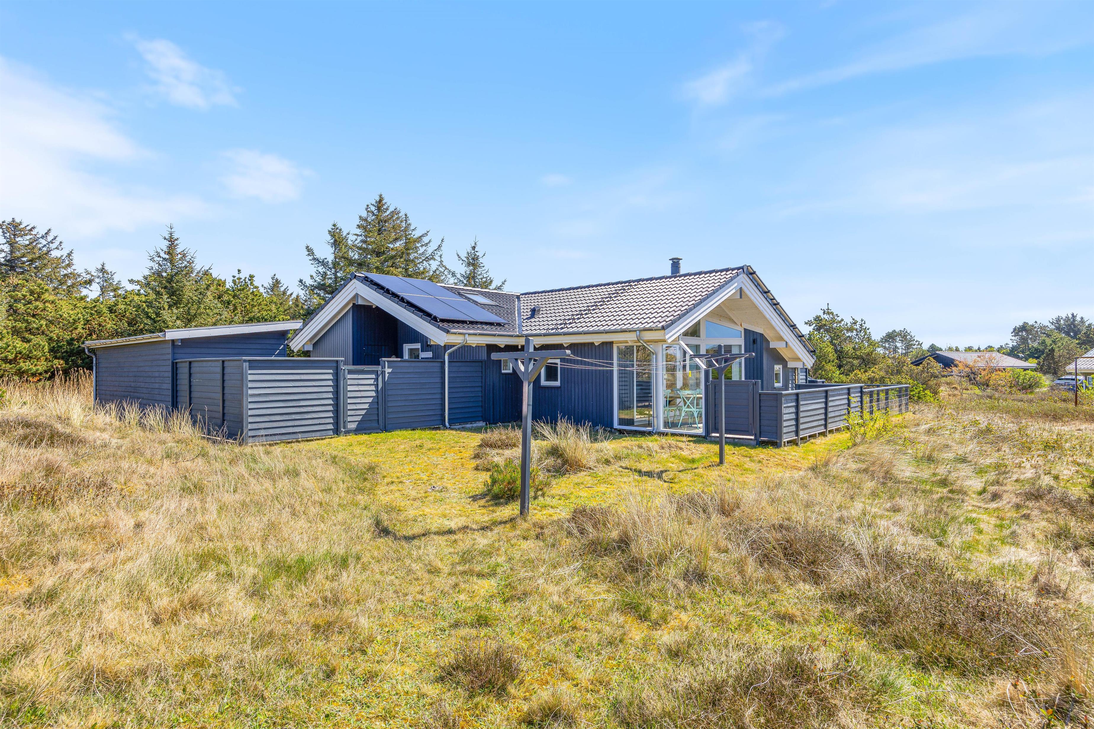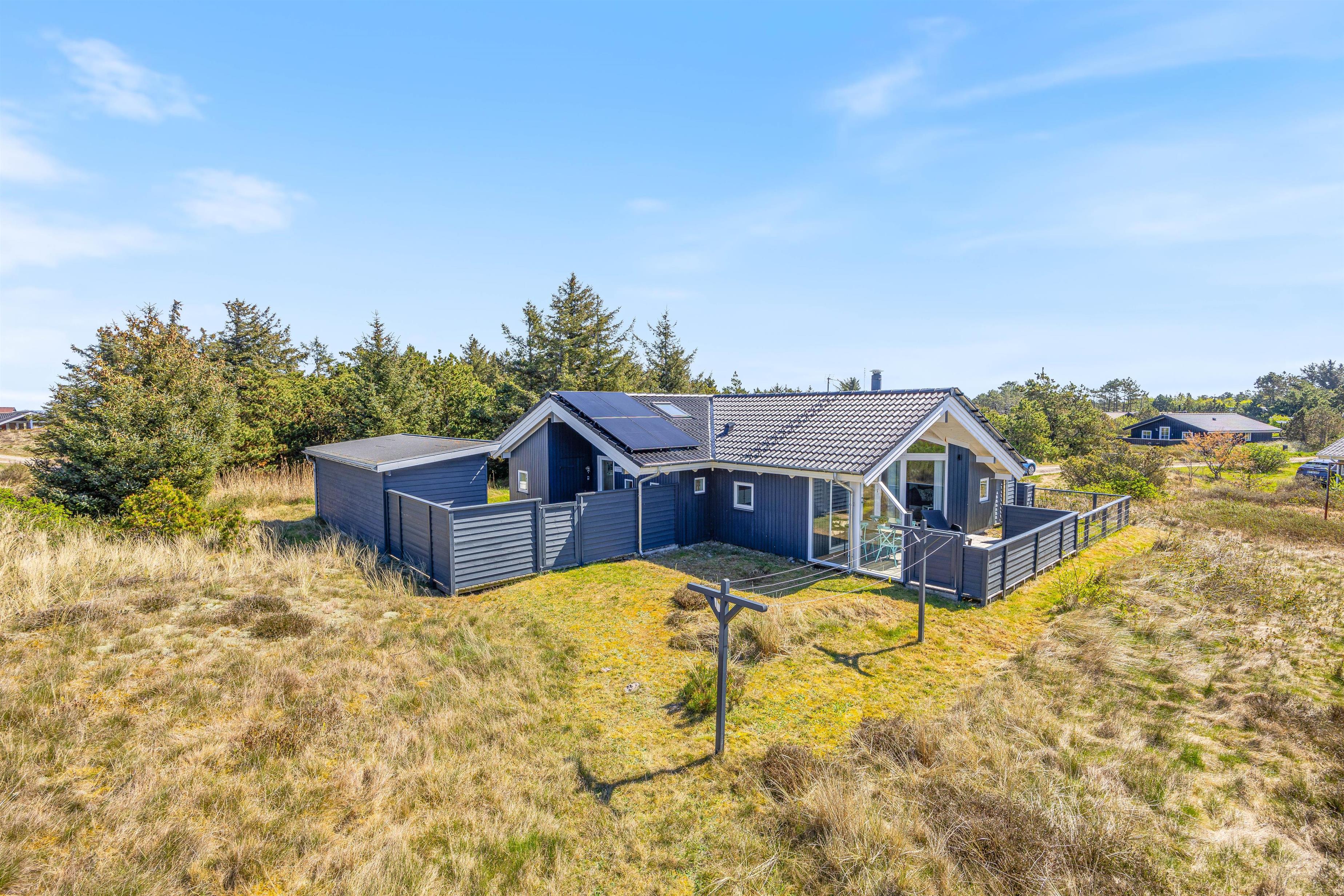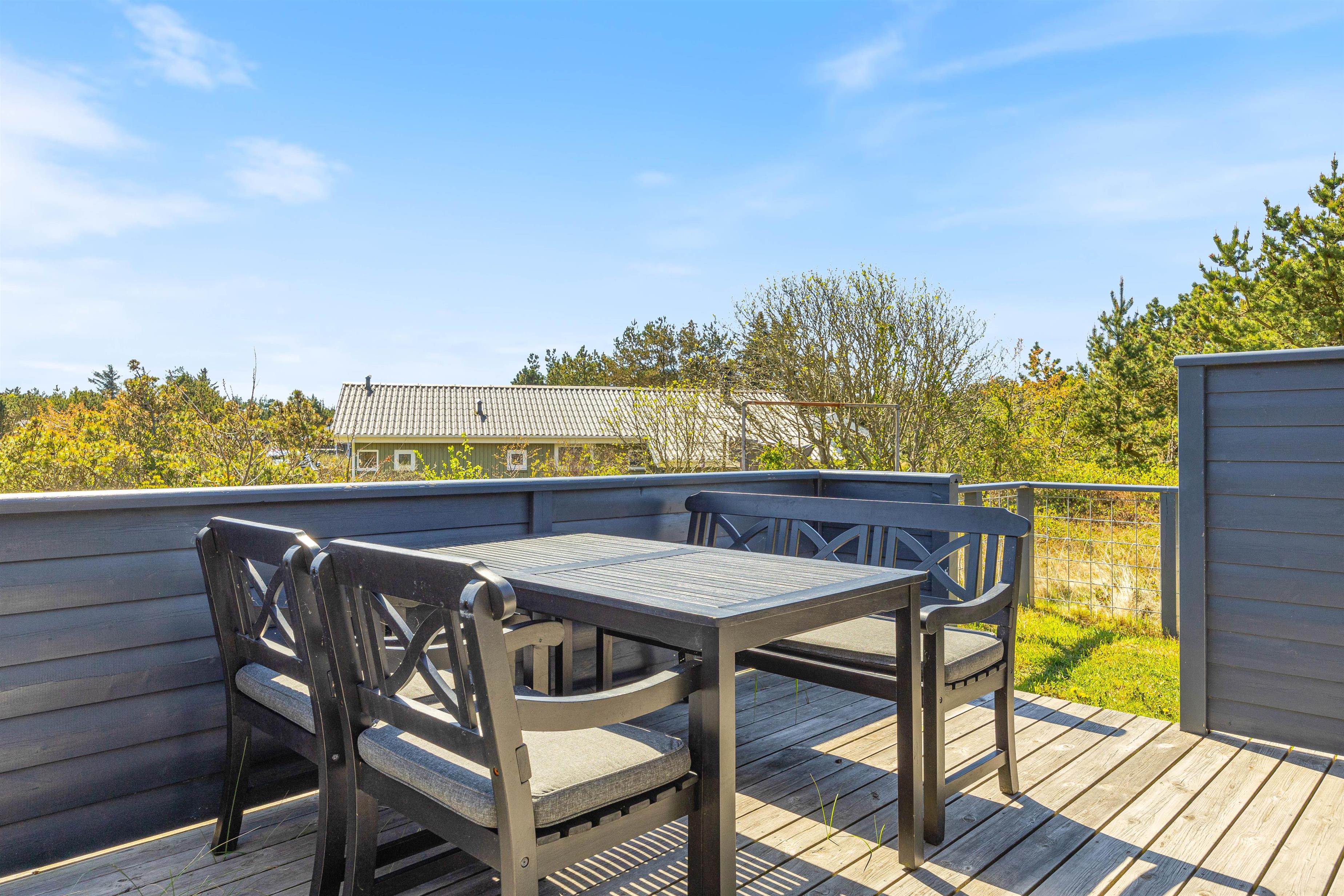 Dette dejlige sommerhus står oven i købet parat med adskillige gode terrasser, der både byder på afskærmning for en eventuel brise og en overdækning, som giver jer mulighed for at nyde de lyse sommeraftner helt indtil solen går ned over klitterne mod vest.