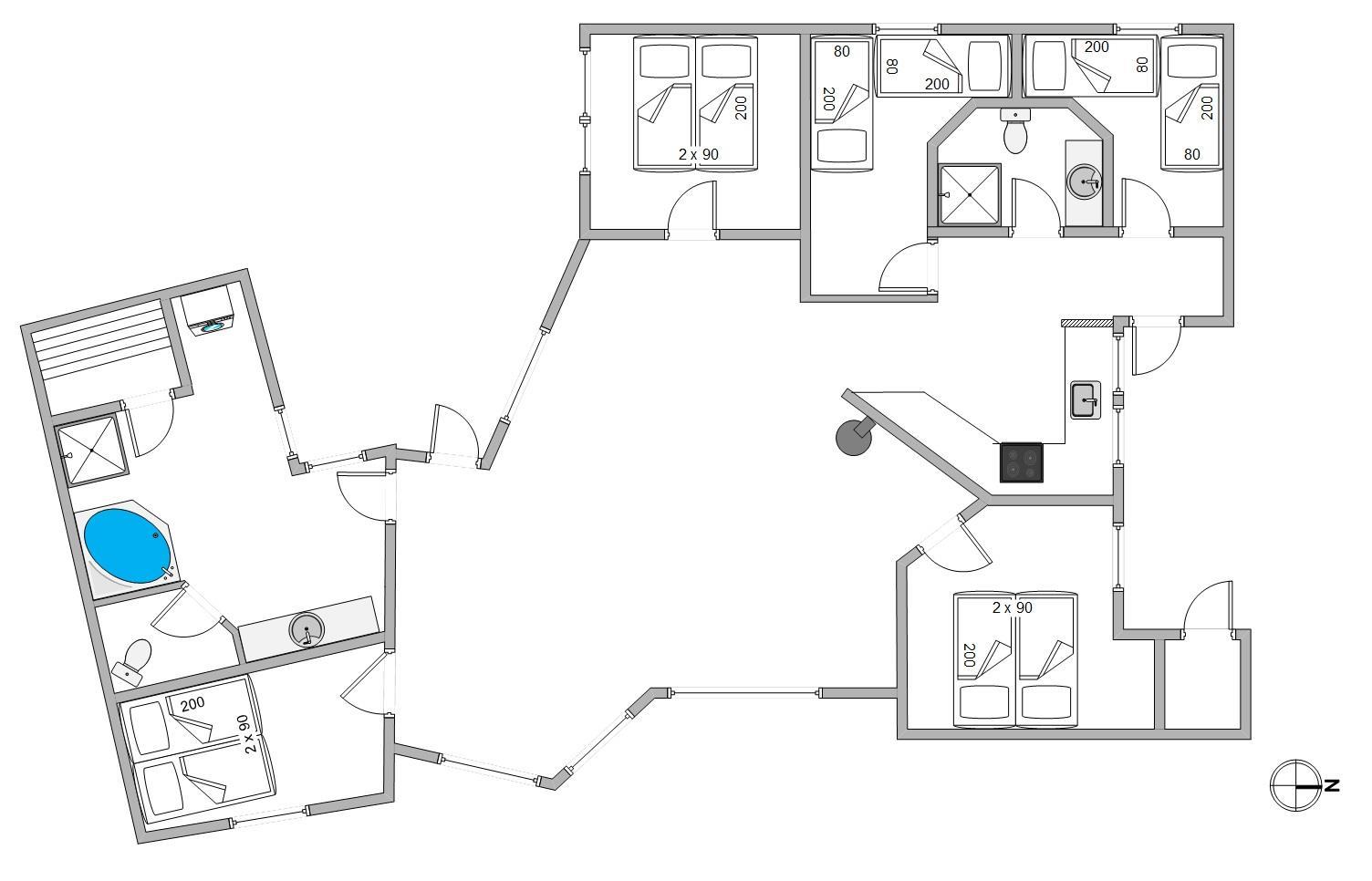 Dette dejlige feriehus er rummeligt og godt indrettet, så det sagtens kan beboes af op til 10 personer og 2 hunde. Derfor er det helt ideelt, hvis I er to familier, der gerne vil holde ferie sammen.