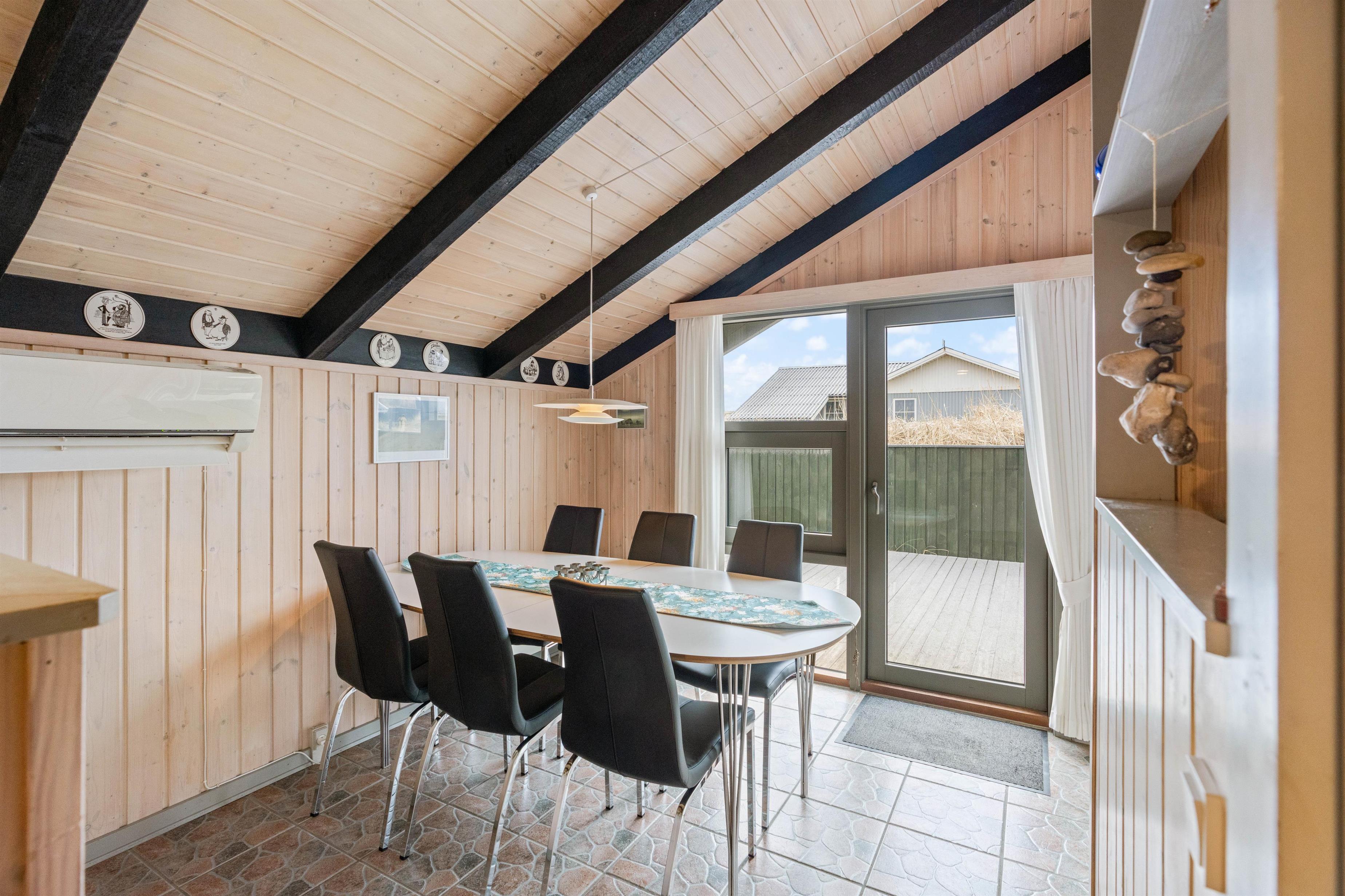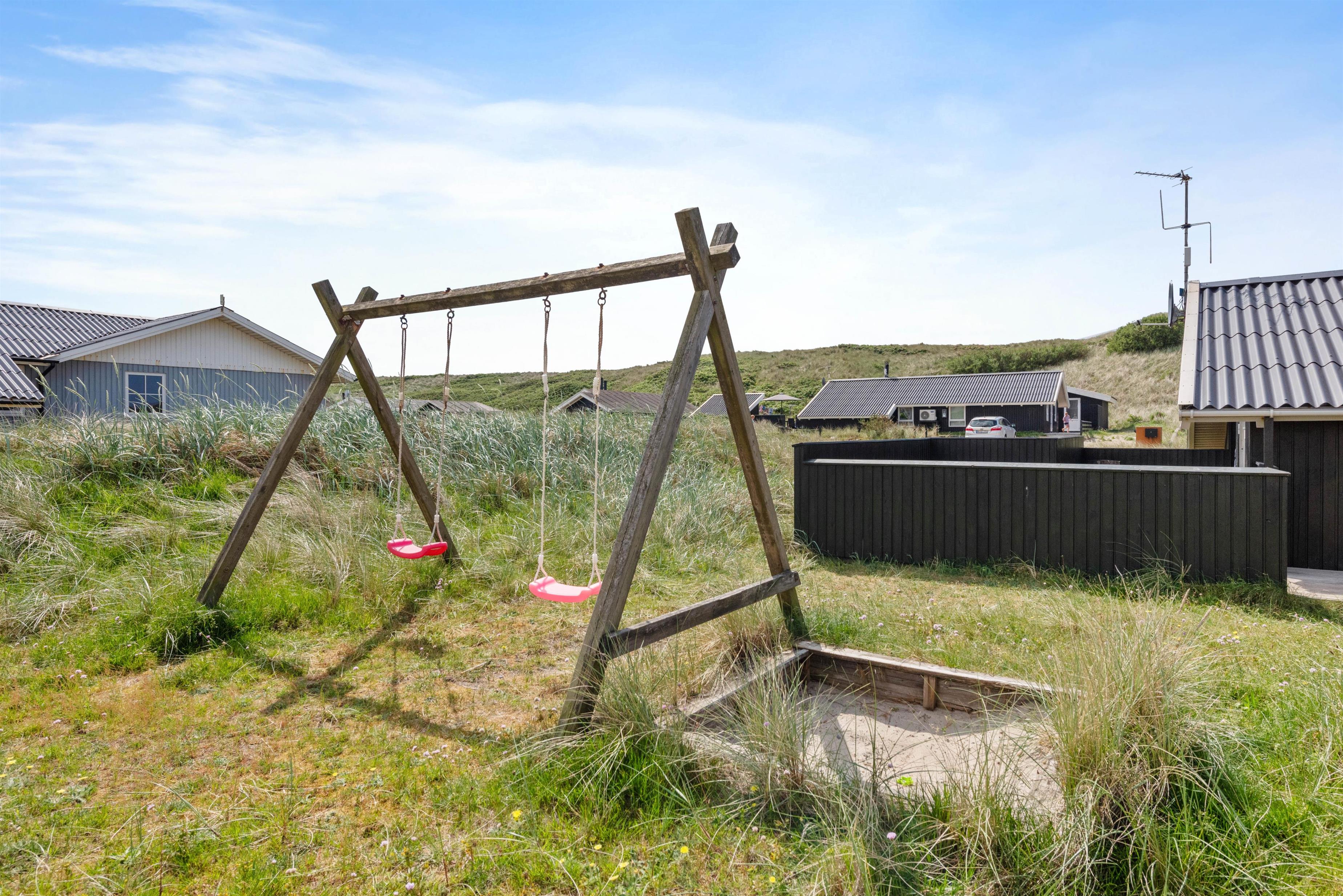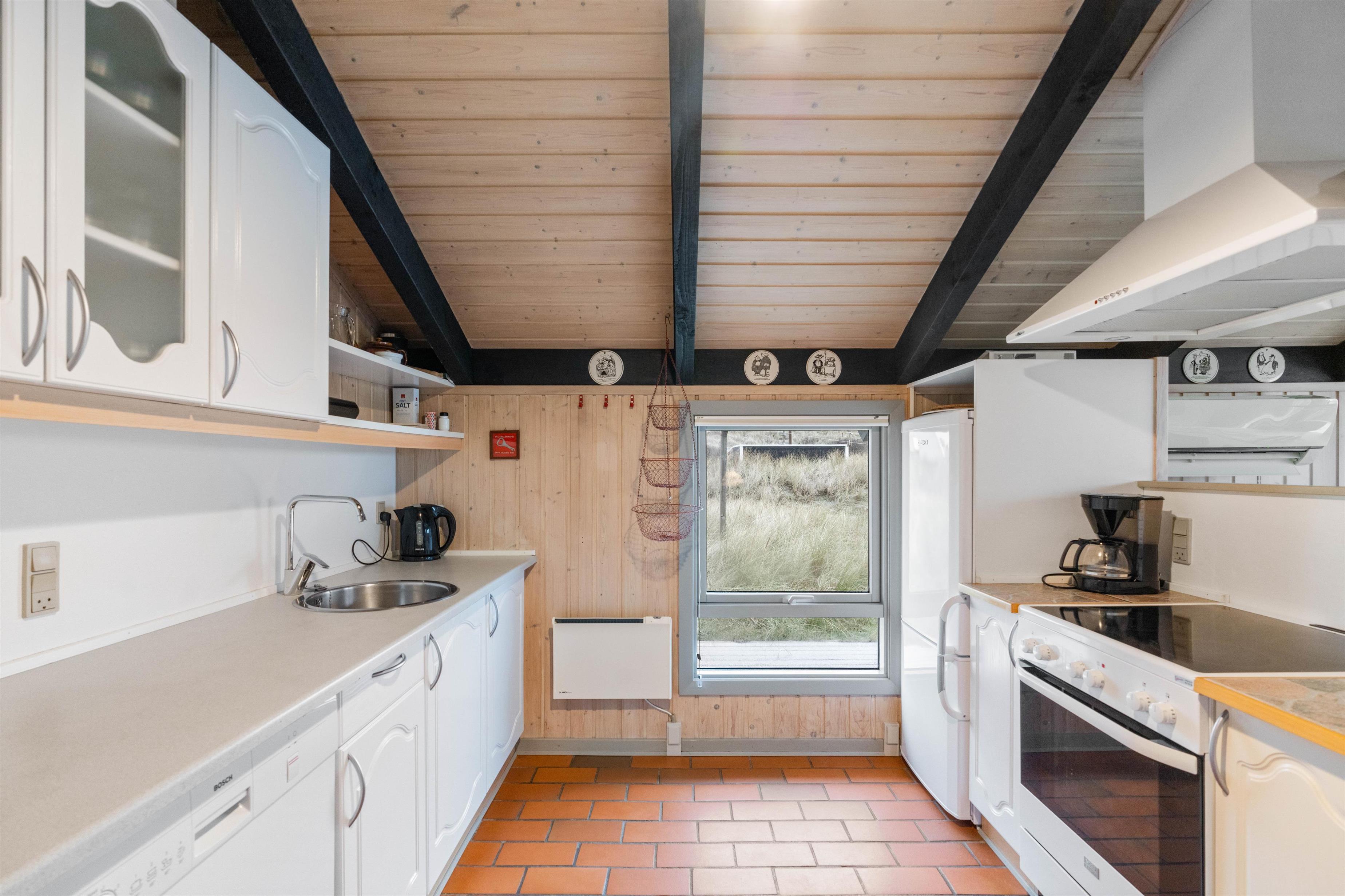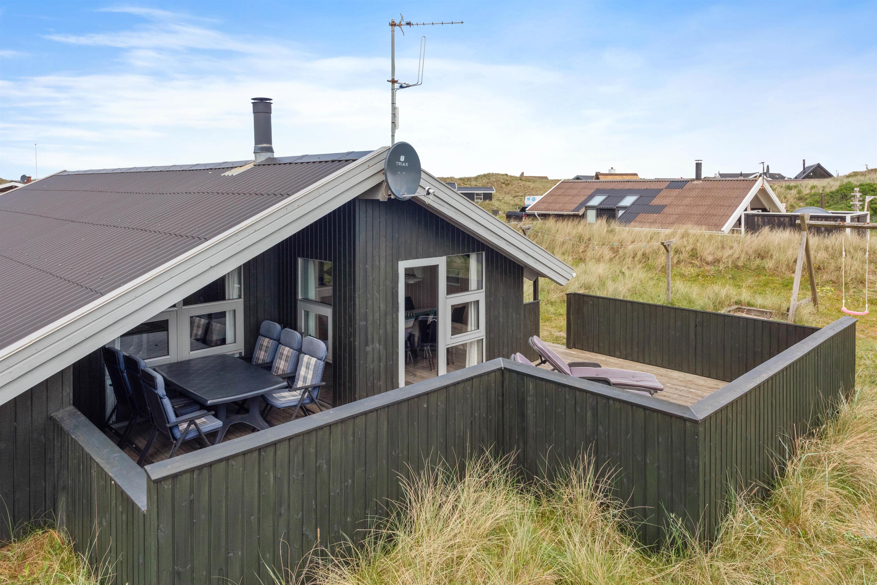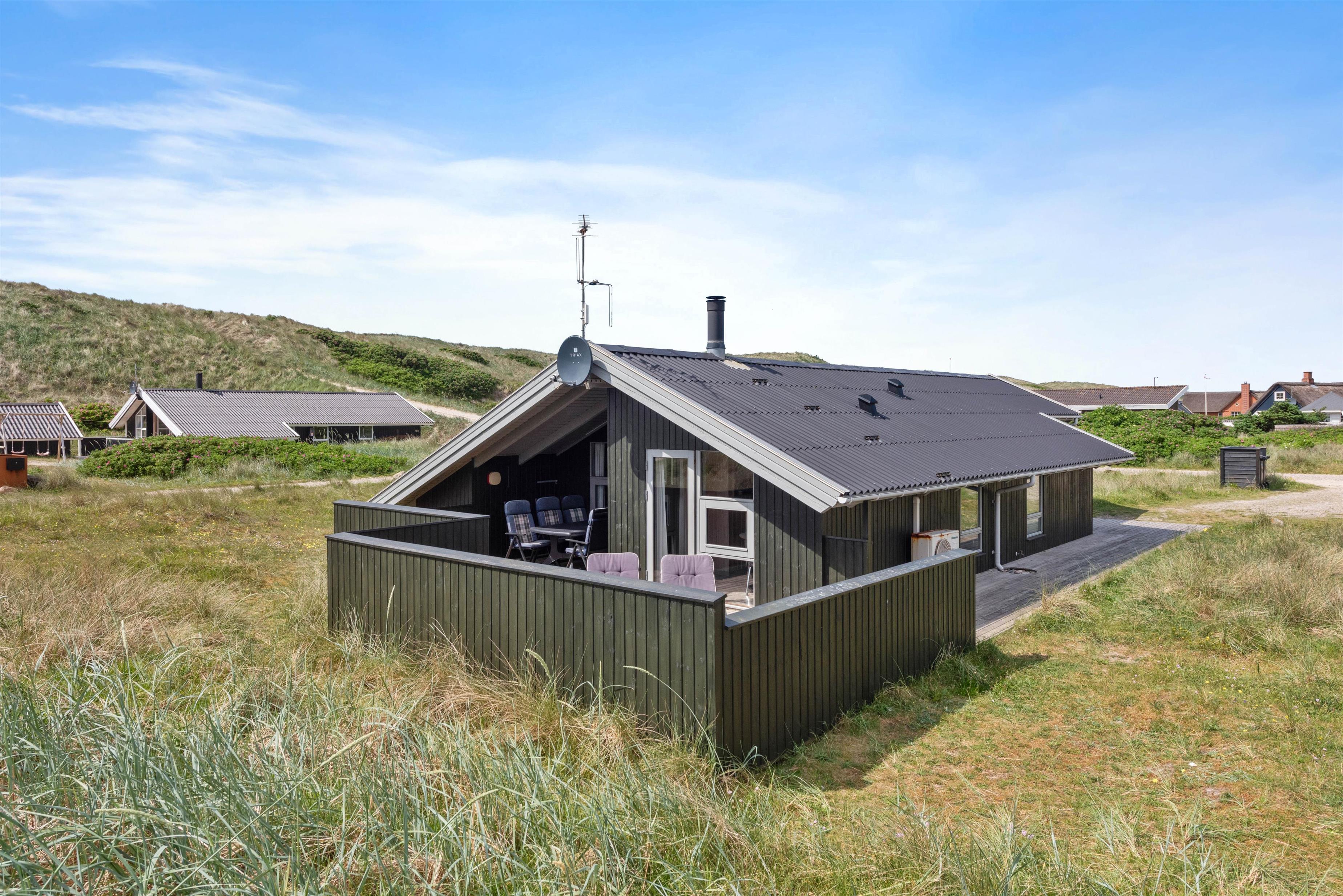 På den afskærmede og delvist overdækkede terrasse, kan I nyde den friske luft og lytte til bølgernes brusen. Nyd morgenkaffen og tænd til aften op i grillen – her kan I tilberede et lækkert måltid. Fra terrassen kan I nyde udsigten udover det smukke klitlandskab, hvor stierne fører ned til Vesterhavet. Tag hundene med, flyv med drage og bliv kølet ned med fødderne i vandkanten.