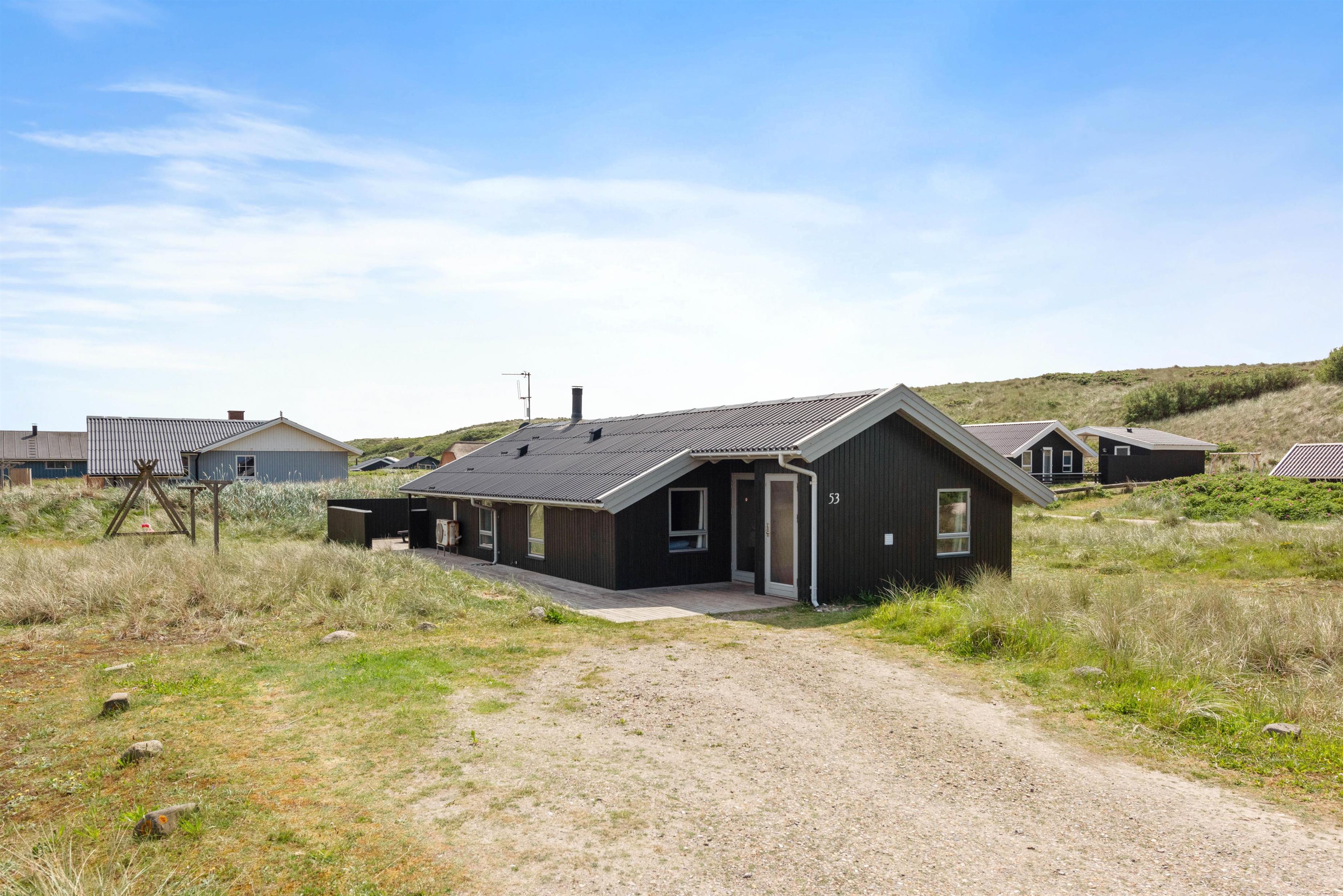 Når man nærmer sig den sidste klitrække, kan man høre Vesterhavets bølger og mærke den salte luft på huden. Det er noget helt særligt, som I kan opleve netop her. Det 2+ stjernede feriehus på Julianevej i Bjerregård har en førsteklasses beliggenhed få minutter fra stranden og nær den lokale købmand.