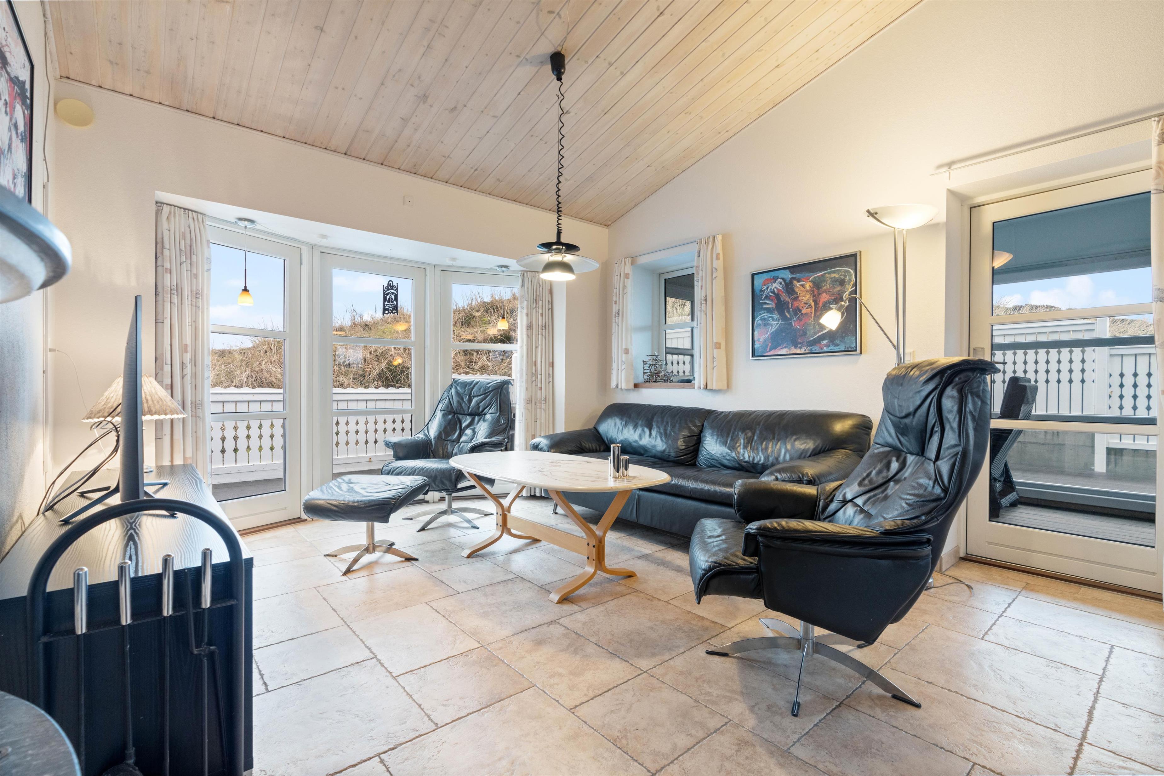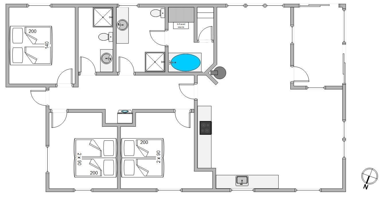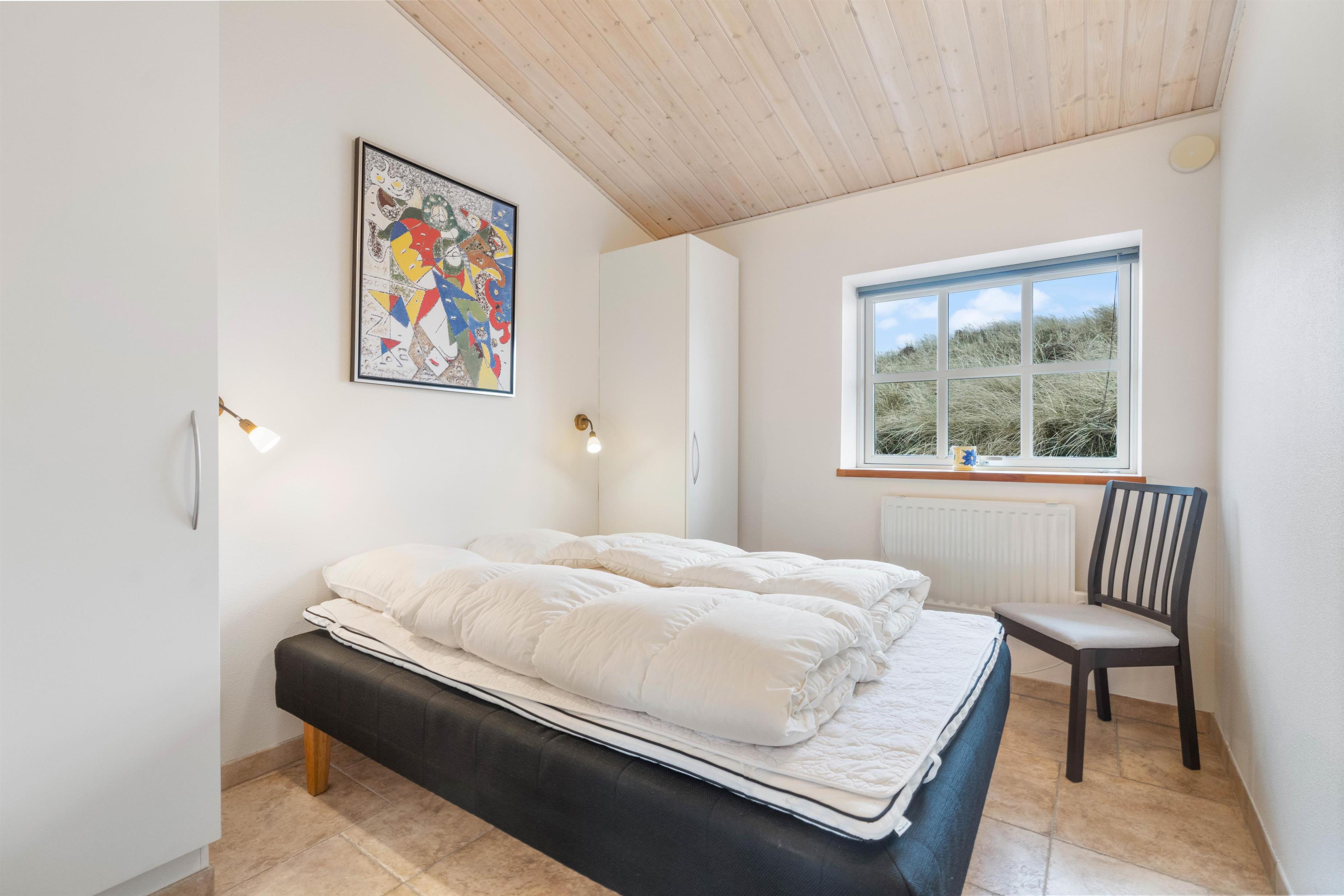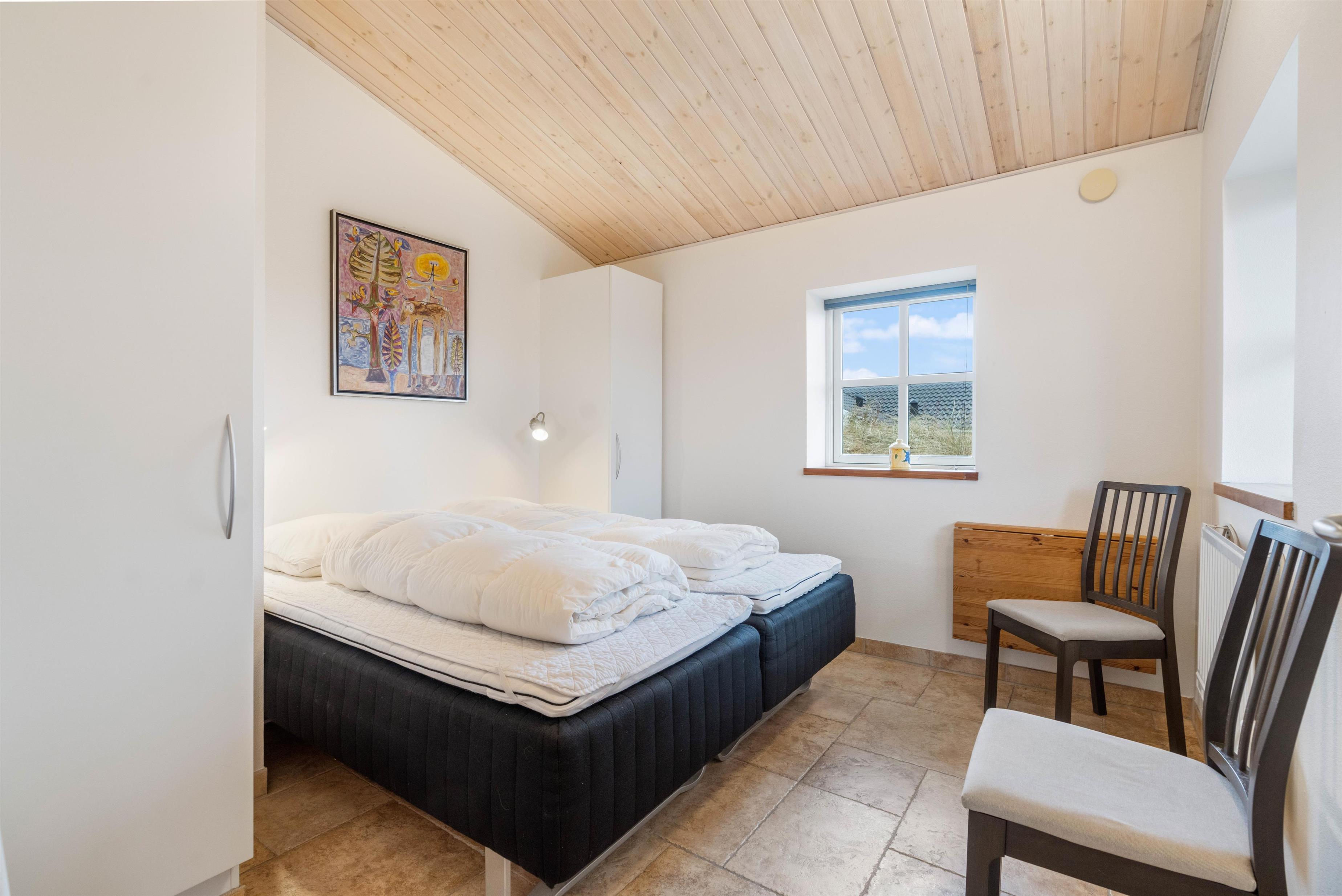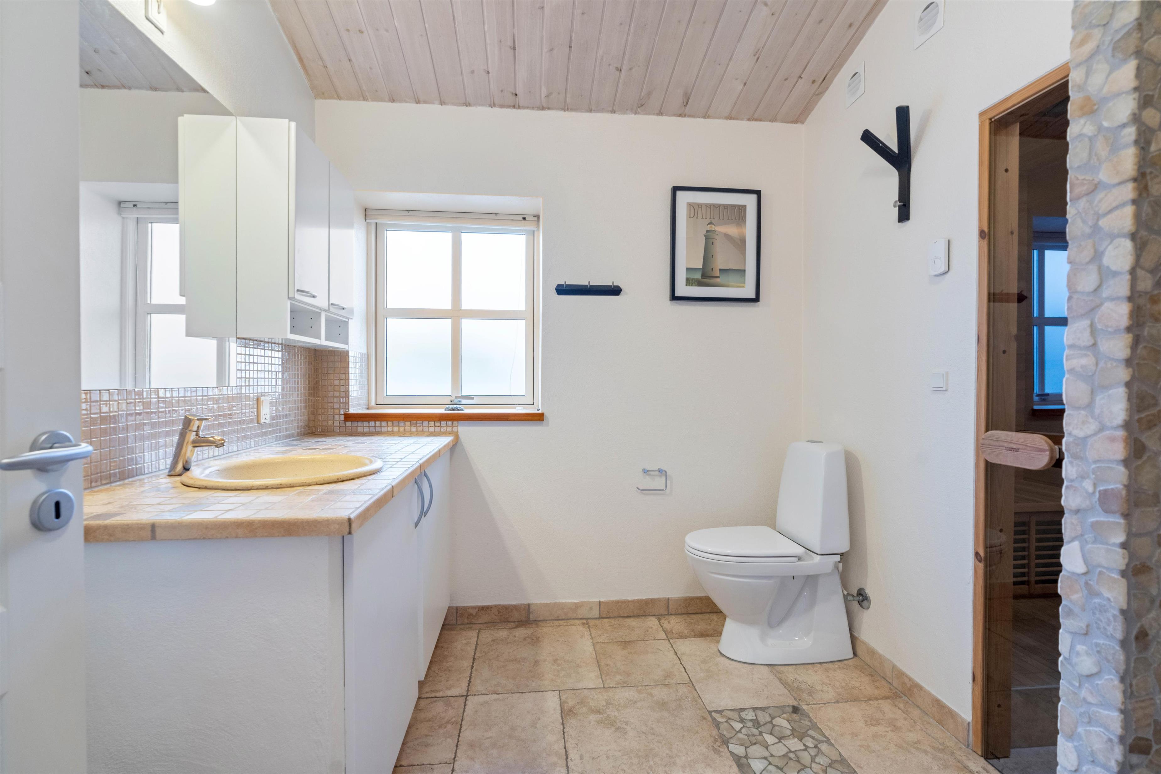 Feriehuset har 2 badeværelser med gulvvarme. I forbindelse med det store badeværelse er badekar, sauna og infrarød sauna, så her kan I arrangere jeres egen lille wellnessaften, og få musklerne varmet godt igennem. De 3 soveværelser indeholder hver en komfortabel dobbeltseng, hvor I kan hvile ud efter dagens strabadser. Læg mærke til, at vesterhavsluften gør noget godt for nattesøvnen.