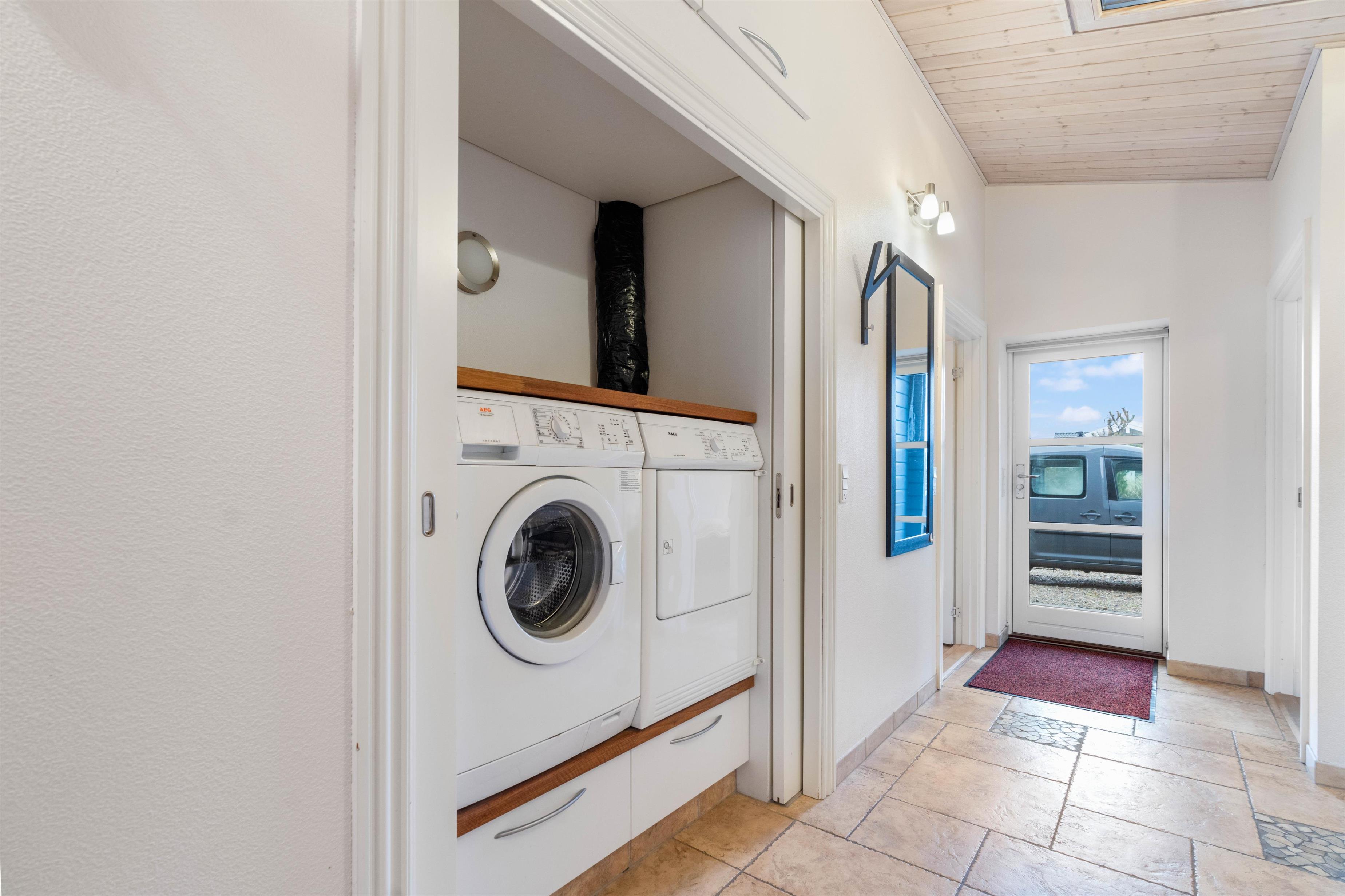 Der er vaskemaskine og tørretumbler til rådighed for jer, så I kan opfriske garderoben eller håndklæderne i løbet af ferien. Der er en energibesparende varmepumpe, som hurtigt og effektivt sørger for et behageligt indeklima og en god temperatur. Når solen skinner, bidrager husets solfangere til at holde forbrugsomkostningerne nede, da solen opvarmer det varme vand, som I bruger.