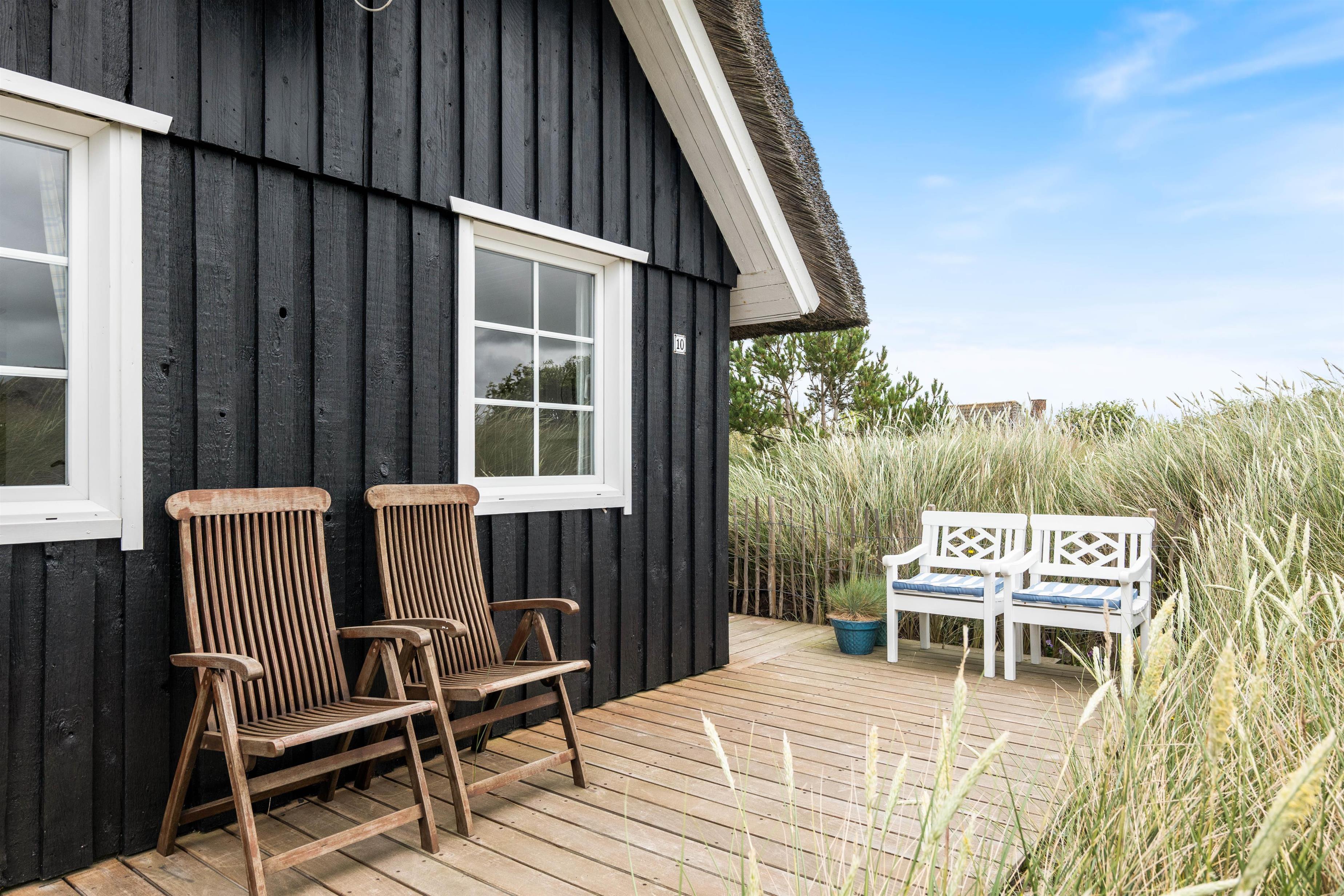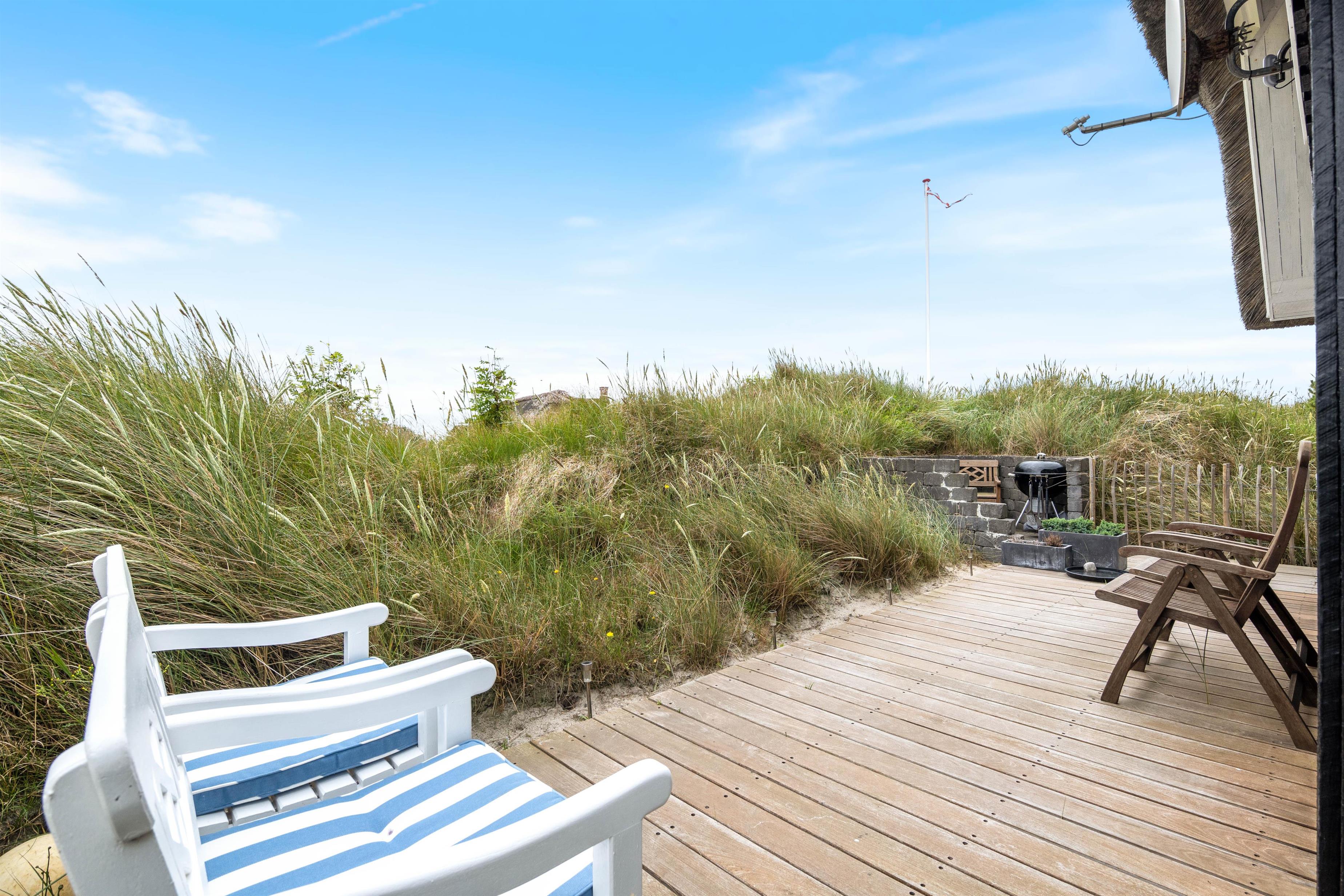 Terrassen breder sig rundt om sommerhuset og byder på læfulde eller solrige pletter, alt efter hvad og hvornår du ønsker det. Nyd havluften med varm kop kaffe og slap af i de komfortable havemøbler. Selv i regnvejr kan du sidde udenfor, da terrassen er delvist overdækket.