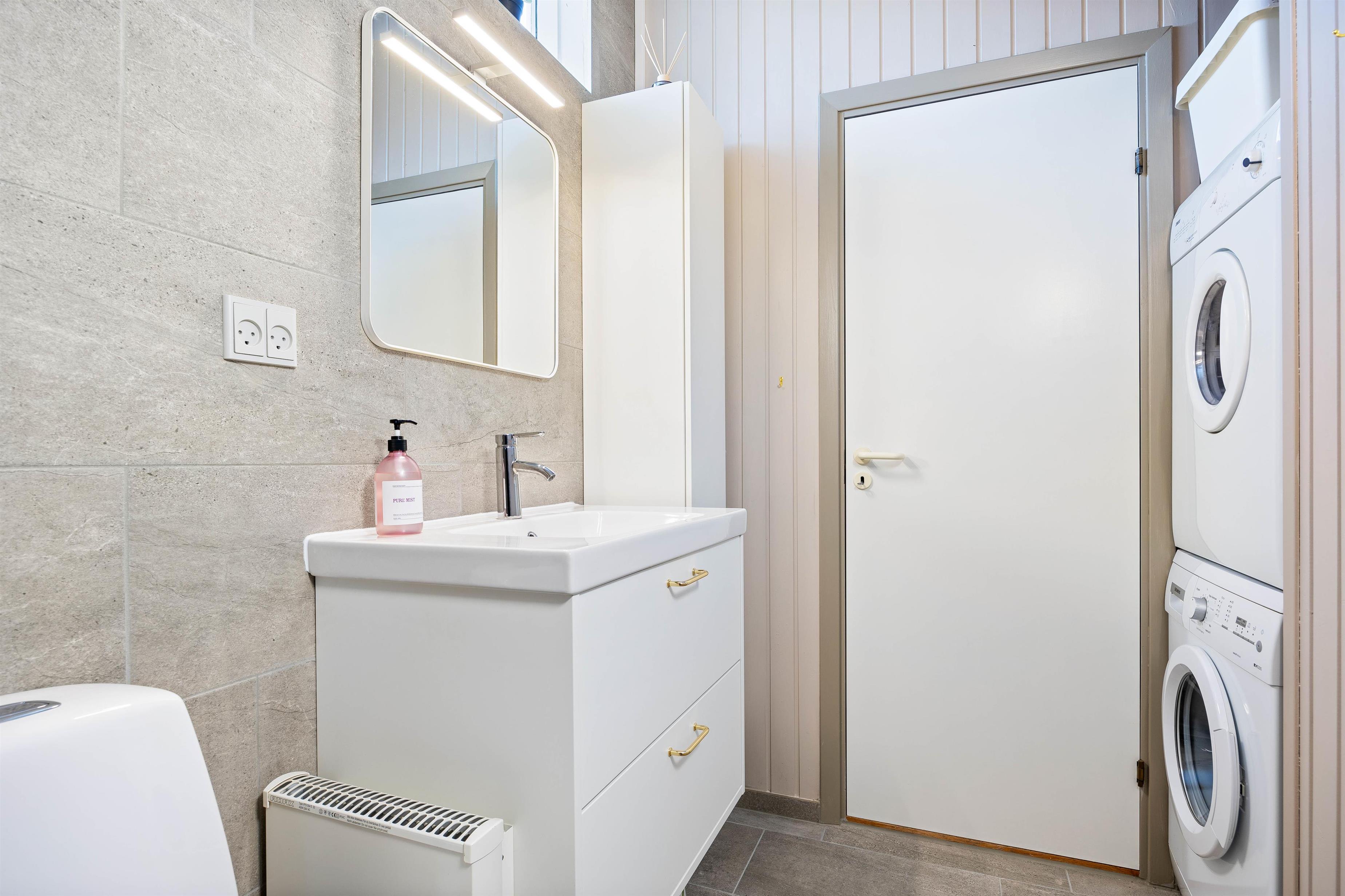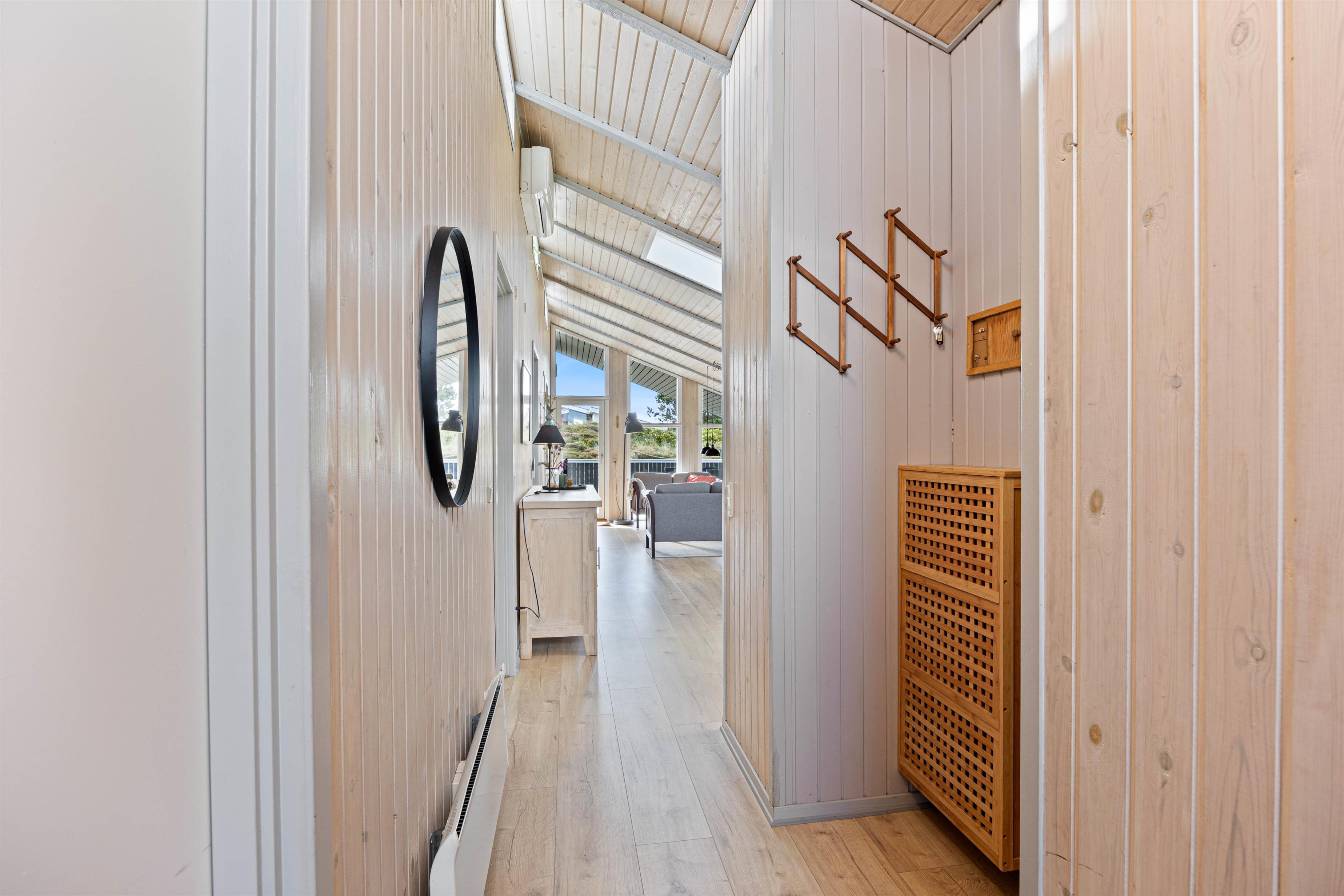 Den harmoniske indretning er spækket med masser af søde detaljer, og dertil kommer også, at feriehuset er rigtig godt udstyret med alt, hvad I har brug for i ferien - både vaske- og opvaskemaskine, tørretumbler, CD- og DVD-afspiller, brændeovn og ikke mindst en energibesparende varmepumpe. Fra stuen har I udgang til den lukkede terrasse, hvor I kan nyde sommerdagen. På grunden er også et gyngestativ til familiens yngste.