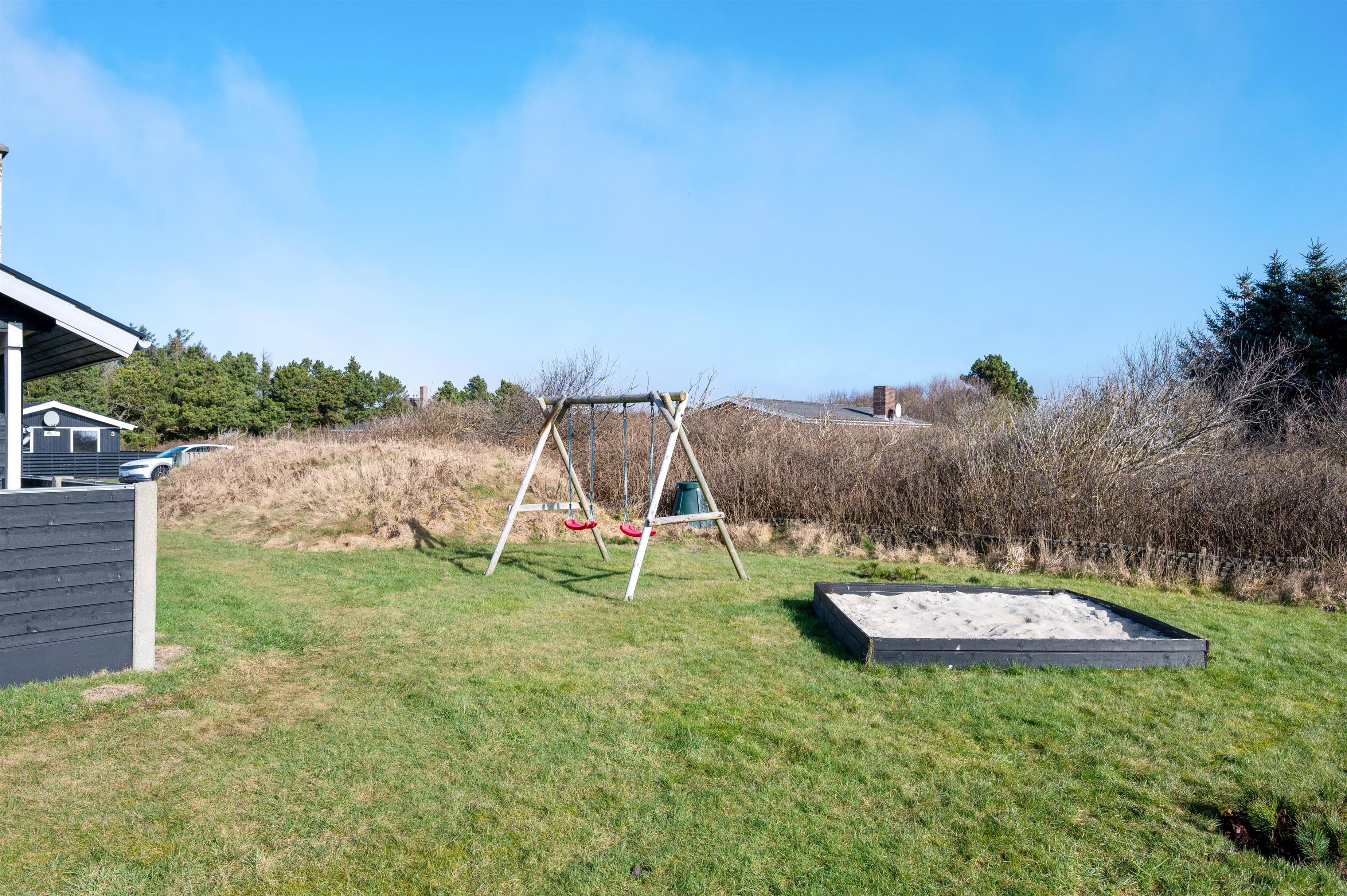 Sommerhuset ligger på en plænegrund med god plads til sjov og leg for hele familien. Til de yngste er der sandkasse og gyngestativ, så de kan få tiden til at gå, mens I tilbereder et lækkert måltid på grillen.