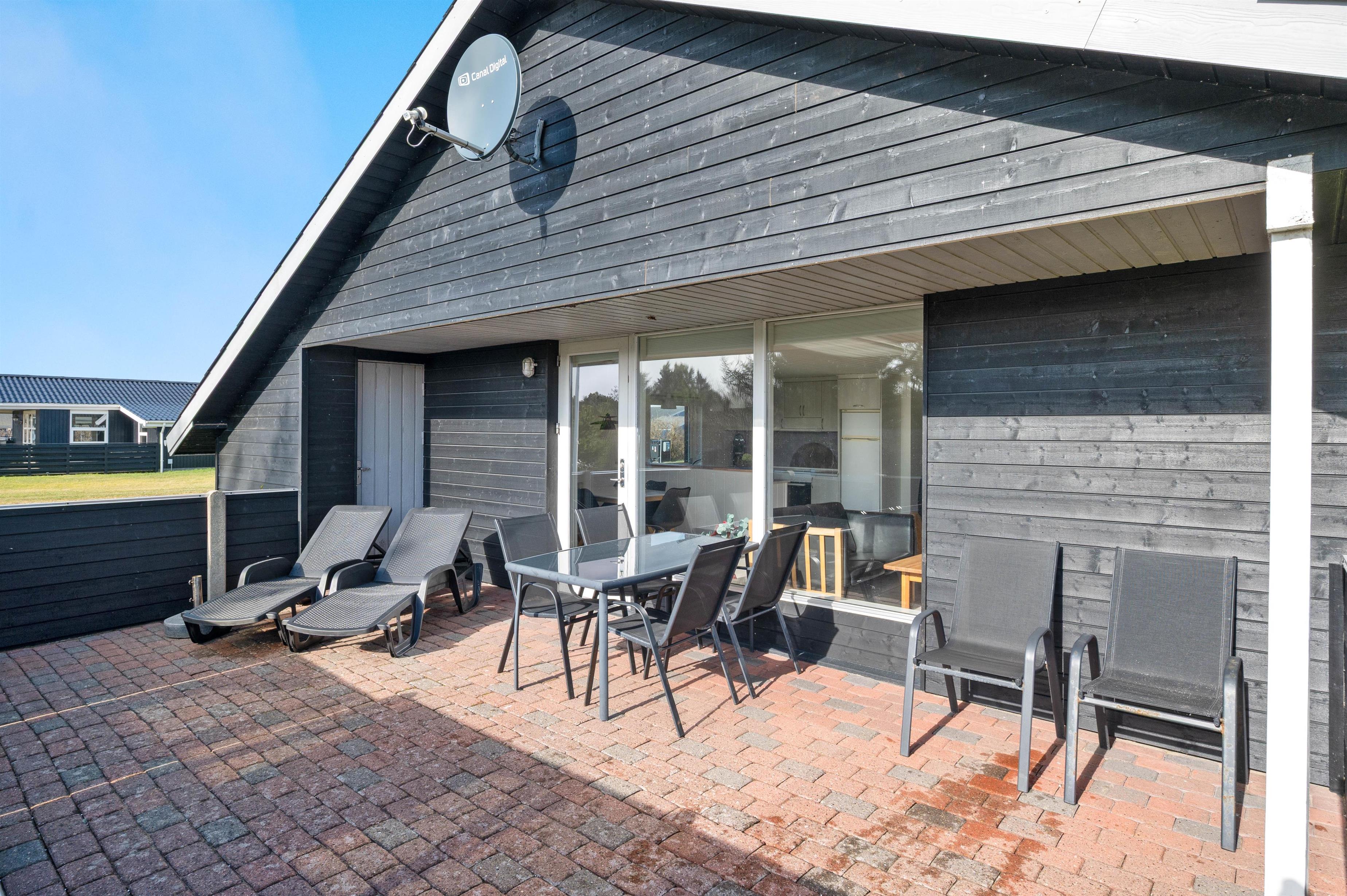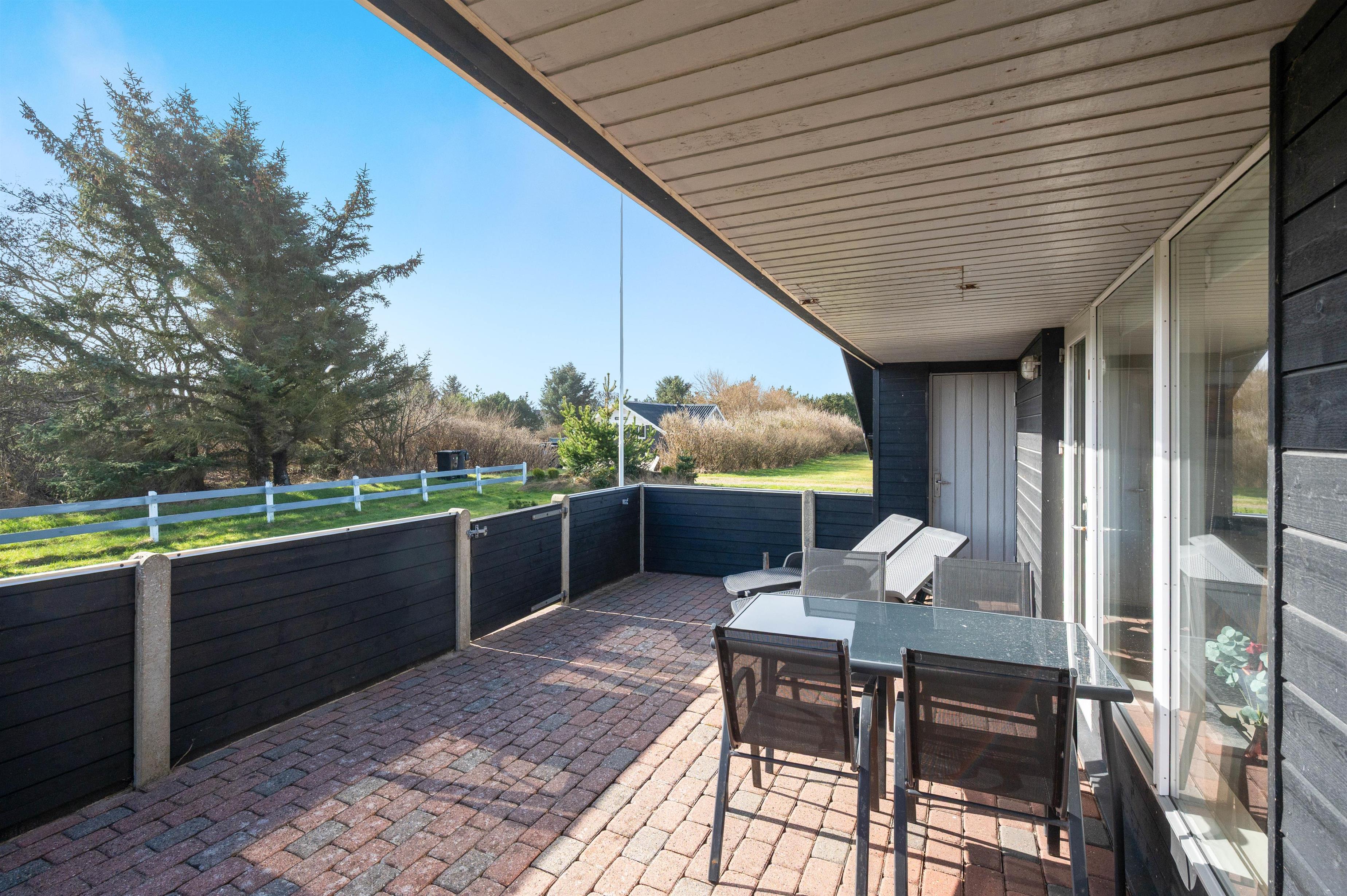Til sommerhuset hører en god, delvist overdækket terrasse. Her kan I nyde feriedagen med hele familien og hunden. Terrassen er lukket, så I skal ikke bekymre jer om, at hunden skulle løbe væk.