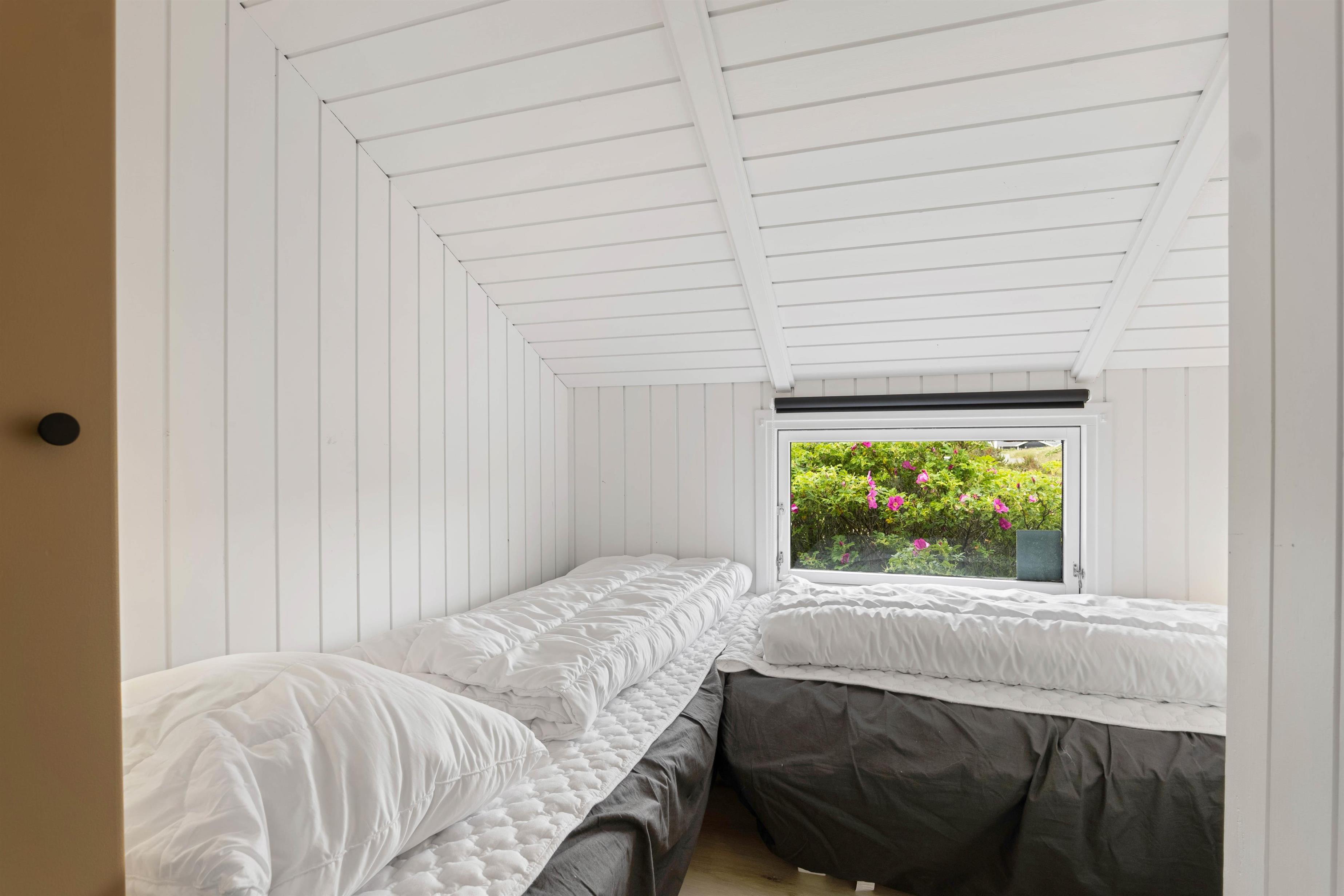 Huset er velegnet til 2 familier med de 5 soverum og 2 badeværelser. Det ene lidt større badeværelse har desuden hele 2 håndvaske, så her kan børstes tænder på samlebånd. Derudover findes der også vaskemaskine og tørretumbler, som gør det nemt at feriepakke – også til storfamilien. Bemærk venligst, at de 2 senge i de 2 enkeltværelser måler 70x190 cm og derfor er mere velegnede til vores mindre gæster.