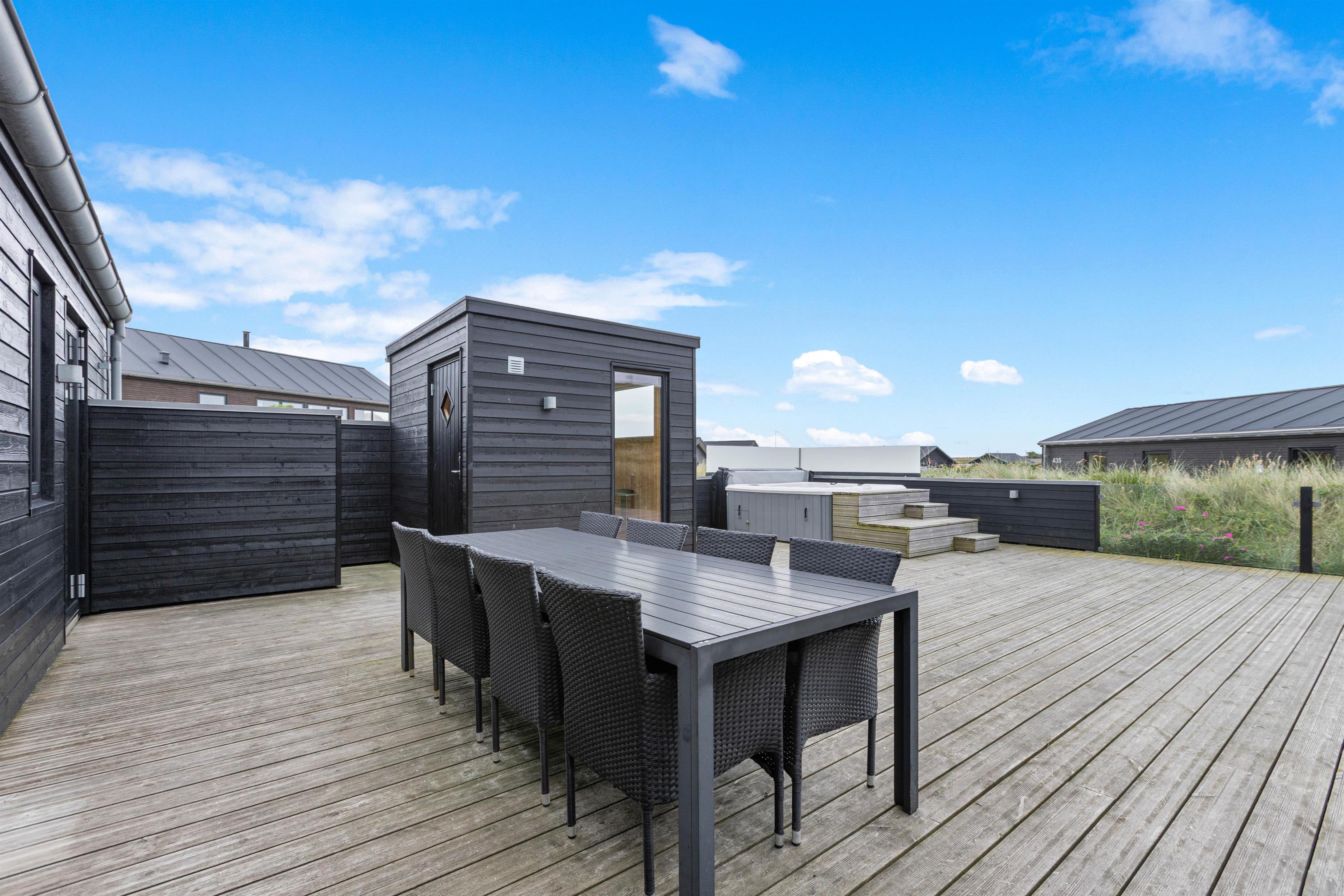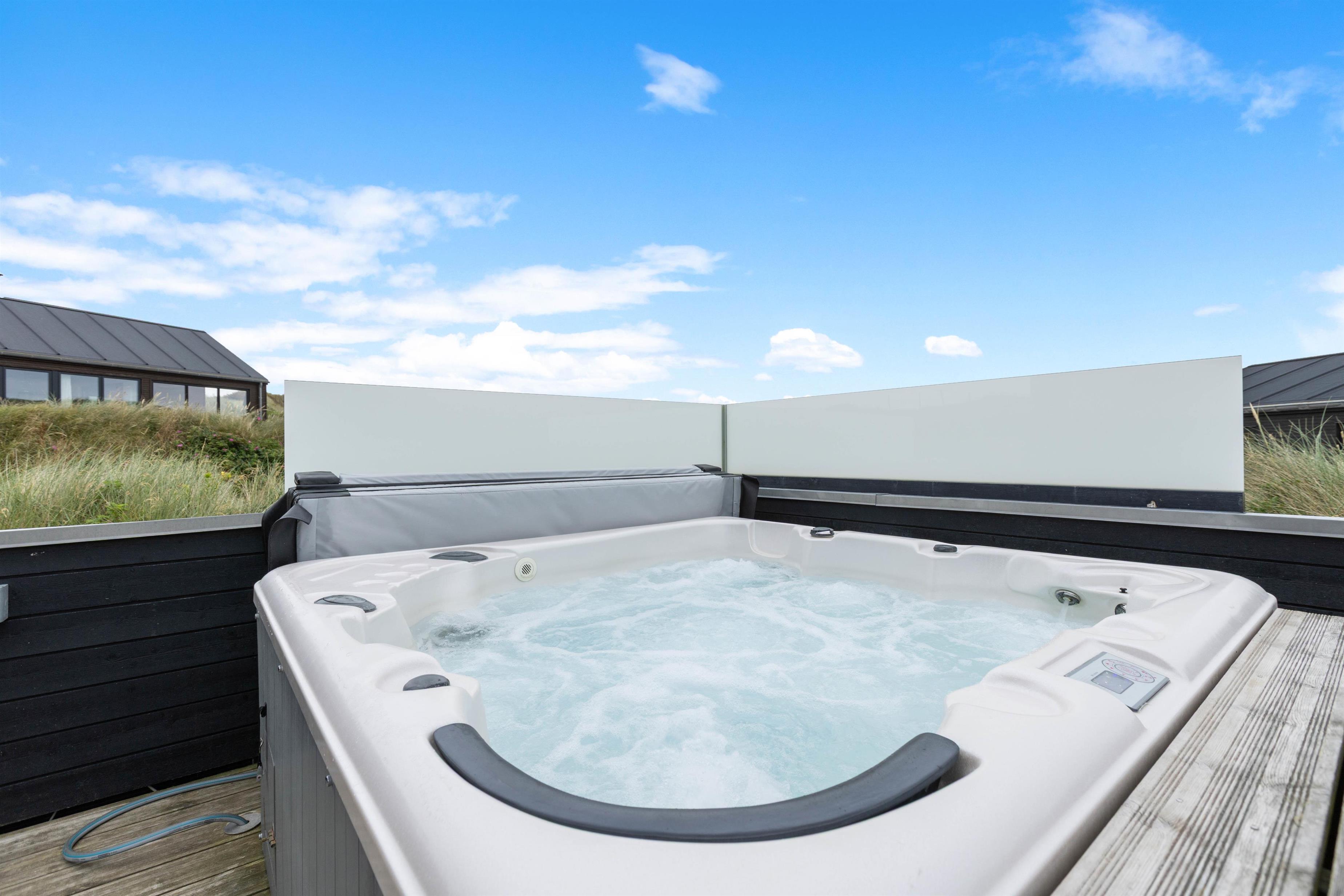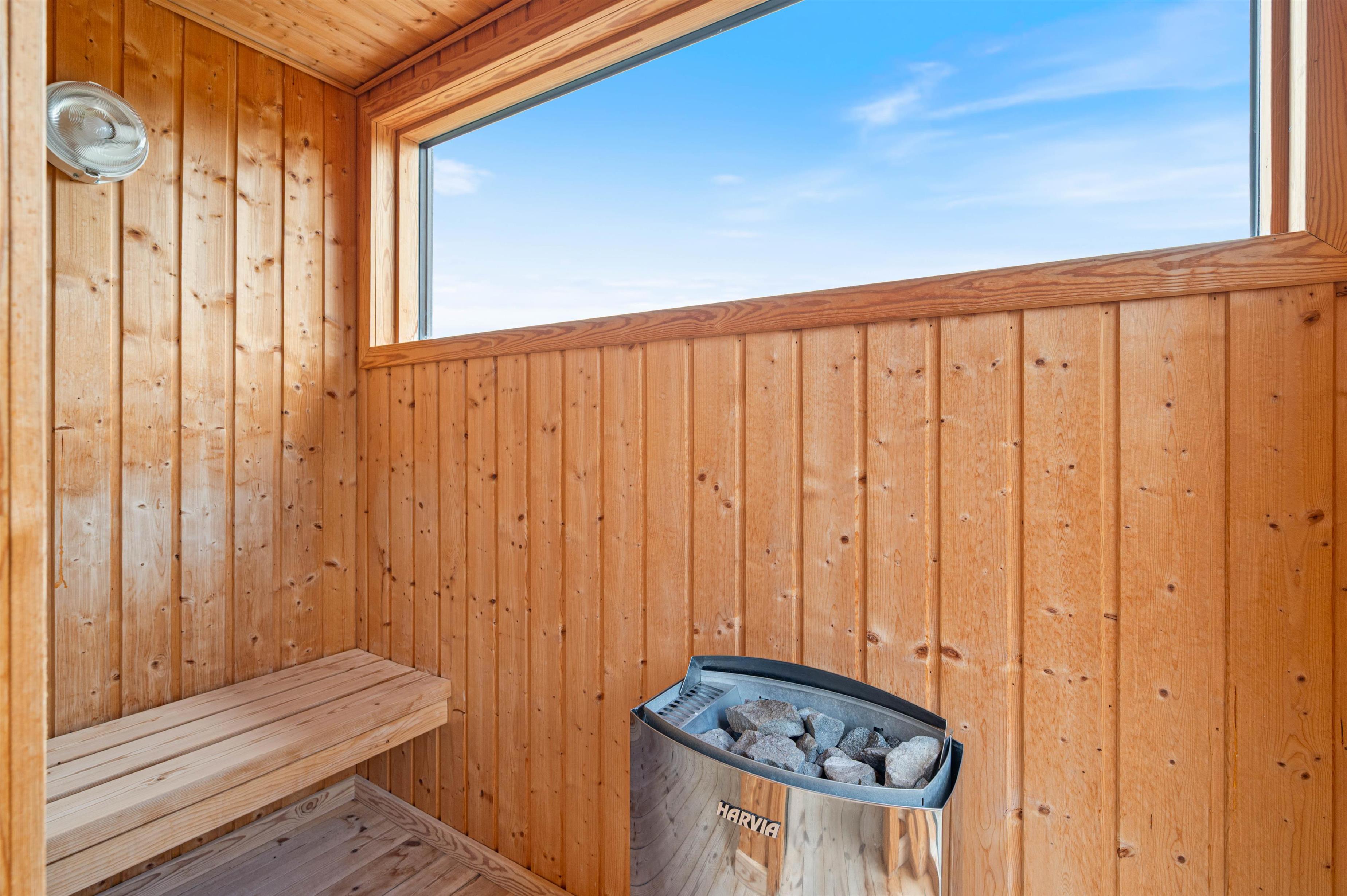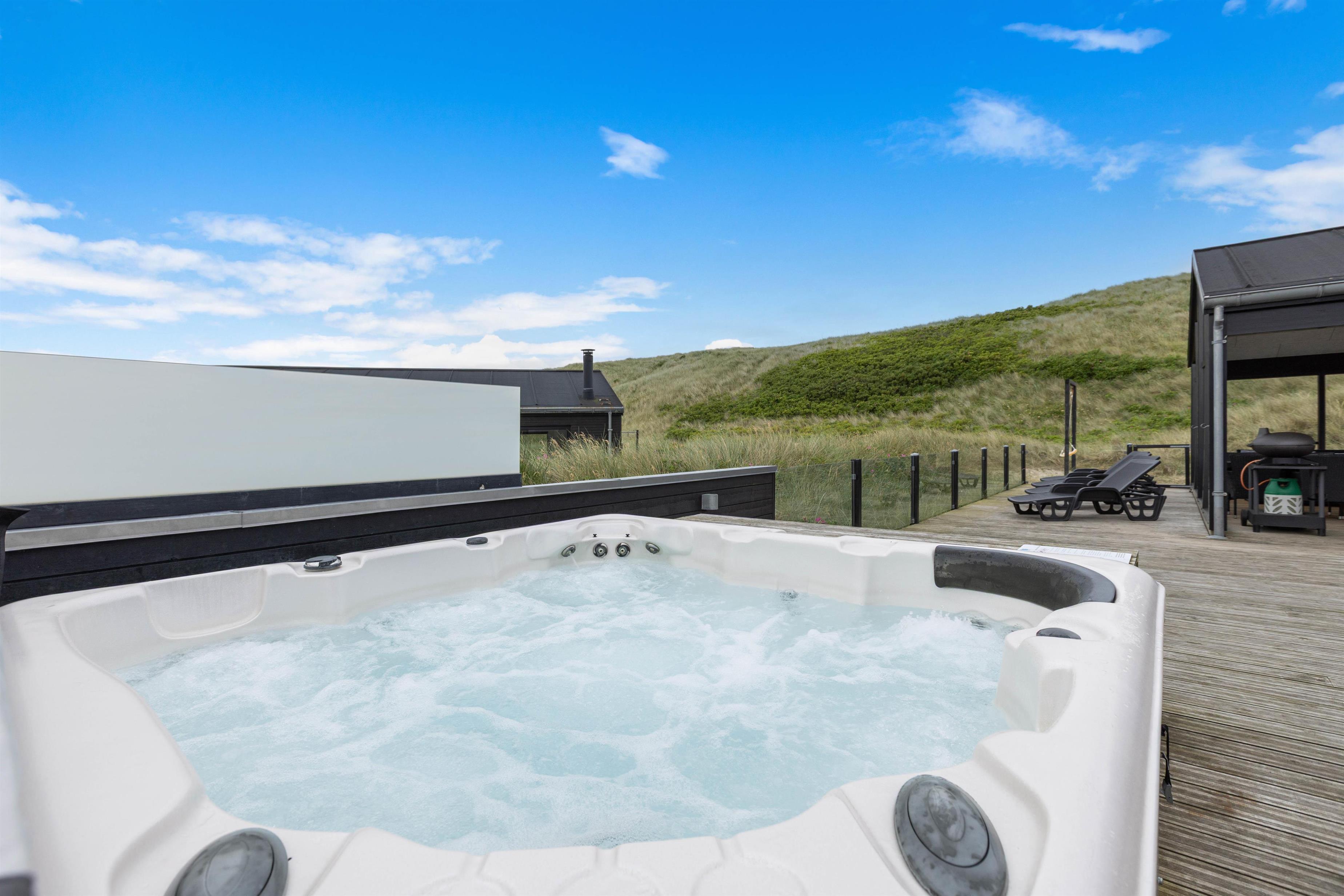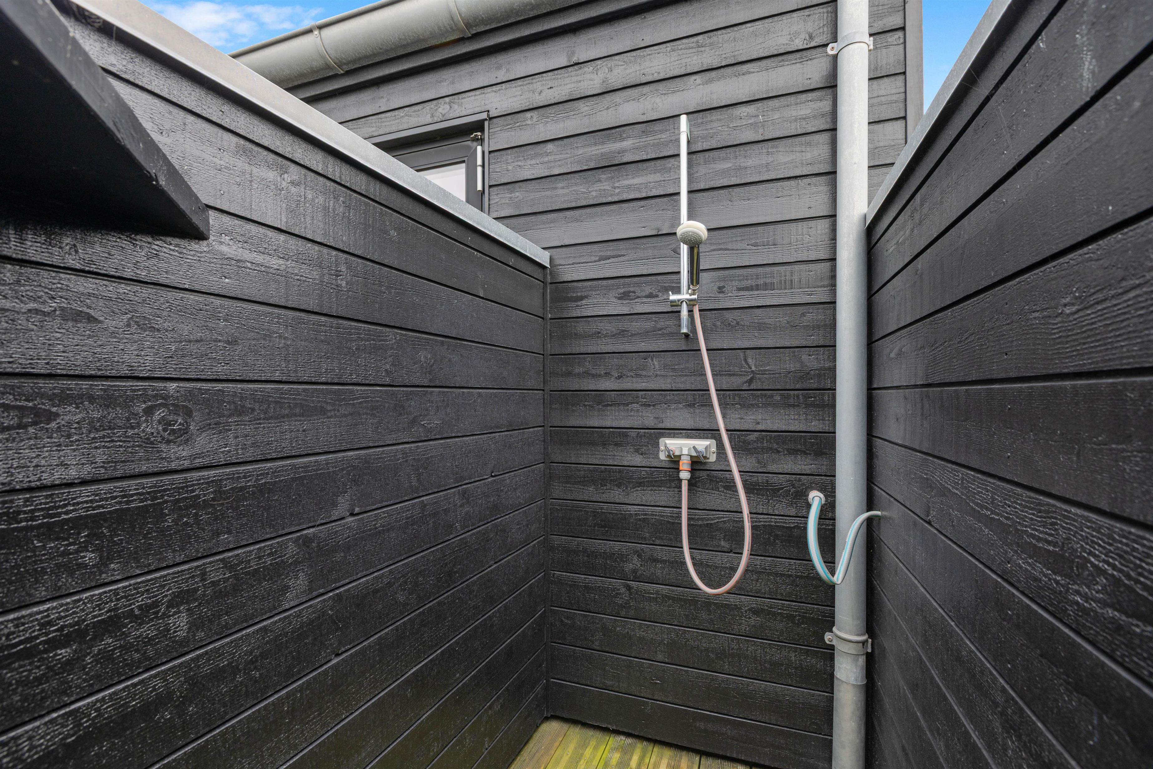 På terrassen finder I også husets sauna - og ikke mindst et lækkert udendørs spabad, som vil være til glæde for både børn og voksne. Lad børnene plaske rundt, mens I soler jer, eller nyd de varme bobler på en sen sommeraften under en klar stjernehimmel. Udebruseren kan benyttes fra april til november, hvor i kan skylle sandet af tæerne.