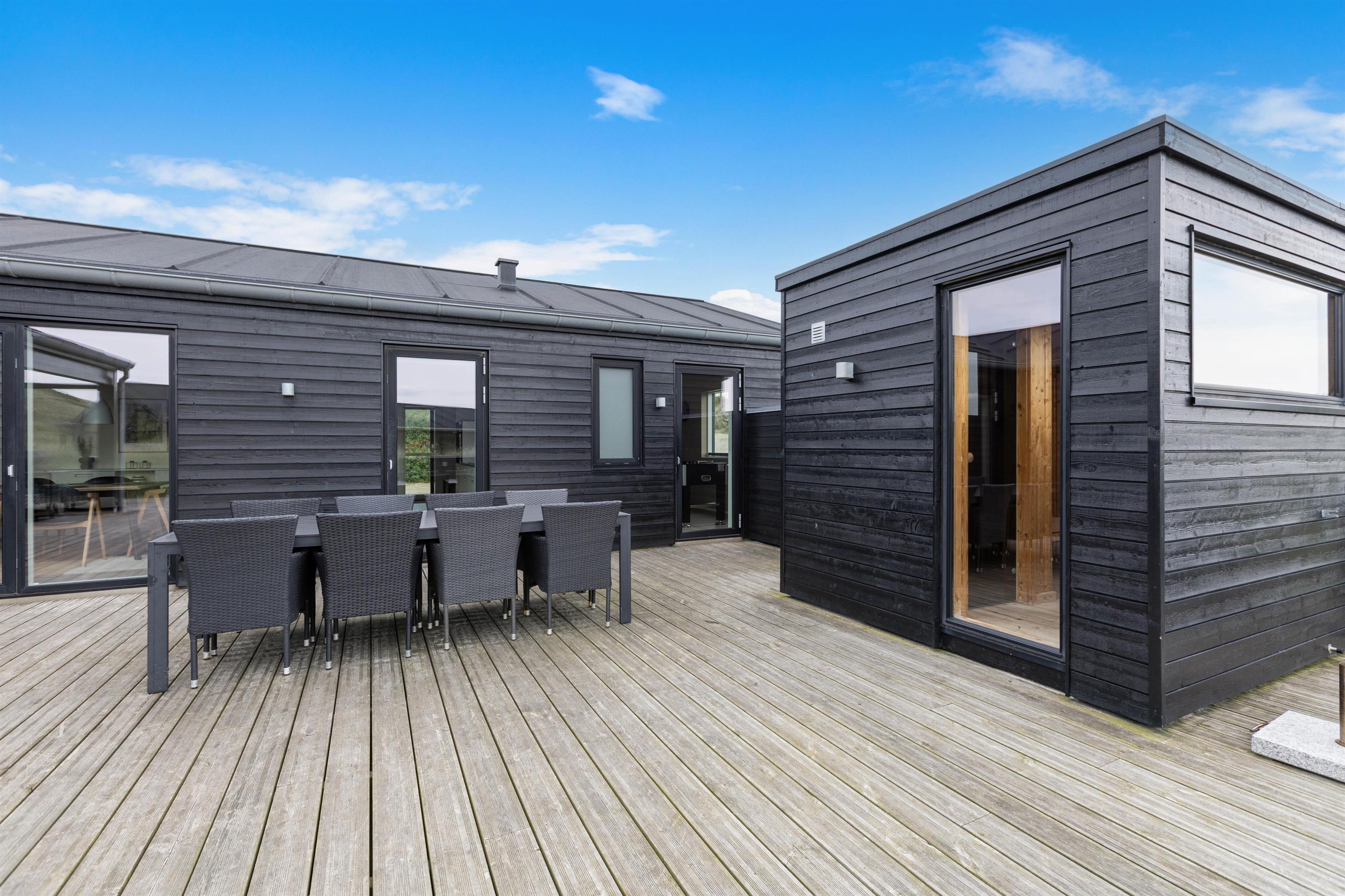 Også udvendigt får I de lækreste omgivelser. Der er både lukket terrasse og en skøn udestue, så I kan nyde den friske havluft selv i regn og blæst, og der er selvfølgelig sørget for gode havemøbler og liggestole til de varme sommerdage.