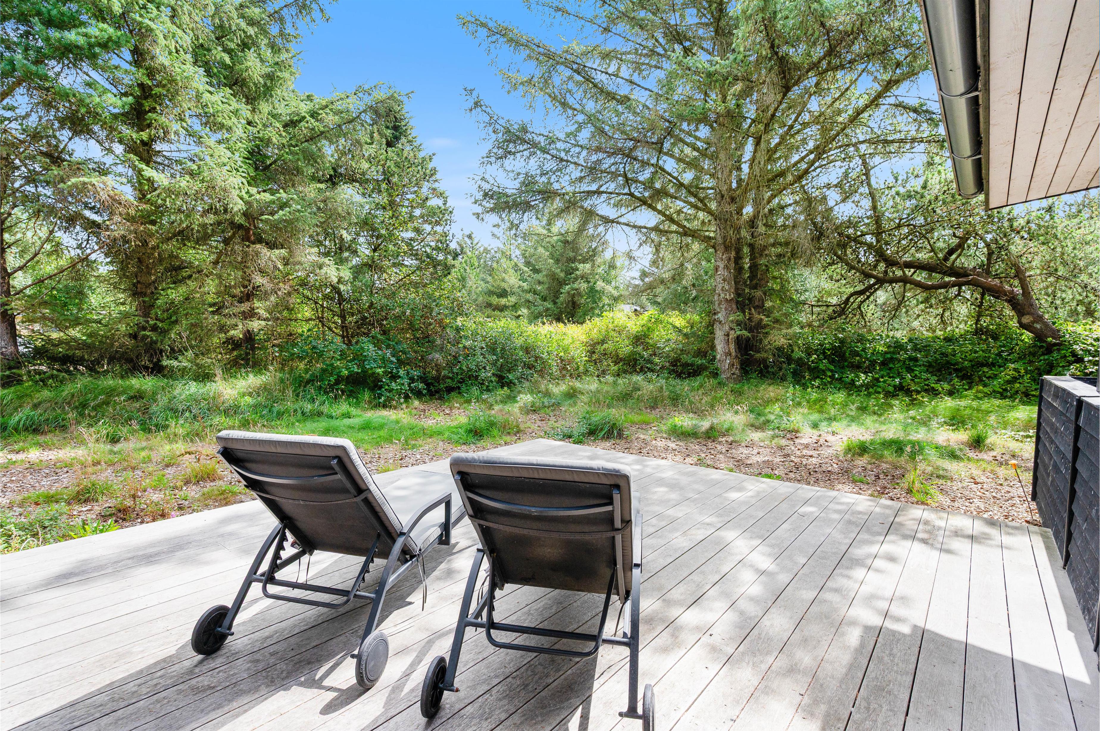 Afslapning på den lukkede terrasse ved skov og strand
