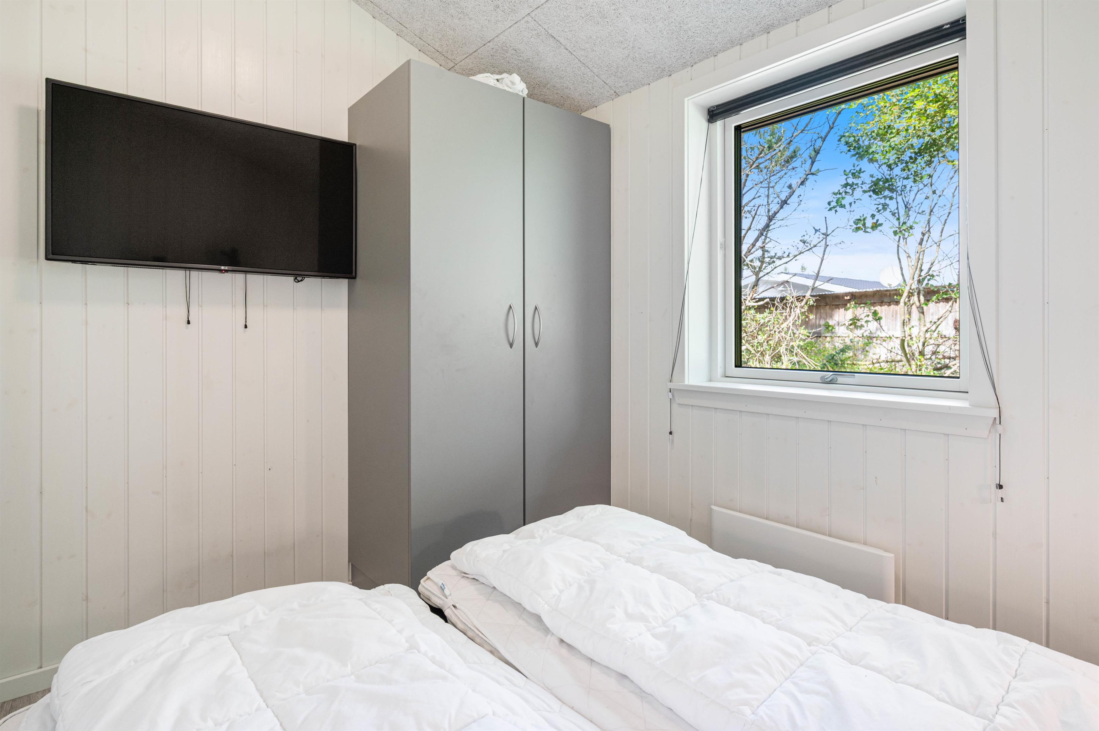 Der er 3 gode soverum, hvoraf de 2 er med dobbeltsenge og 1 værelse er med 2 enkeltsenge. De 2 badeværelser er flotte og praktisk indrettede. Det ene badeværelse har desuden en wellnessafdeling med spa og sauna, som inviterer til lidt forkælelse og velvære - måske efter en lang dag i den, til tider lidt barske, vestjyske natur.