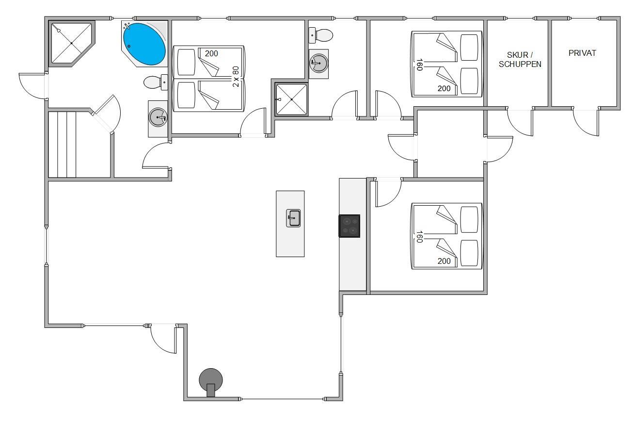 Vaskemaskine og tørretumbler hører også til huset og gør det nemt at pakke ferietøjet, uanset vejrudsigten. Energiudgifterne til opvarmningen reduceres af husets varmepumpe, der samtidig giver et behageligt indeklima.