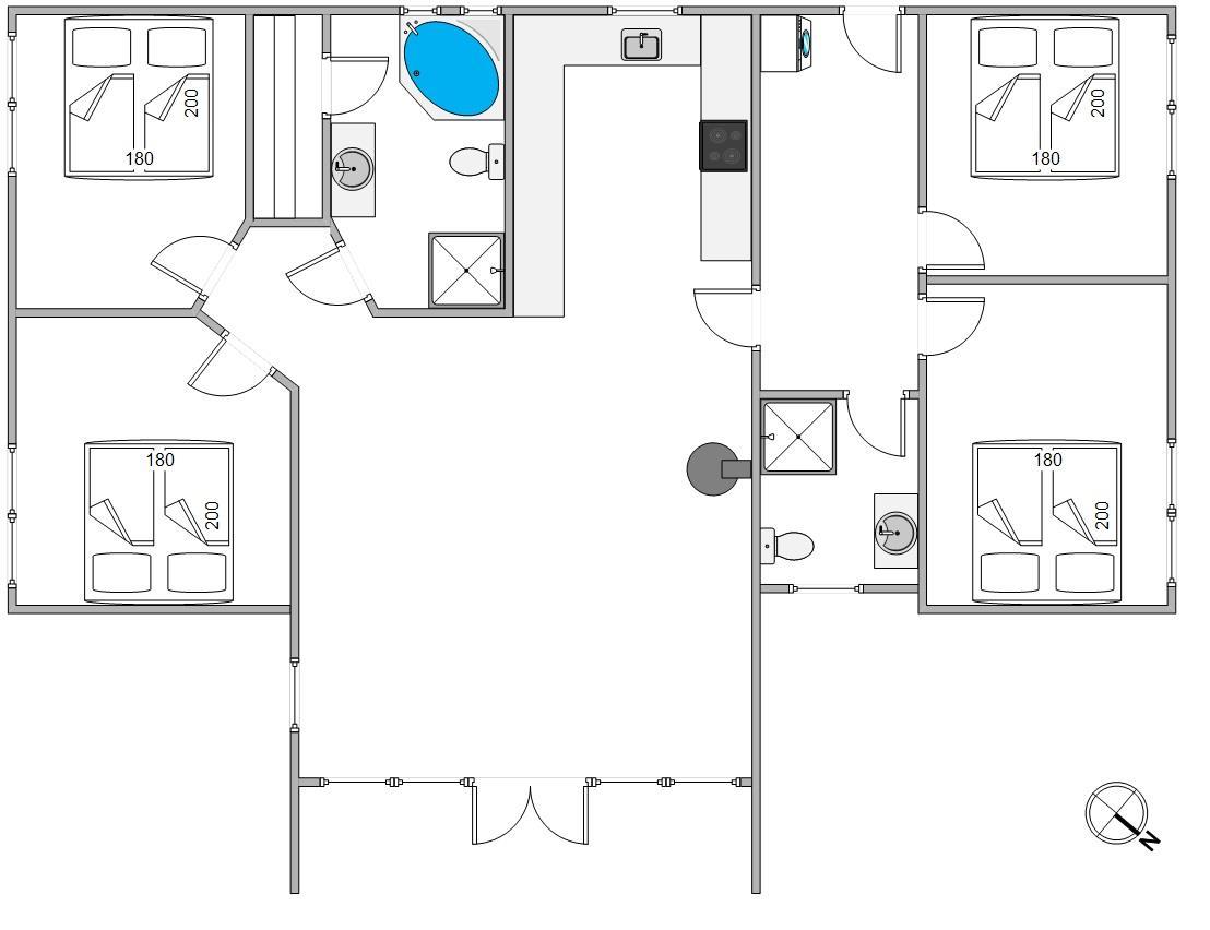 Feriehuset er bygget i 2012 og har 120m² I kan boltre jer på. Det er udstyret med en energibesparende luft til luft varmepumpe og har 2 badeværelser med gulvvarme. Det store badeværelse er udstyret med et spabad til 2 personer og en dejlig sauna.