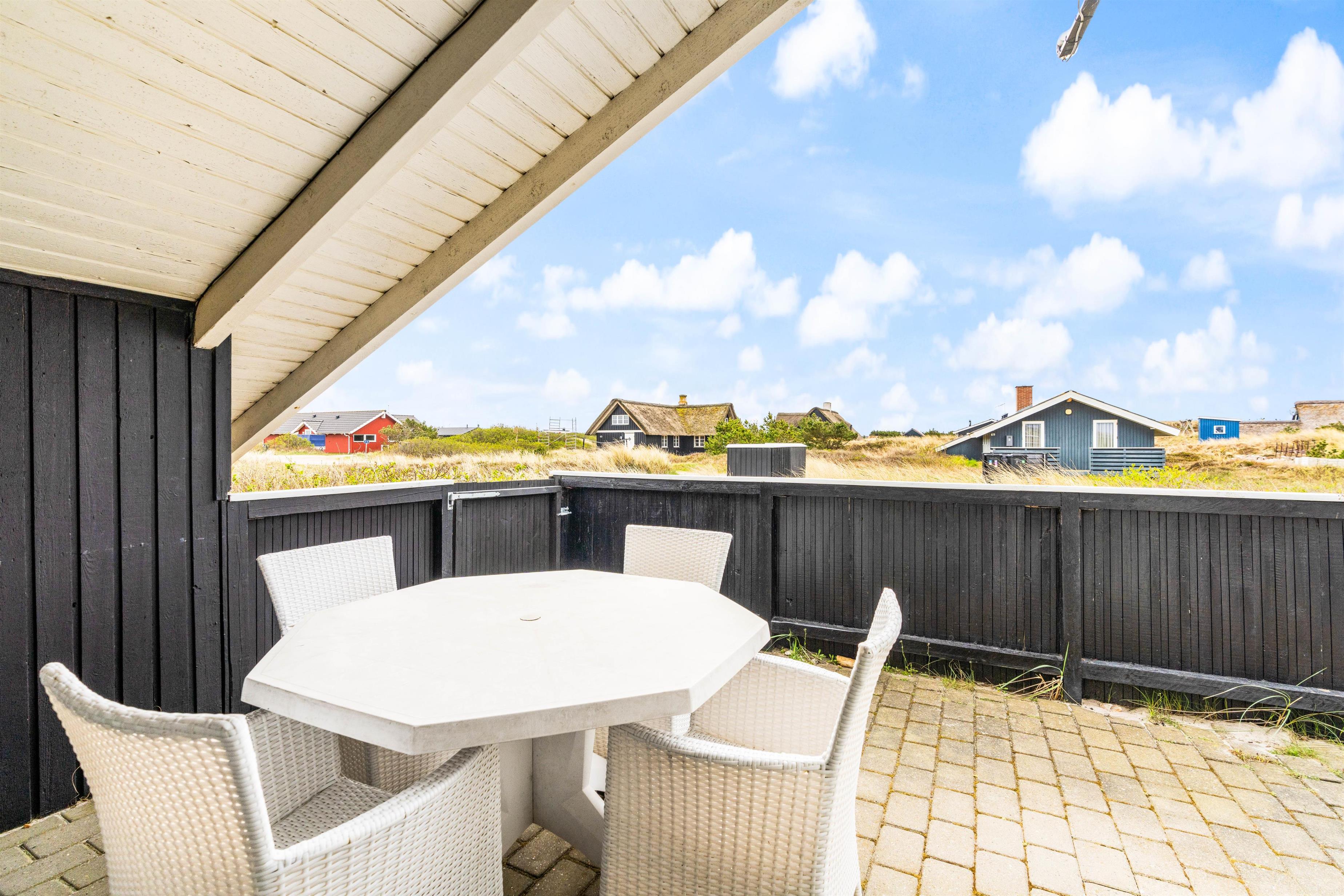 Feriehuset har gode terrasser rundt om huset. Det betyder, at I kan følge solens gang på himlen og hele tiden finde en god plads i solen eller skyggen. En del af terrassen har en overdækning. Her er det hyggeligt at sidde og nyde en god middag på en lun sommeraften – eller sidde og lytte til regnen, der trommer mod taget på en sommerdag.