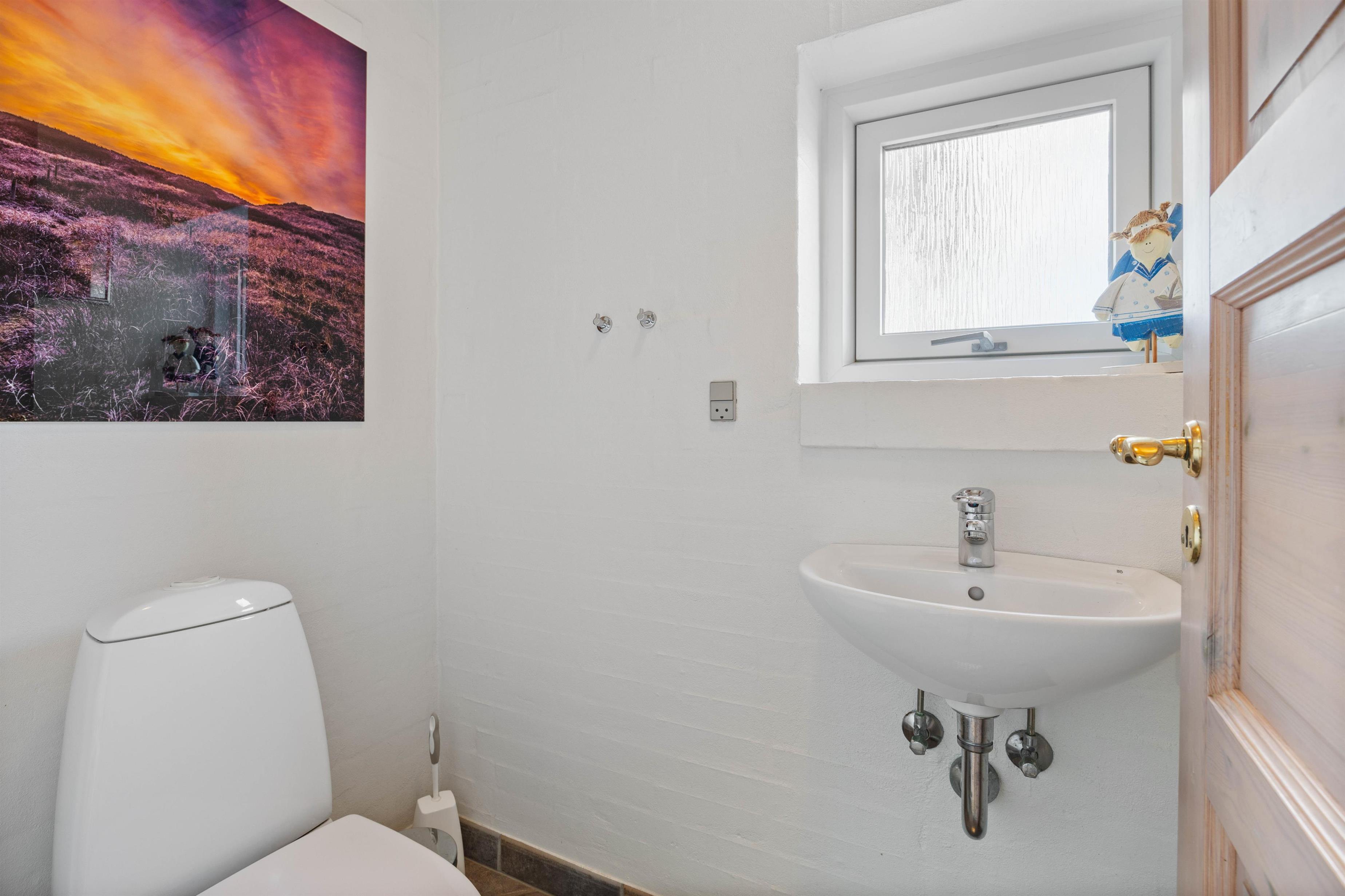 Praktisk har sommerhuset både et badeværelse og et gæstetoilet med gulvvarme, så I uforstyrret kan nyde et varmt bad i tømmespaen. I de 3 hyggelige soveværelser med komfortable senge vil I helt sikkert få en god nats søvn og vågne op med ny energi til næste feriedag.