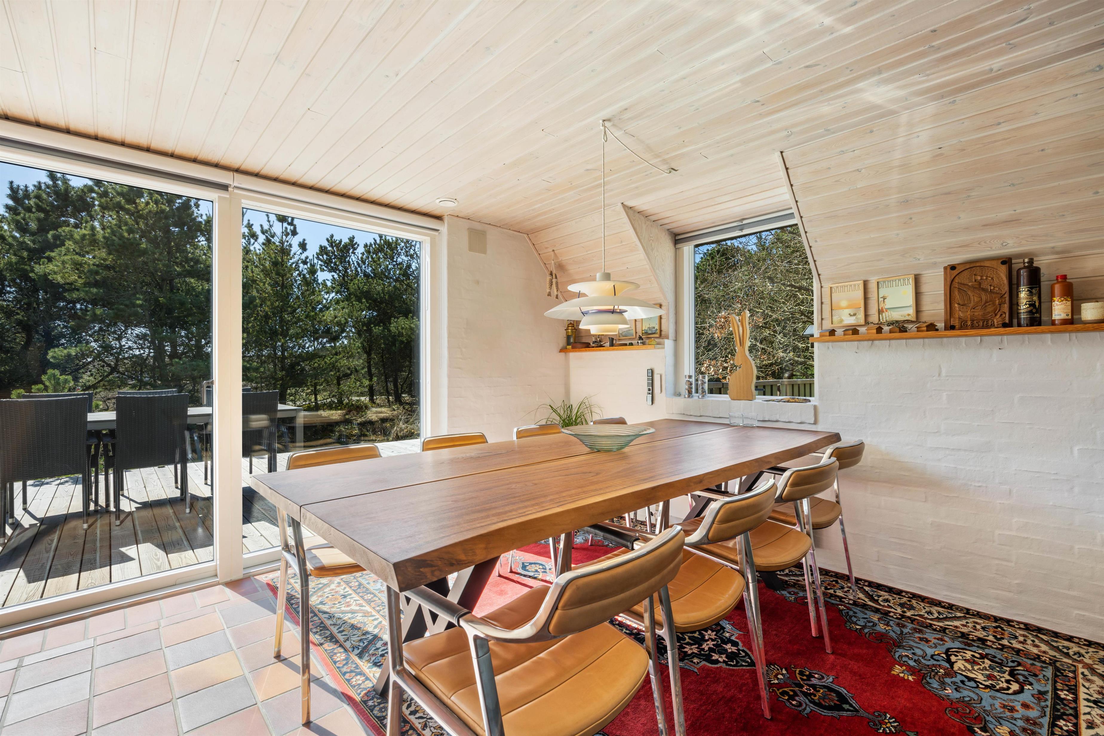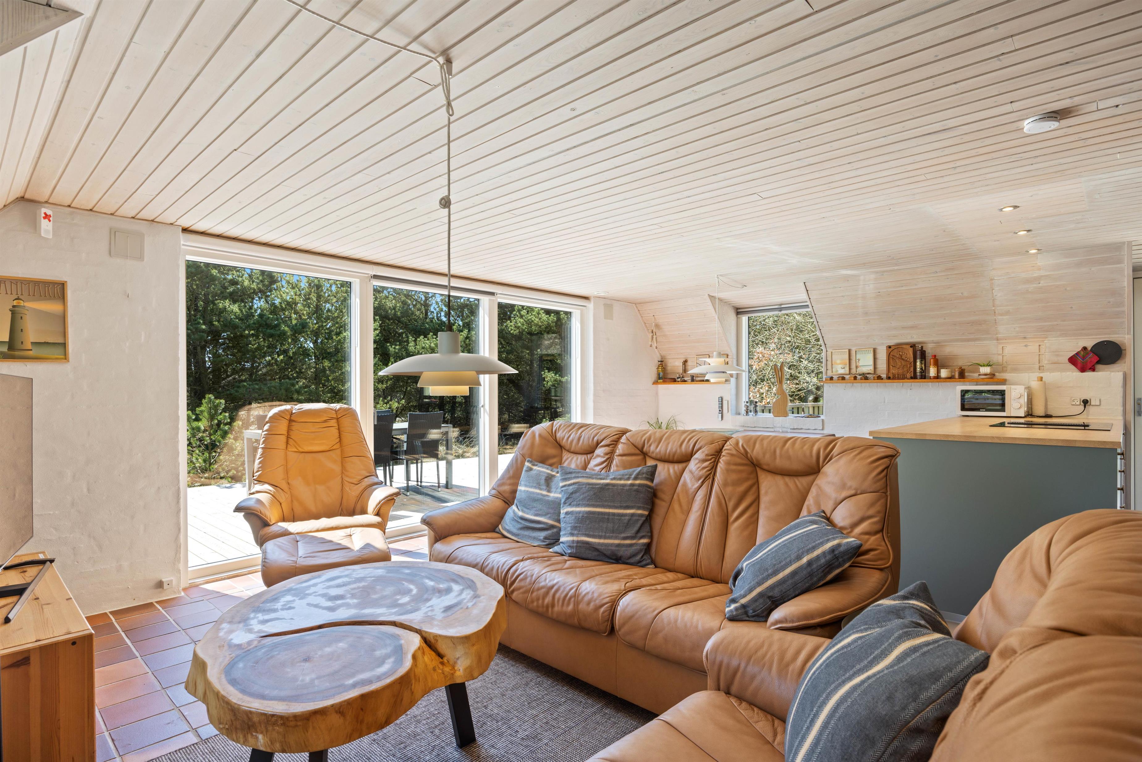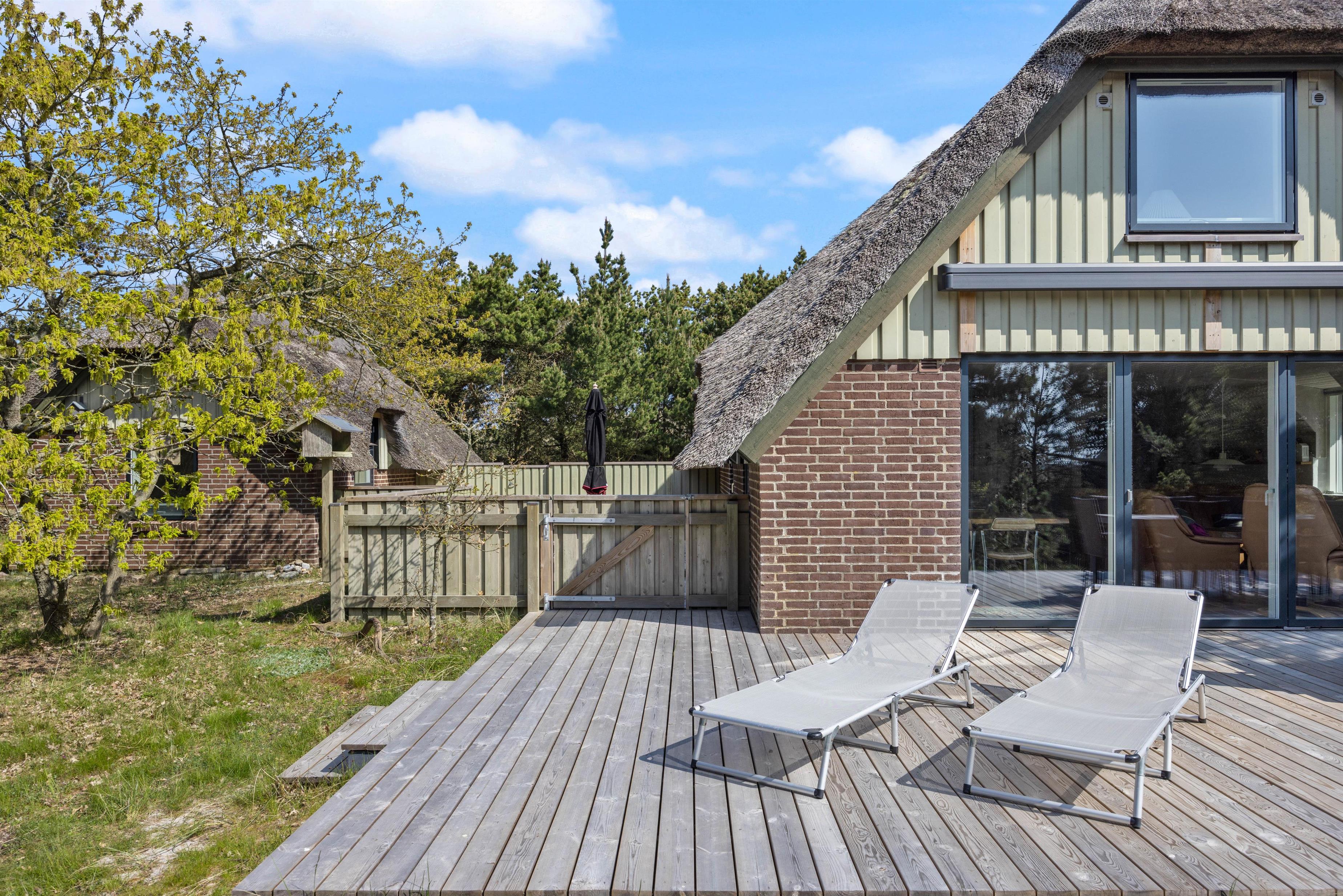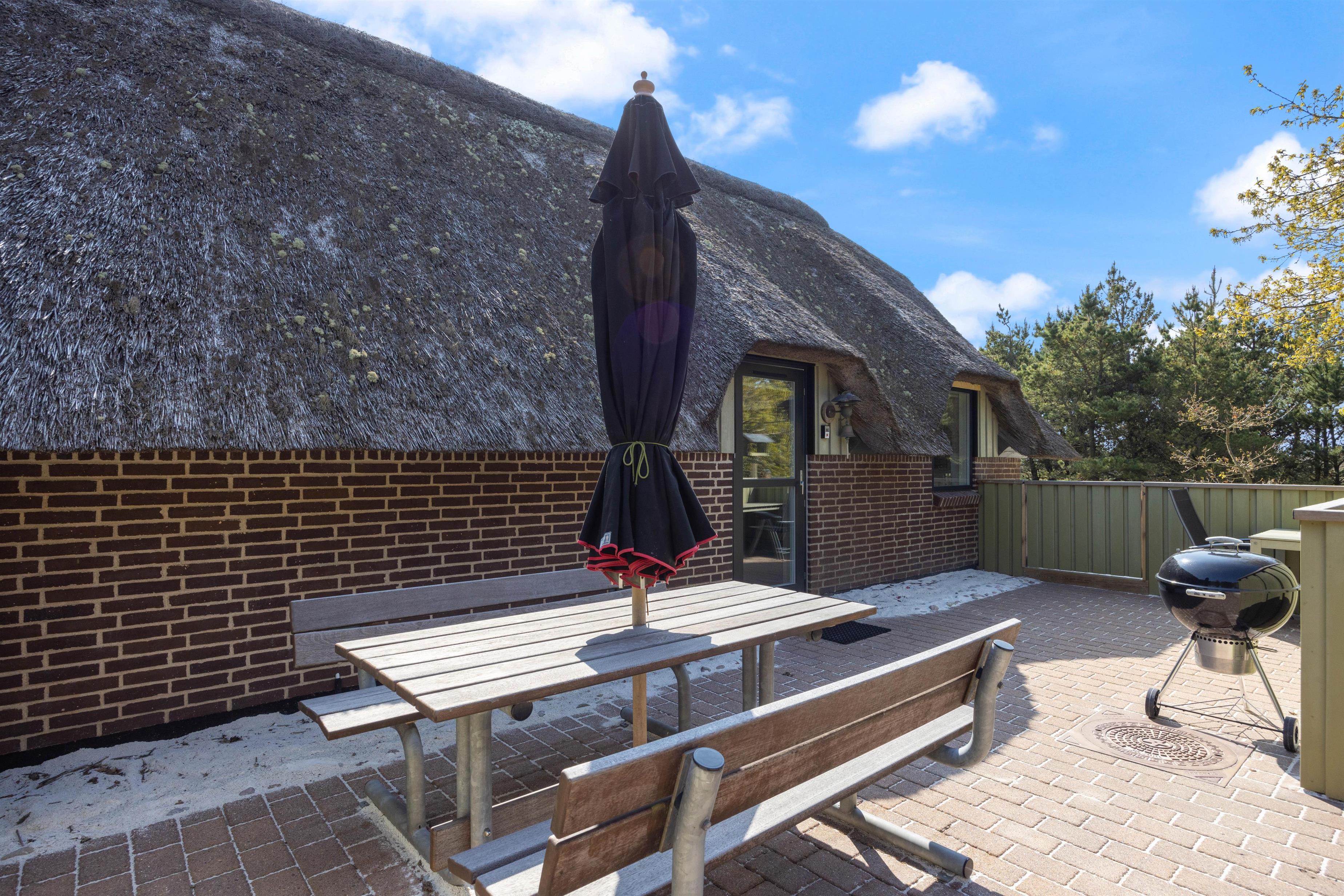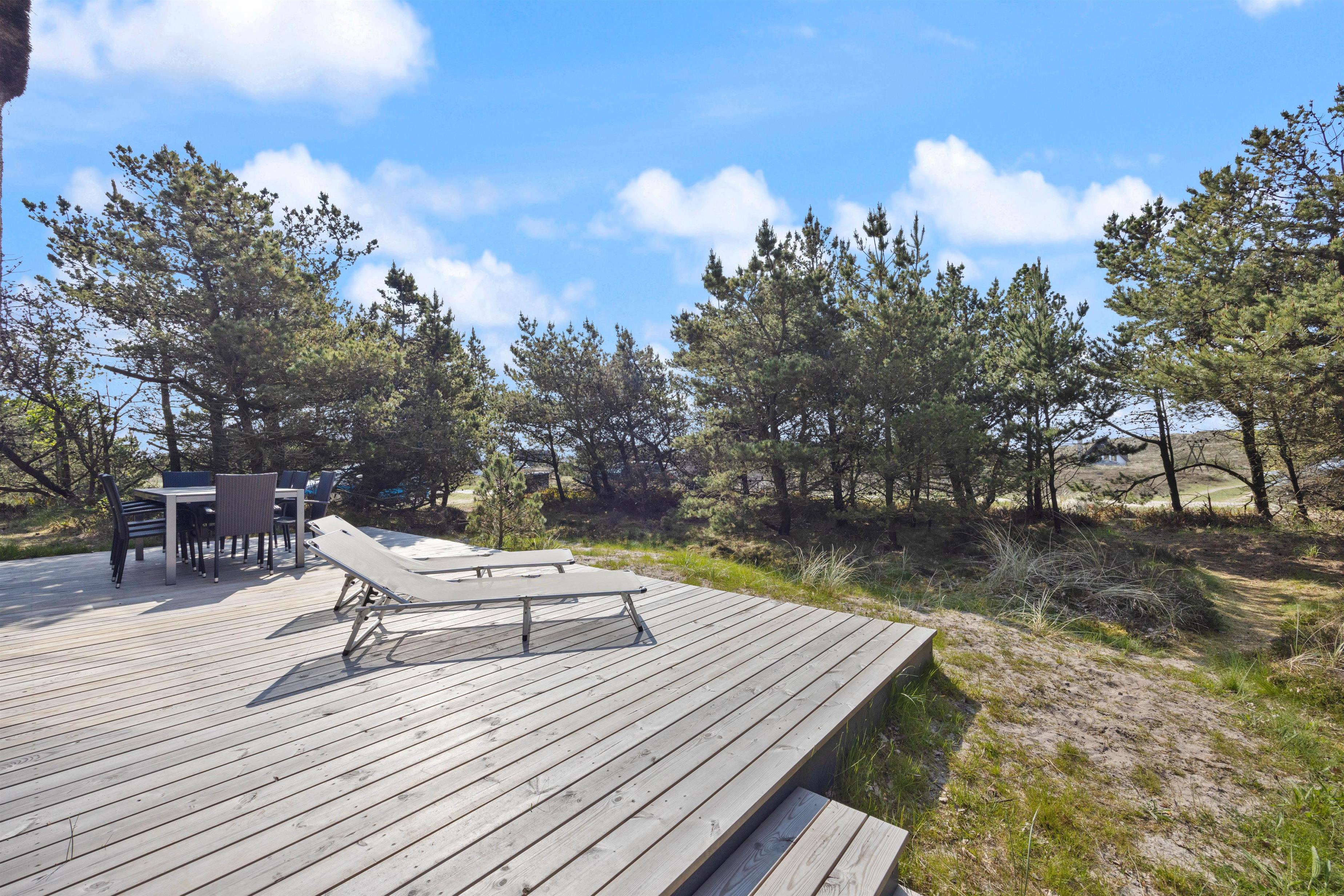 Der er både en åben, afskærmet- og en lukket terrasse ved sommerhuset, hvor I kan nyde udelivet i de komfortable havemøbler og liggestole. Den opvoksede beplantning på naturgrunden bidrager med læ og en beroligende skovduft af fyr. Her kan I gå på opdagelse med børnene, hvis ikke I vælger at tage dem med til stranden i stedet, og samle muslinger og skaller, bygge sandslotte og dyppe tæerne i Vesterhavet.