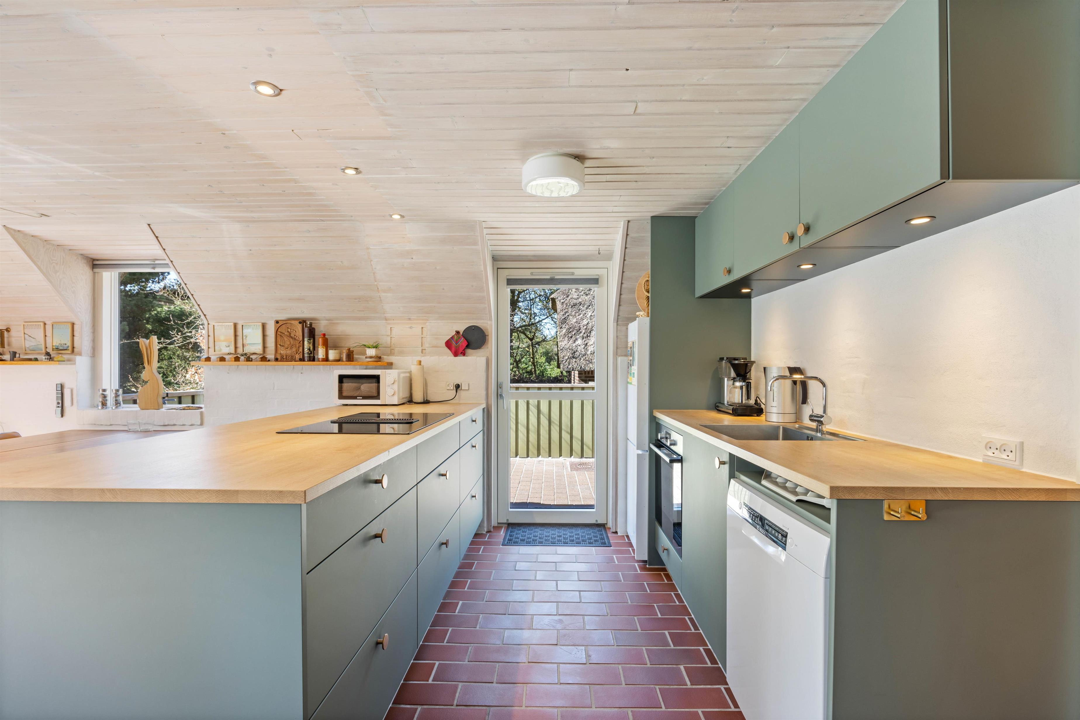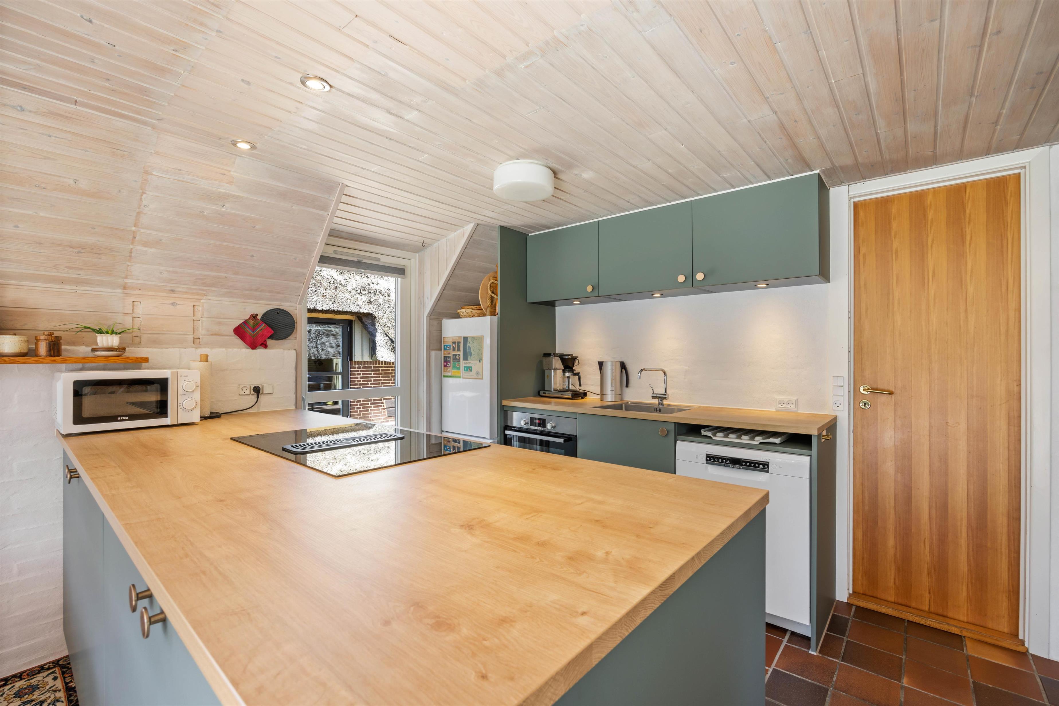 Det klassiske sommerhus har efter renoveringen bevaret sin charme. Man føler sig straks hjemme, og nyder alligevel godt af de moderne faciliterer. I det åbne køkken er der alt, hvad I behøver for at forkæle hinanden med lækre retter. I opholdsstuen med gulvvarme kan man fra spisepladsen følge med i alt, hvad der sker i både køkken og sofagruppe. Læs en knitrende morgenavis imens kaffen brygger i køkkenet, og ilden i brændeovnen giver ekstra varme og feriestemning til hele opholdsområdet. Med Smart-TV kan i holde en hyggelig filmaften med hele familien.