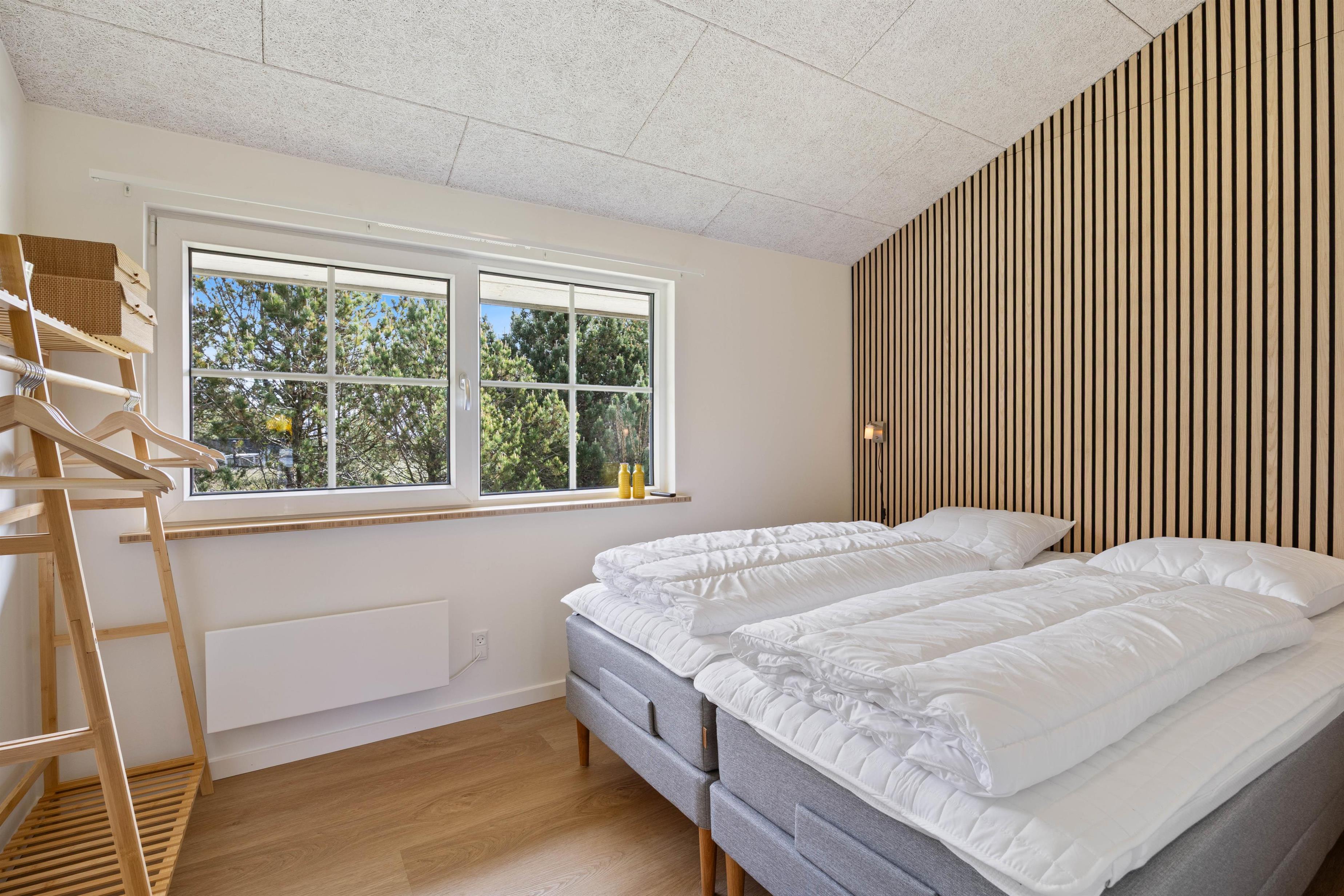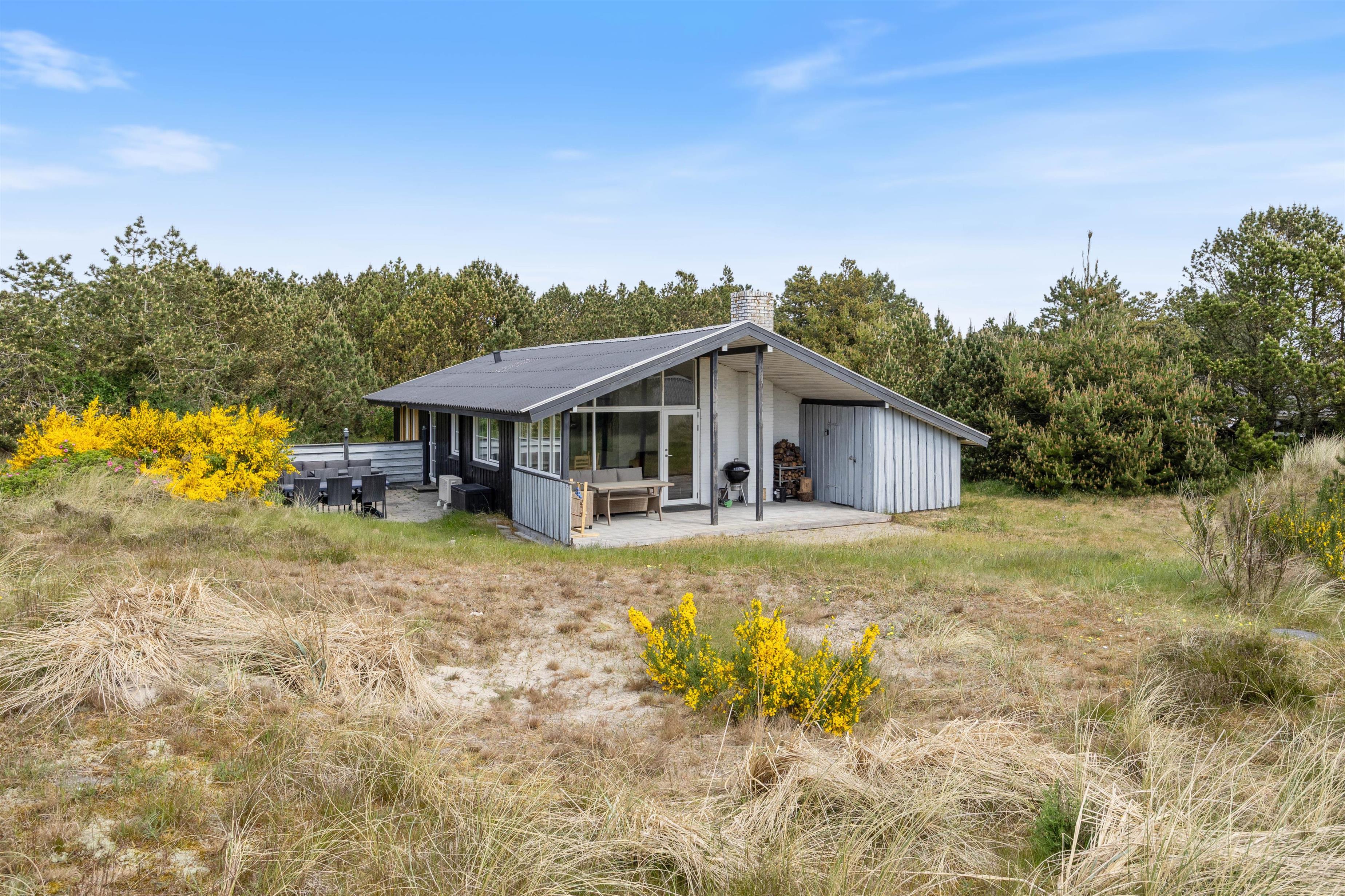 På Bjerregårdsvej 110 venter et lyst og indbydende sommerhus, hvor I kan nyde ferien i rolige omgivelser. Sommerhuset har plads til op til 6 personer fordelt på 3 soverum og egner sig perfekt til både familieferie og en pause med gode venner. Her må I også tage familiens hund med, så alle kan få glæde af ferien. Med kun 900 meter til stranden og 500 meter til nærmeste indkøb ligger det hele inden for rækkevidde - hvad enten I trænger til et dyp i det brusende Vesterhav eller lige mangler det sidste til aftensmaden.