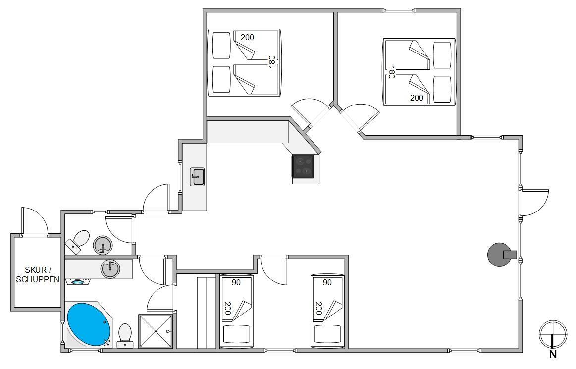 I de 3 soveværelser er 6 komfortable sengepladser, fordelt på 2 værelser med dobbeltsenge og 1 værelse med 2 enkeltsenge, så I kan arrangere jer, som det passer jer bedst. Her kan I lade batterierne op til næste dags aktiviteter – læg mærke til, at den friske vesterhavsluft gør noget godt for nattesøvnen. Hvis du trænger til afslapning eller at varme kroppen op efter en lang efterårstur, kan du bruge feriehusets sauna og spabad. Der er både badeværelse med gulvvarme og gæstetoilet, så du kan roligt tage dig god tid. Der er installeret en vaskemaskine i feriehuset til friske håndklæder.