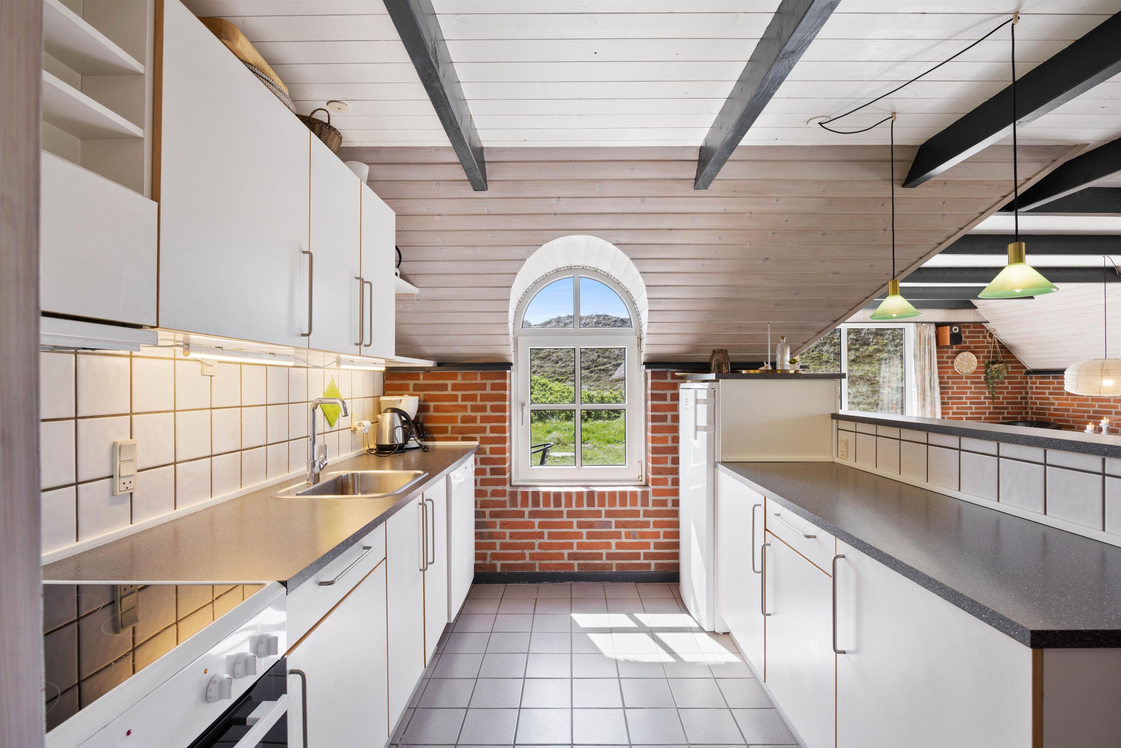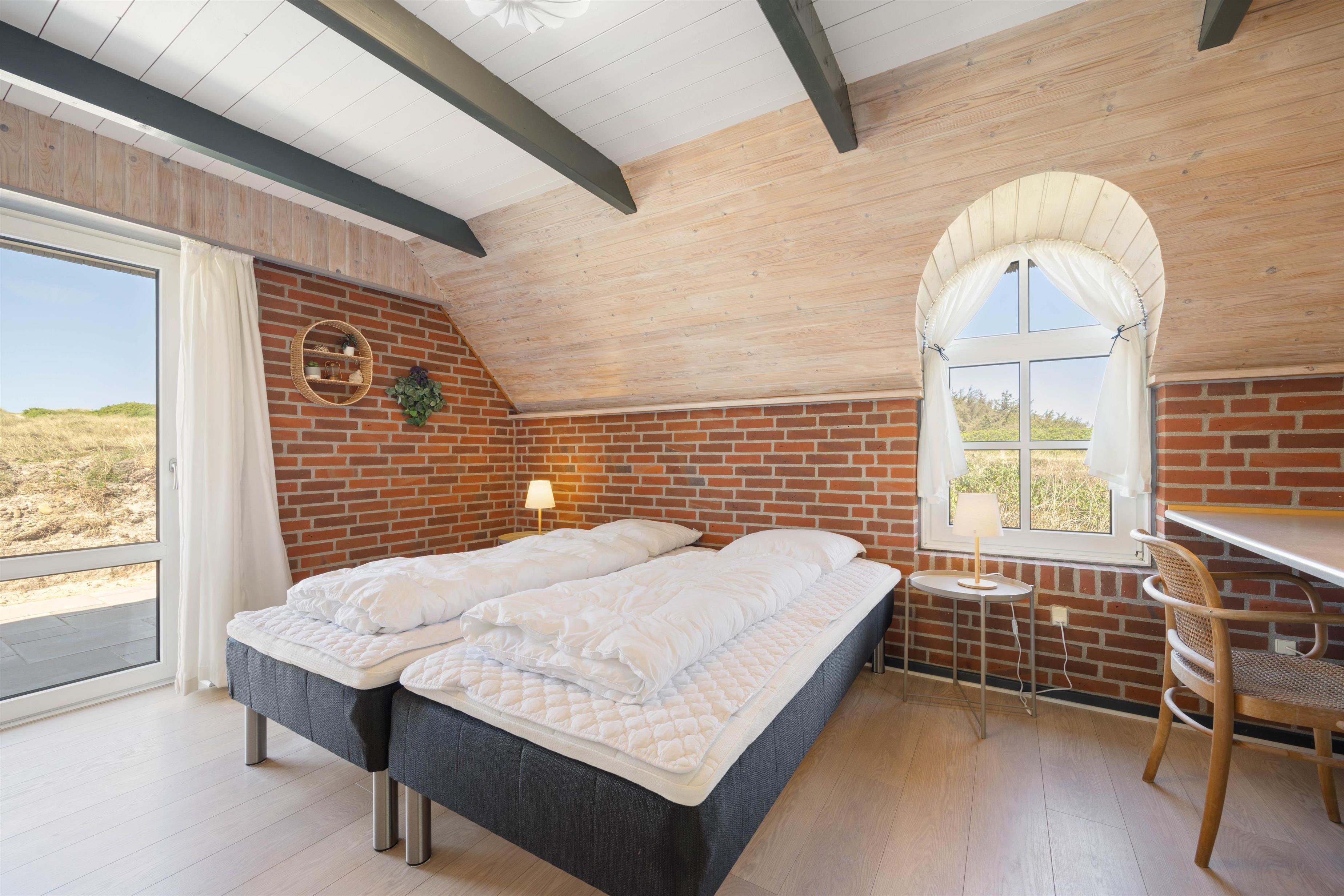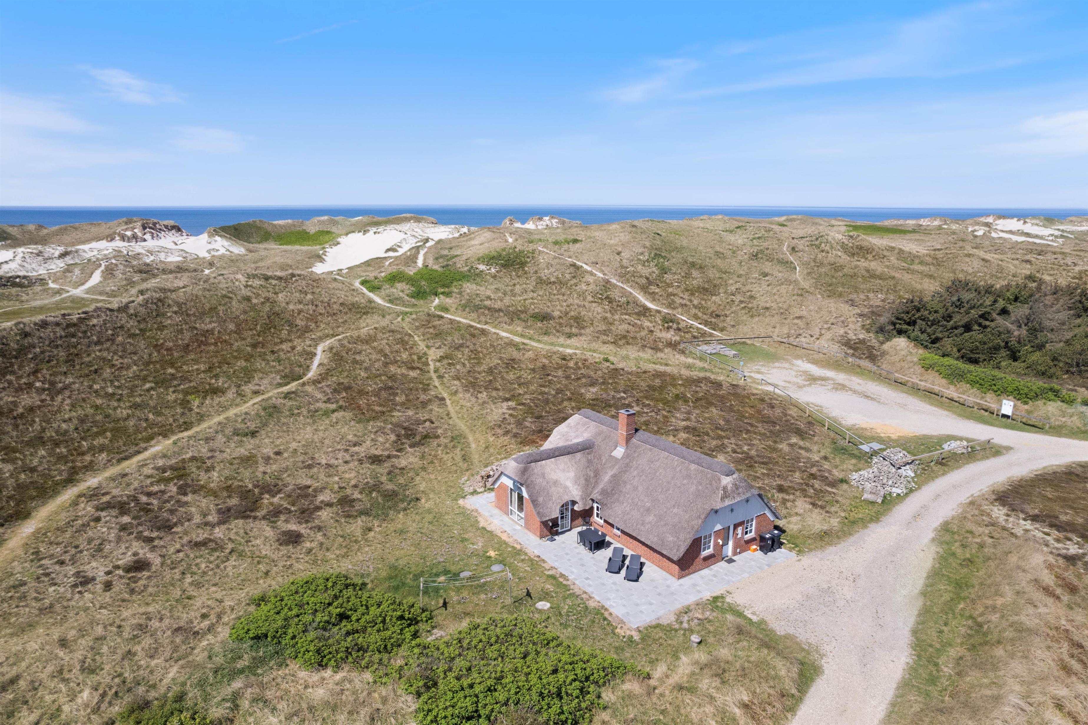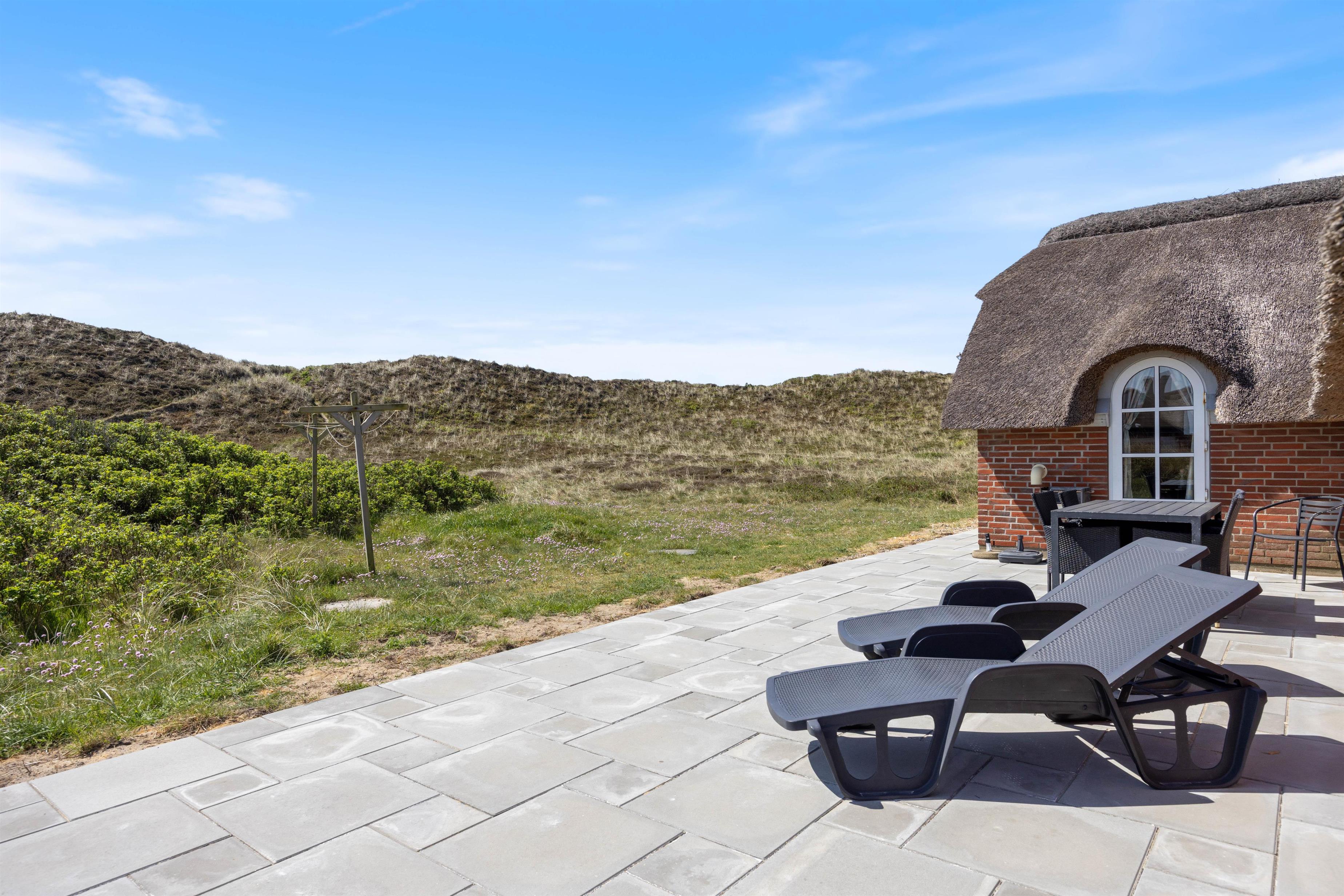 Den førsteklasses beliggenhed ved foden af den yderste klitrække i den storslåede natur i Vestjylland gør udendørslivet til en oplevelse, den fine sandstrand er lige på den anden side af klitten og fra den flisebelagte og velmøblerede terrasse er der udsigt over vidtstrakte hedearealer, hvor en travetur med familiens hunde vil være en daglig fornøjelse.