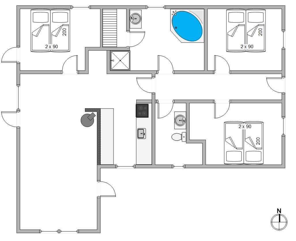 Sommerhuset råder over 3 dobbeltværelser til i alt 6 personer, så der er plads til både familie eller venner. Efter en aktiv dag ude i naturen kan I nyde den afslappende afdeling med spabad og sauna, hvor kroppen kan få ro og ny energi – perfekt til afslutning på en oplevelsesrig dag.