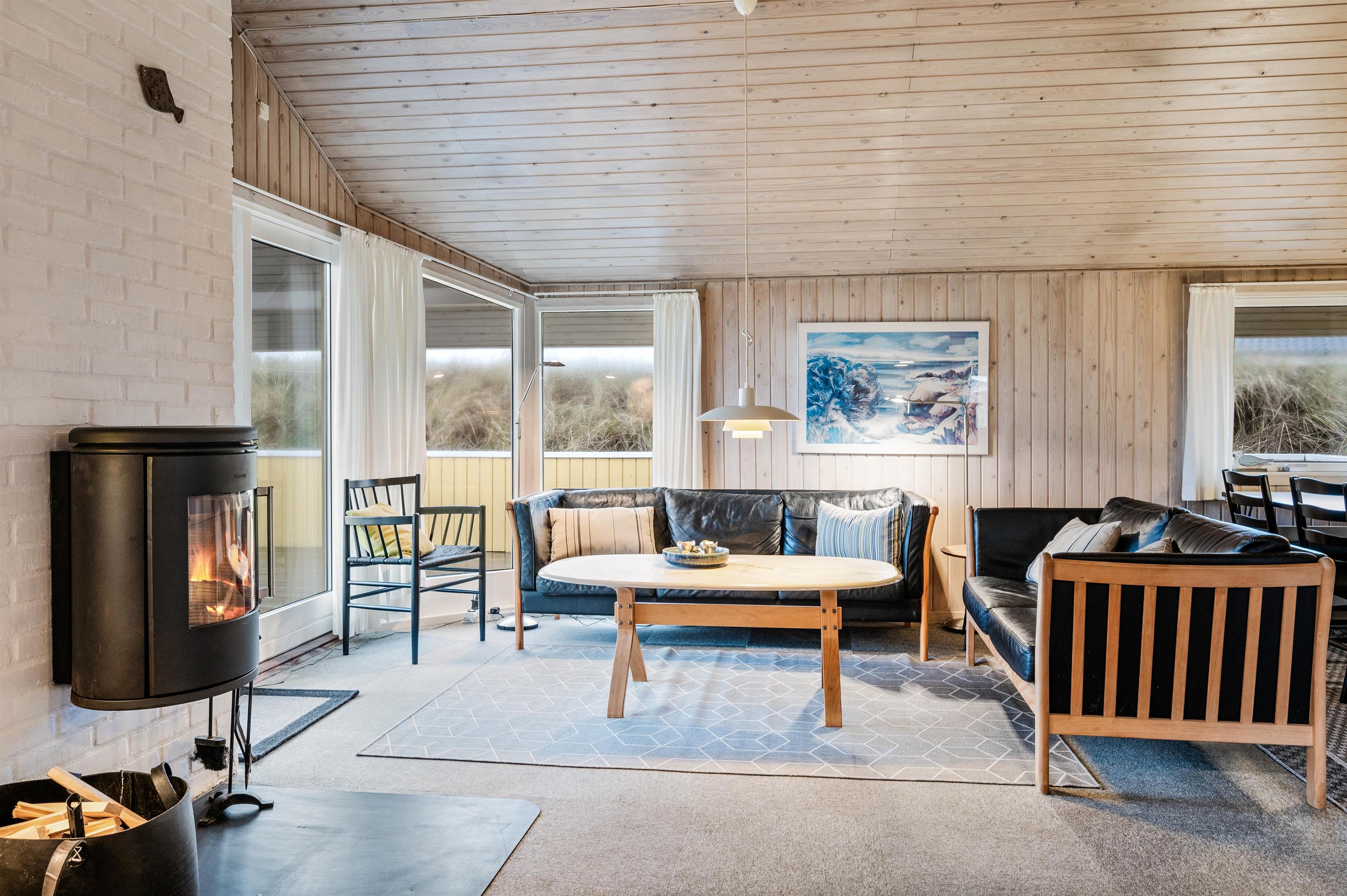 Dette hyggelige feriehus danner den perfekte ramme om en skøn ferie ved Vesterhavet, såvel sommer som vinter. Sommerhuset har alt, hvad op til 6 personer behøver for at føle sig rigtig godt tilpas. Den indbydende stue er pænt møbleret med gode møbler og har desuden brændeovn og en hyggelig alkove.