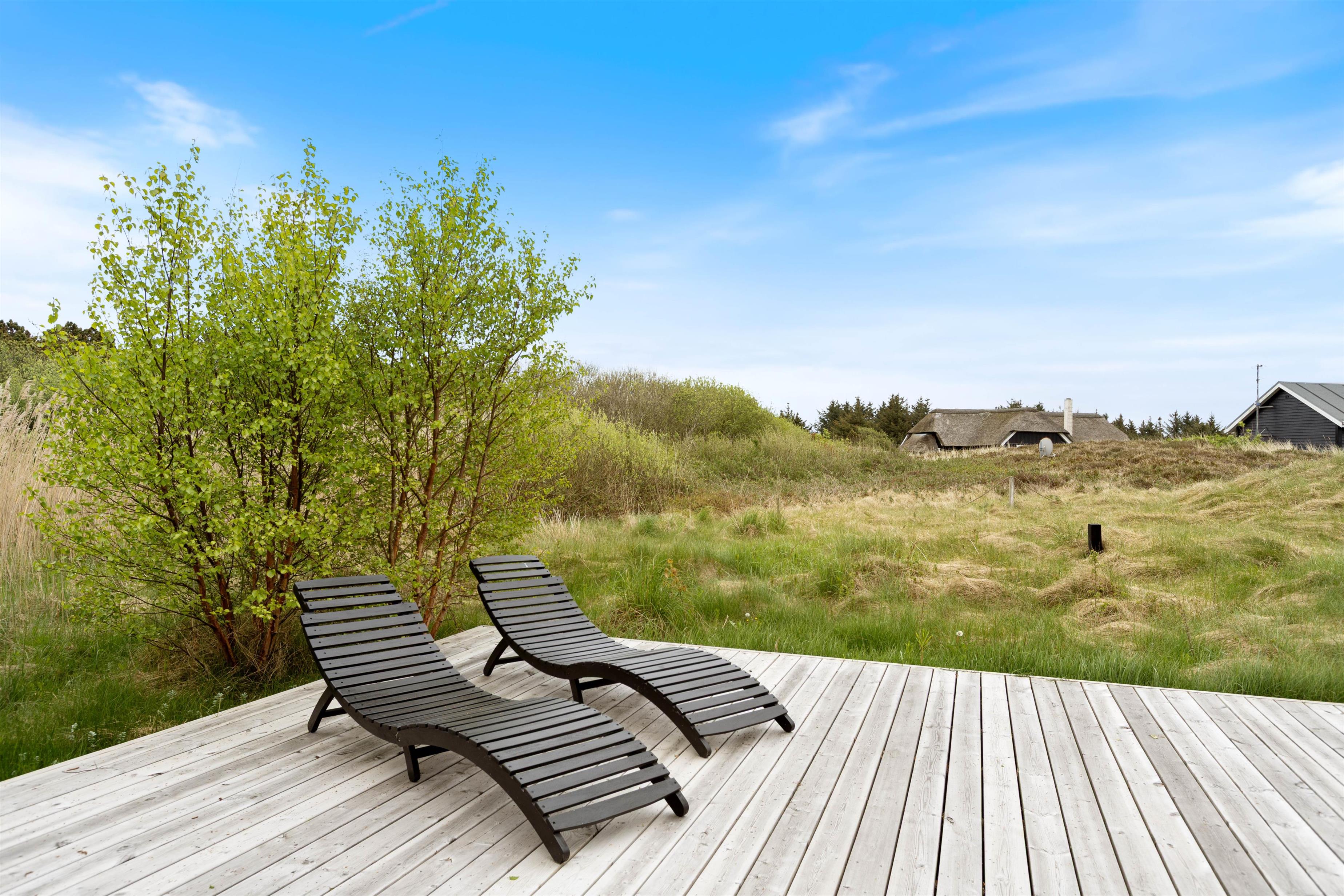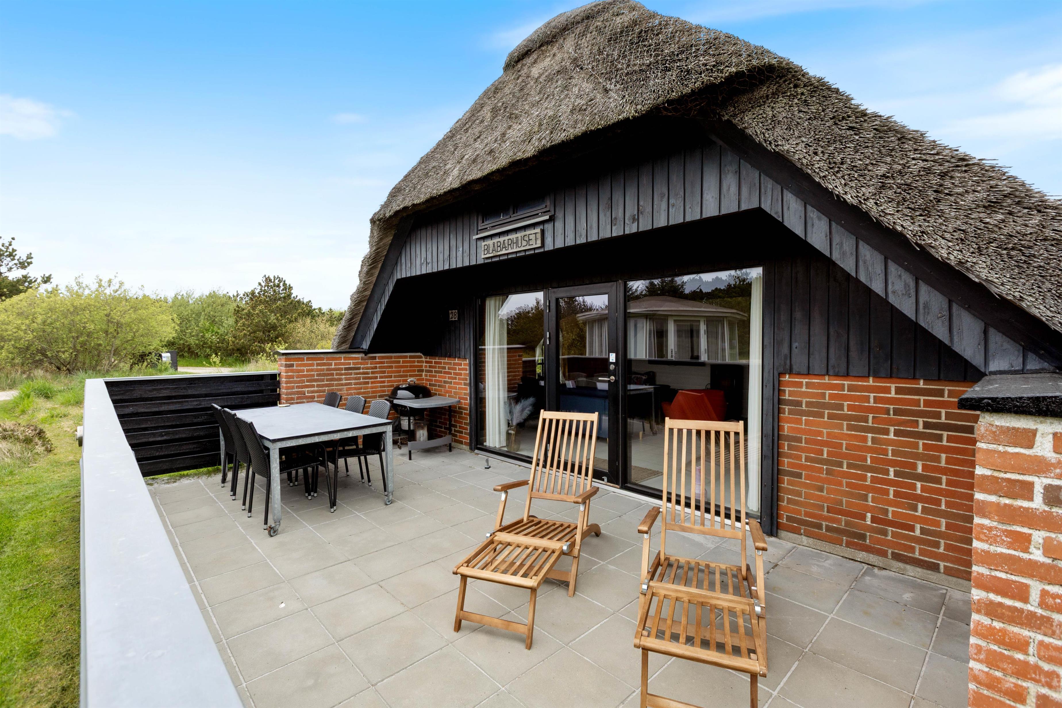 Det stråtækte feriehus er udstyret med 2 dejlige terrasser, så der både er mulighed for morgen- og aftensol. Der er en afskærmet terrasse i forbindelse med stuen, så I kan nyde den friske luft både inde og ude. En ekstra terrasse er på den anden side af feriehuset med dejlig plads til sol og samvær.