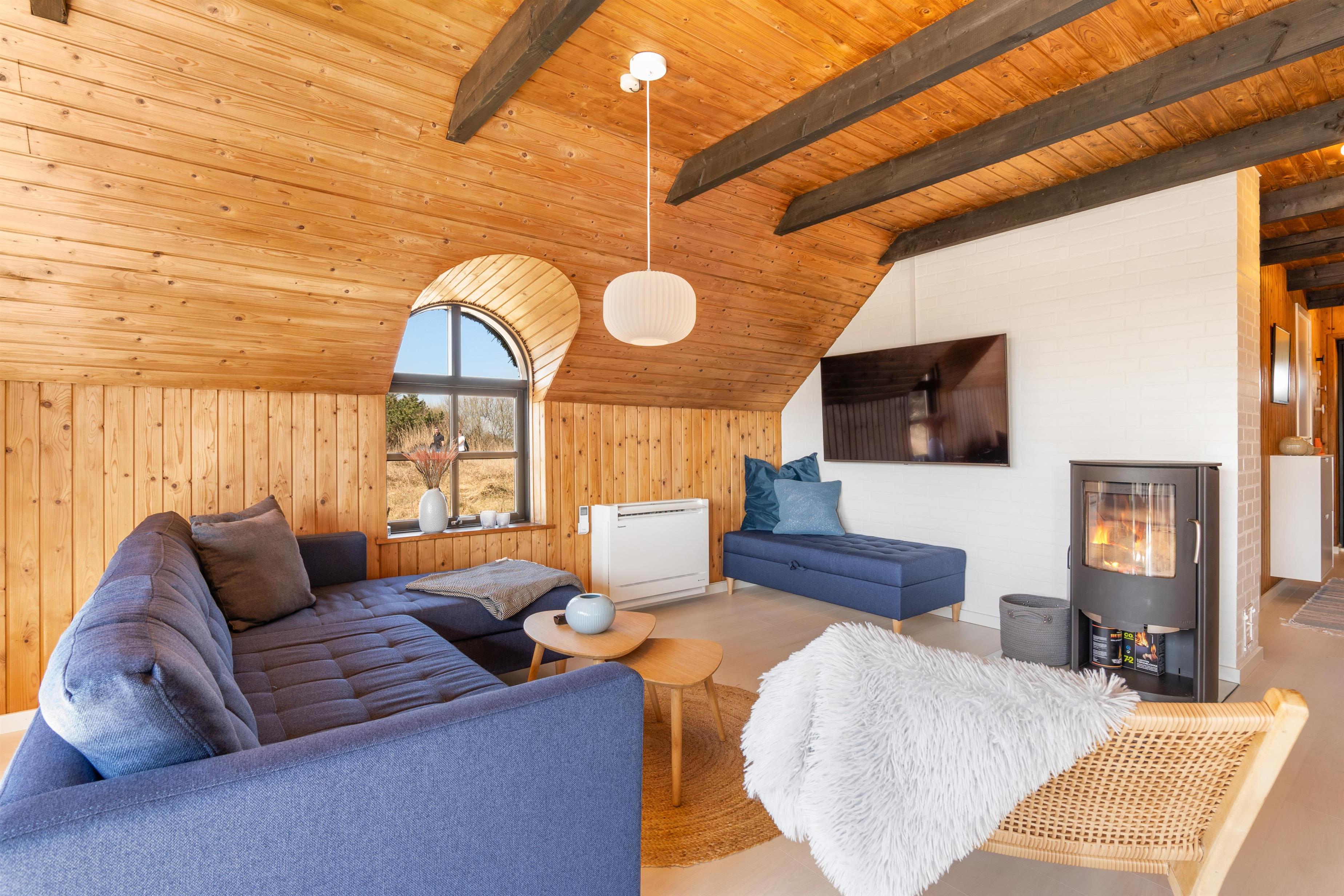 På Blåbærheden 28 i Bjerregård finder du en ugenert naturgrund med dette hyggelige sommerhus. Med kun 500 meter til Vesterhavet er der rig mulighed for nogle friske gåture igennem klitlandskabet – og en kop kaffe eller te ved varmen fra brændeovnen bagefter. Der er 2 kilometer til indkøbsmuligheder, hvilket er perfekt til en cykeltur på stisystemet.