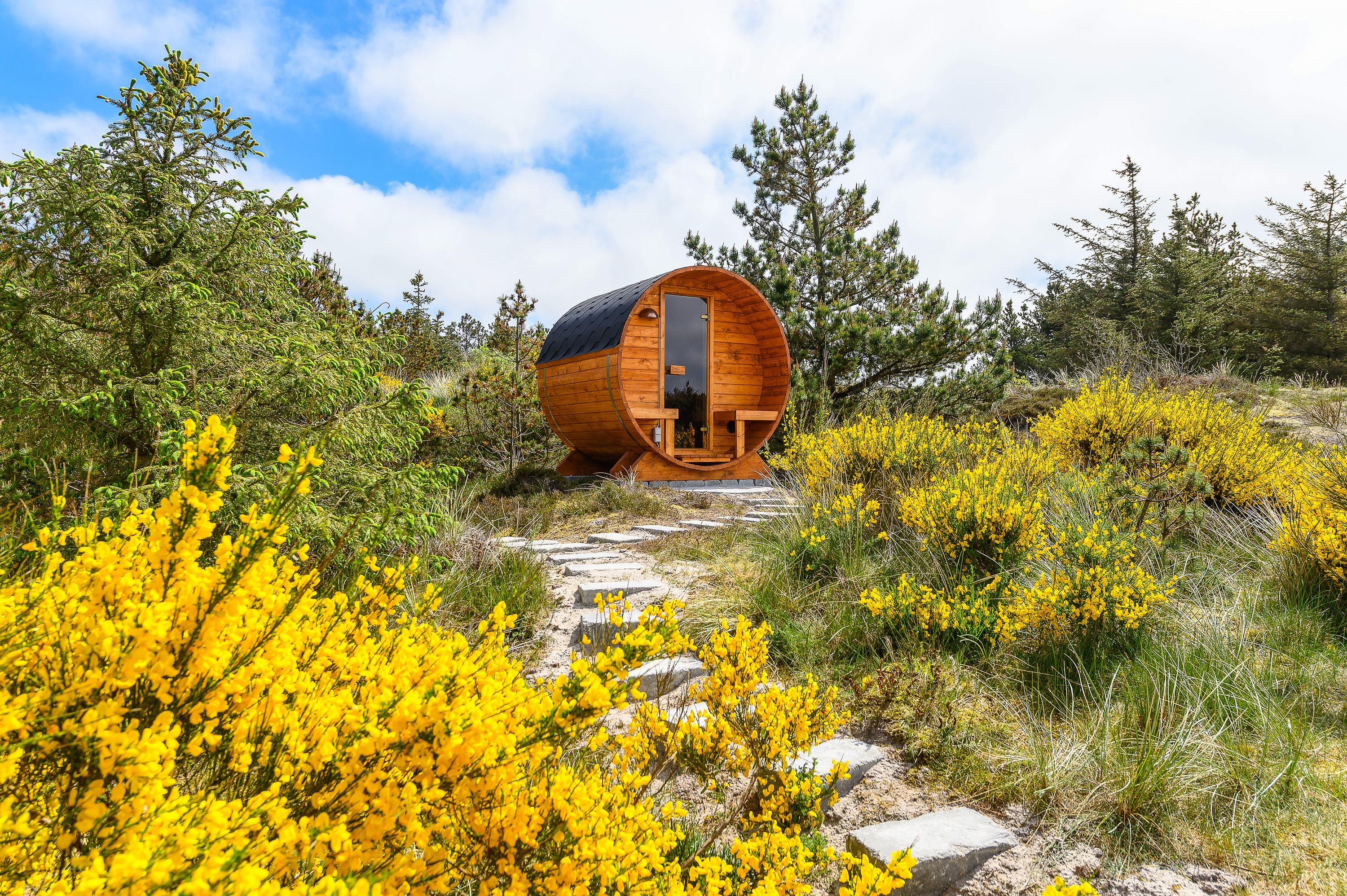 Sommerhusets udendørs sauna, som er placeret lidt højt på grunden, er en oplagt mulighed for afslapning efter en dag i naturen. Derudover indbyder feriehusets 2 terrasser til kvalitetstid, hvor I enten kan nyde morgenmaden i den skønne morgensol på den lukkede terrasse eller lækre grillmåltider på de lyse sommeraftener under den overdækkede del. På naturgrunden kan du finde ro og nyde stilheden, væk fra hverdagens travlhed.