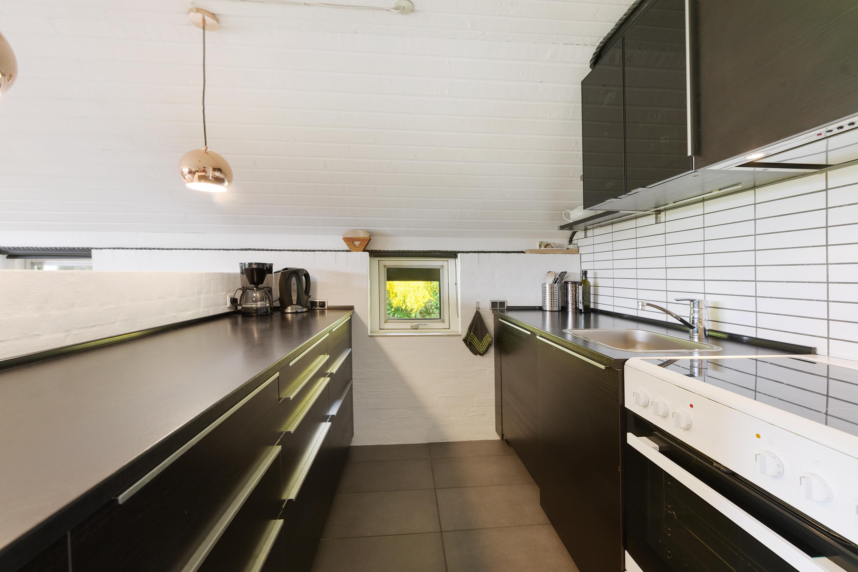 I feriehuset her er der lagt op til hygge og samvær indenfor skråvæggene. Sommerhuset byder på ren afslapning, da køkkenets opvaskemaskine klarer opvasken, vaskemaskinen sørger for nyvasket tøj, samt er der mulighed for benyttelse af mikroovn og tørretumbler, alt imens ferien nydes inde foran brændeovnen, som fungerer som sommerhusets hyggelige samlingspunkt. Indkøbsmulighederne ligger kun 600 meter væk.