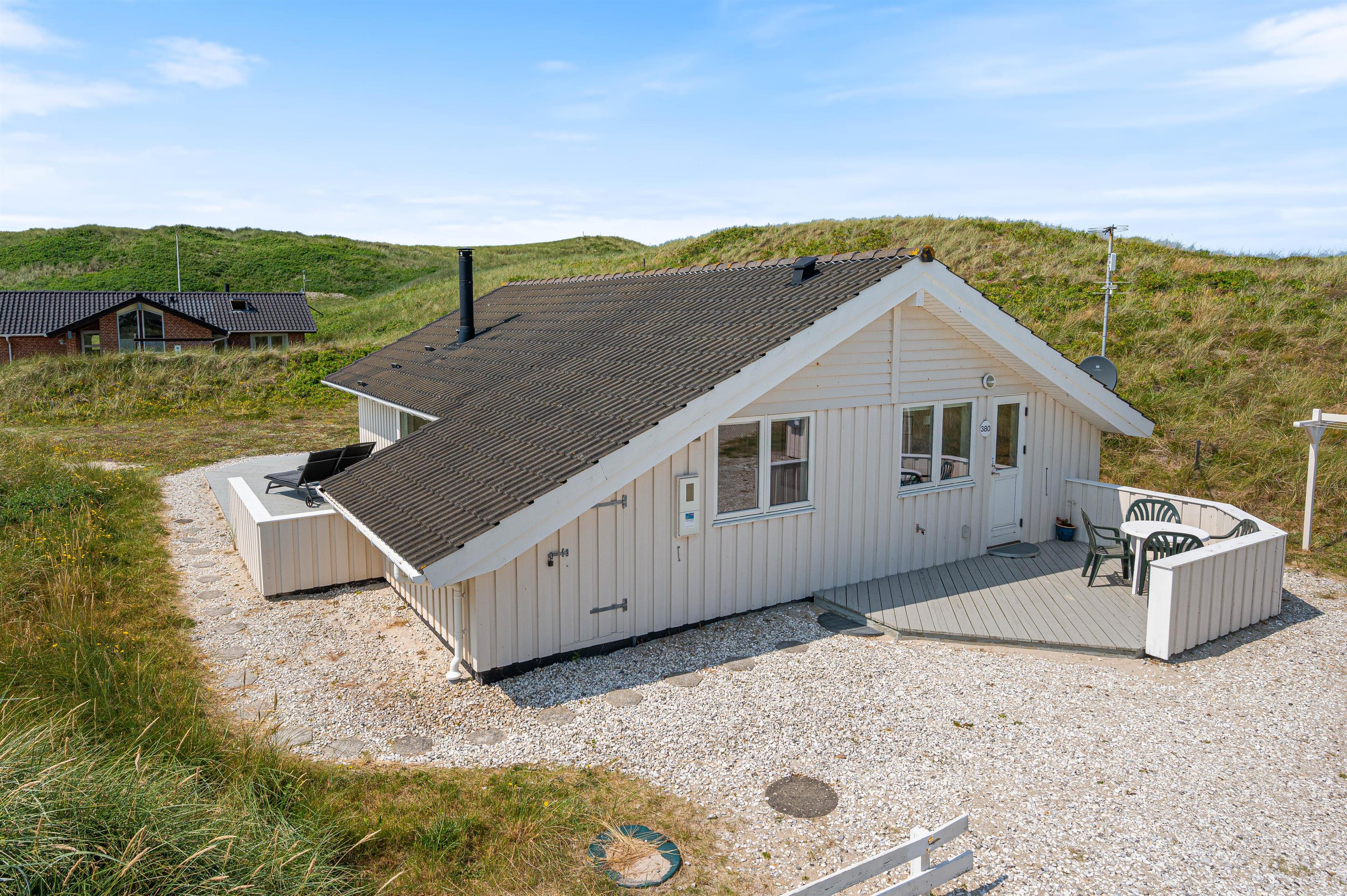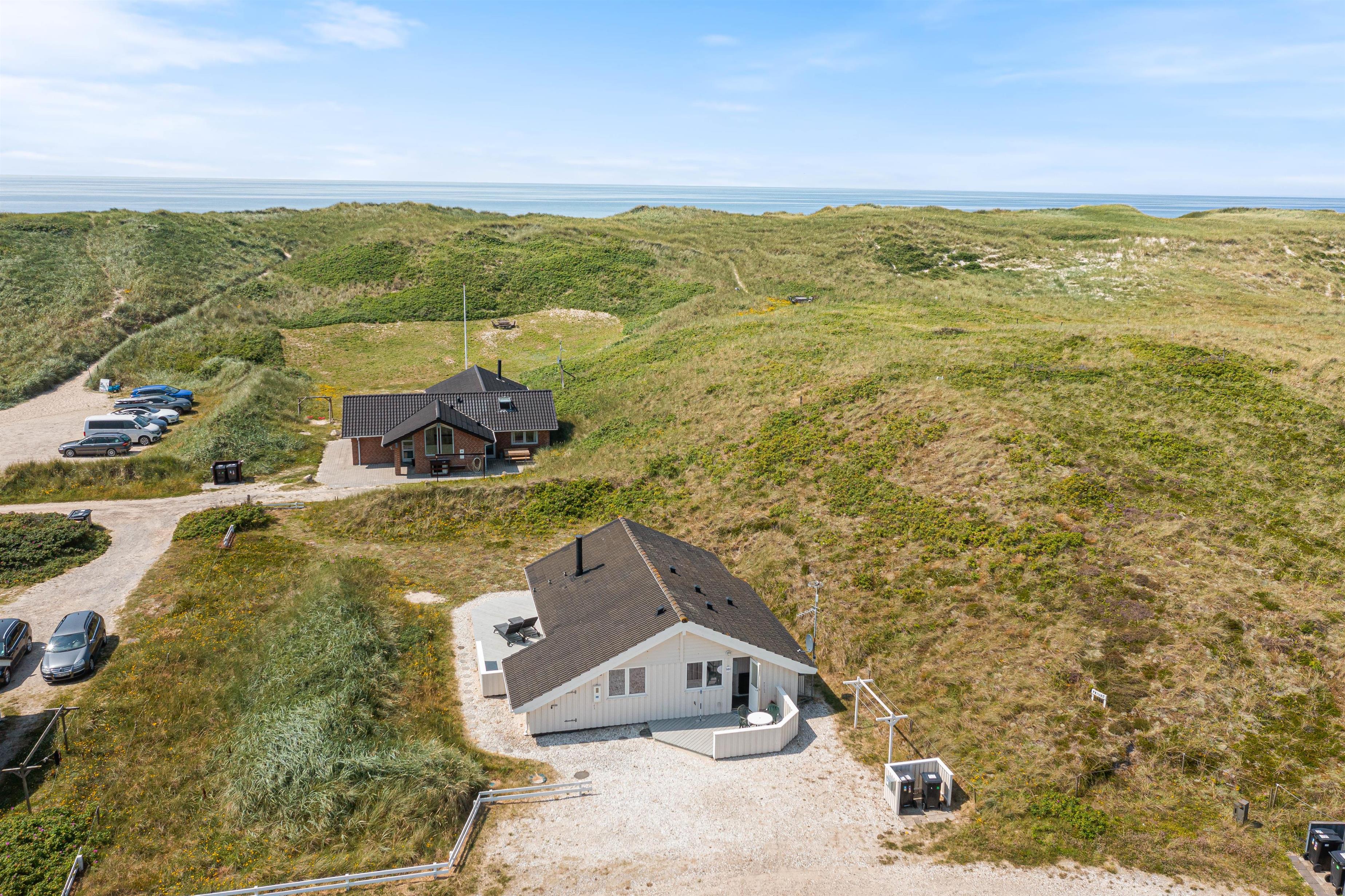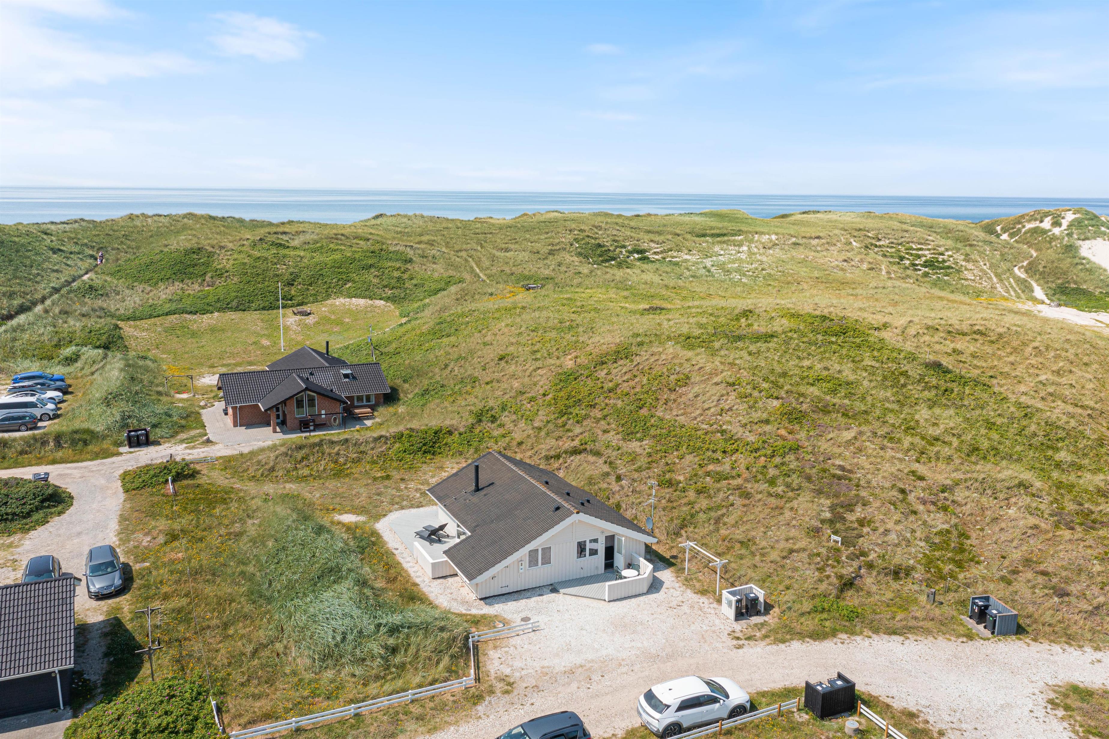 Sommerhuset har den perfekte beliggenhed, hvis du vil holde en ferie, hvor natur og afslapning er centrum. Feriehuset ligger på en dejlig naturgrund direkte ved stranden og det smukke Vesterhav. Mod vest kan du slappe af og nyde havets brusen på en dejlig overdækket terrasse, og også mod syd kan du slappe af på liggestolen på den åbne træterrasse.