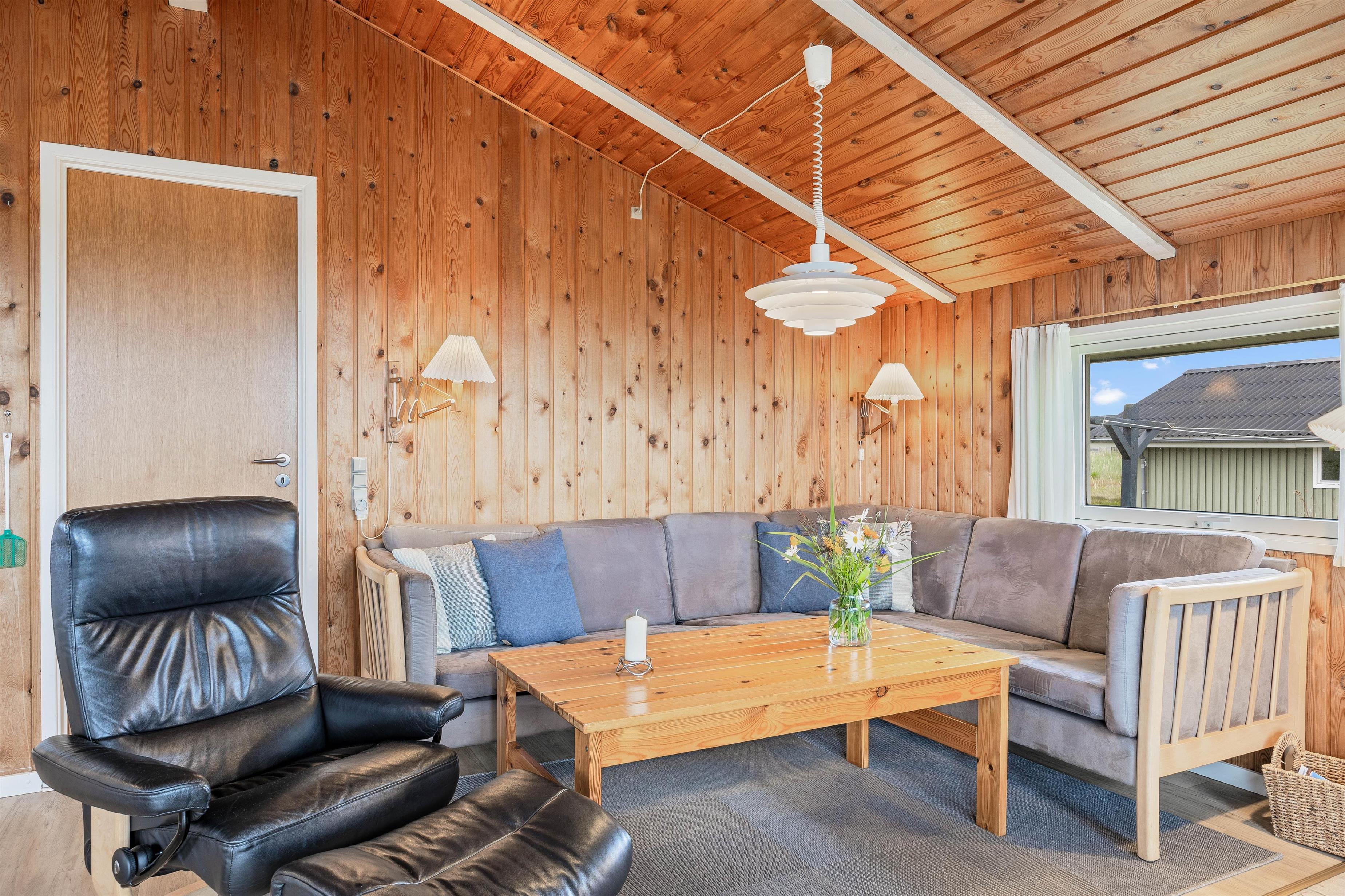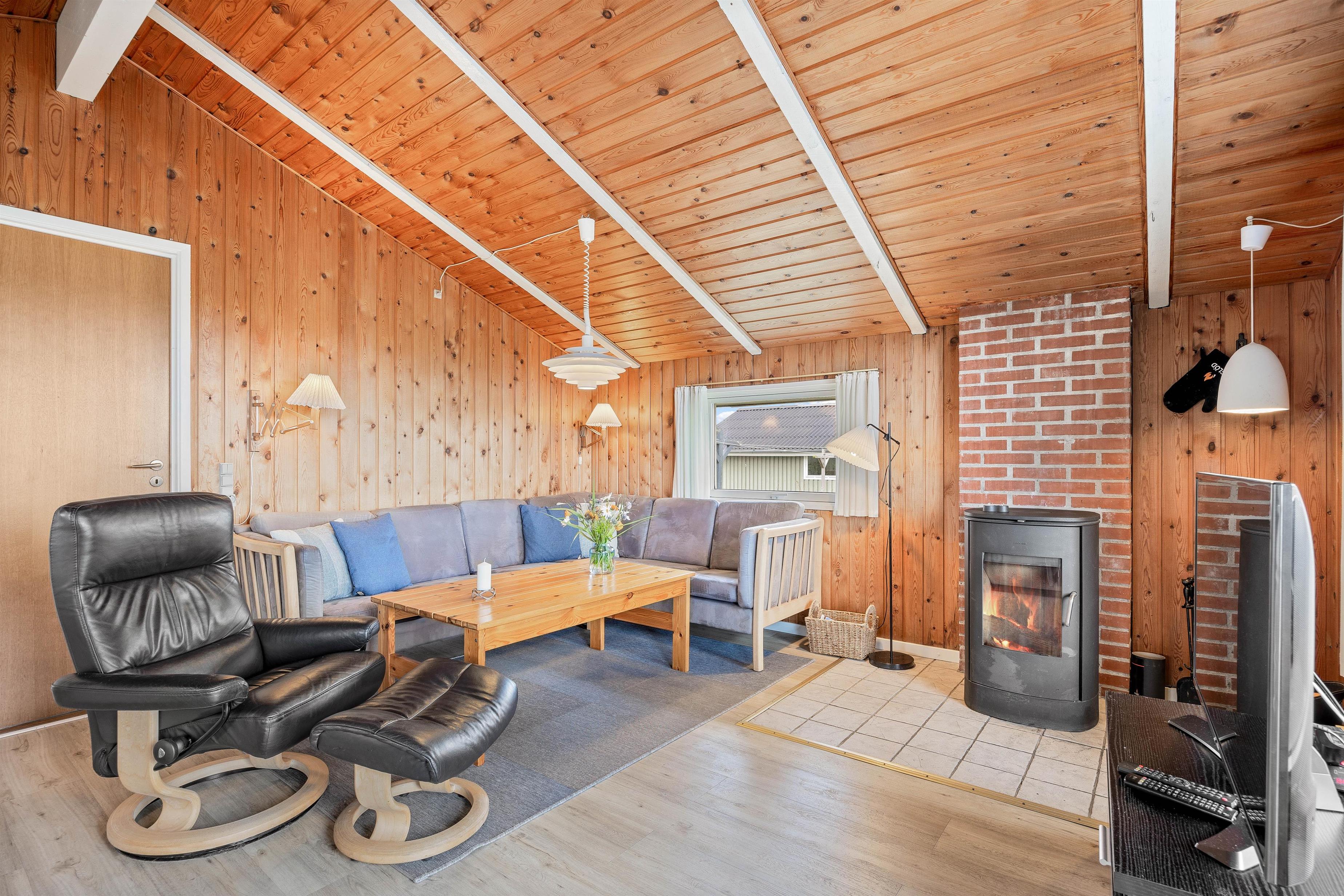 Centrum i sommerhuset er det hyggelige opholdsrum, hvor I både har køkken- og spiseafdeling, samt et hyggeligt sofahjørne foran TVet. På de køligere dage kan du måske nyde en god bog her foran den knitrende ild i brændeovnen.