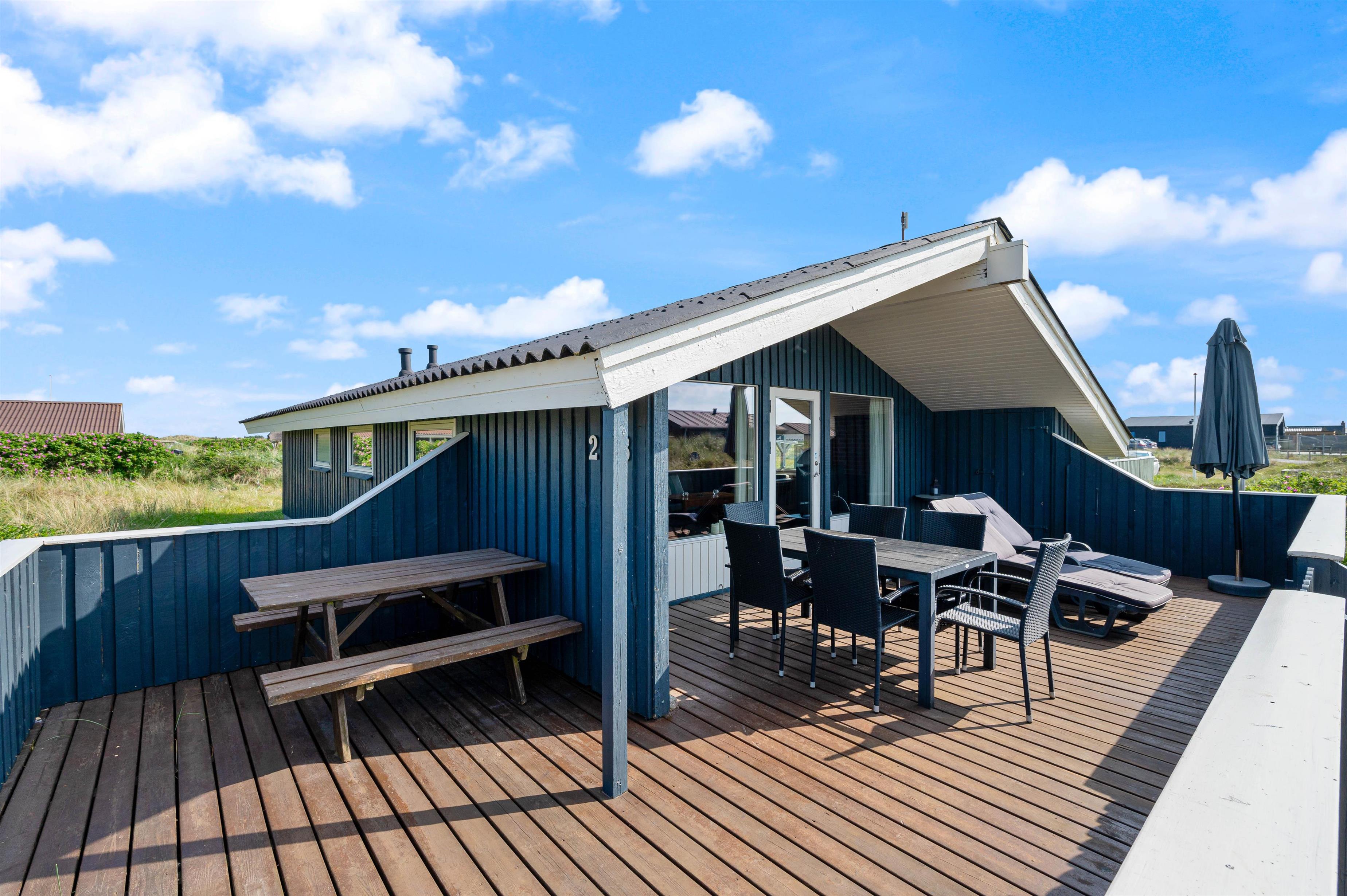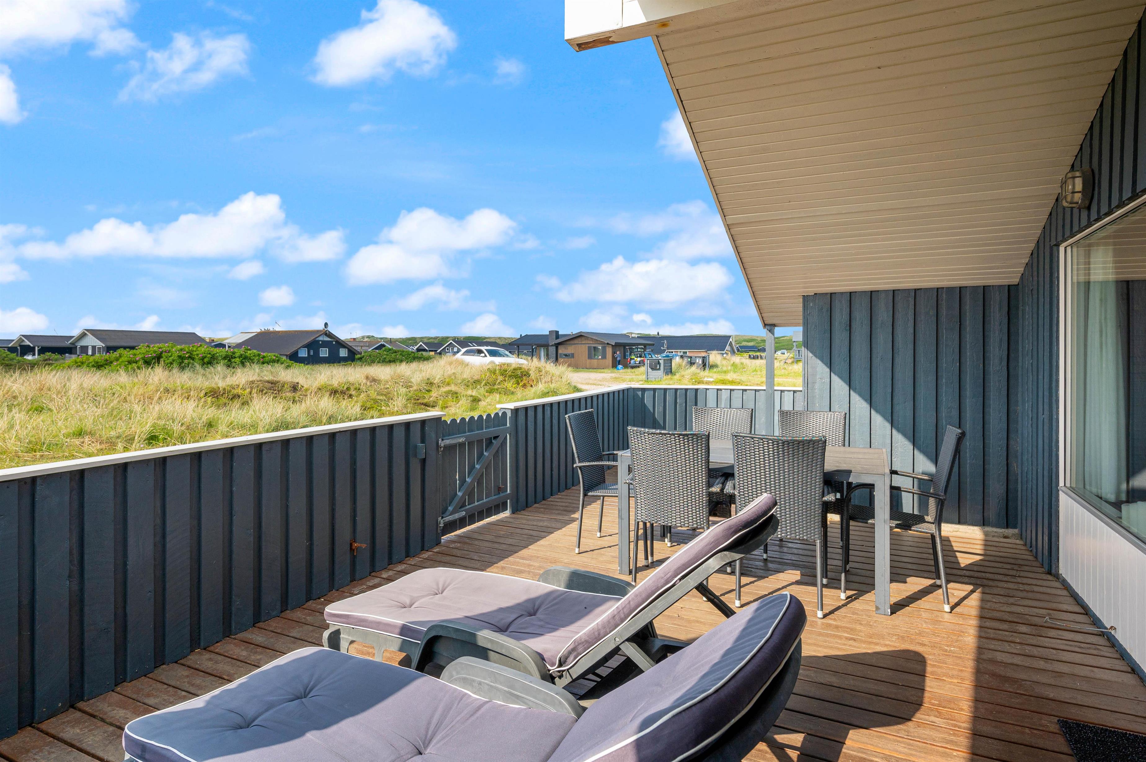 Nyd klitlandskabet og solen på den lukkede og delvis overdækkede terrasse, hvor I kan tilberede en lækker middag på grillen – og ved aftenstid nyde det smukke lys, når solen går ned over klitterne akkompagneret af havets brusen og med den salte duft i næsen.