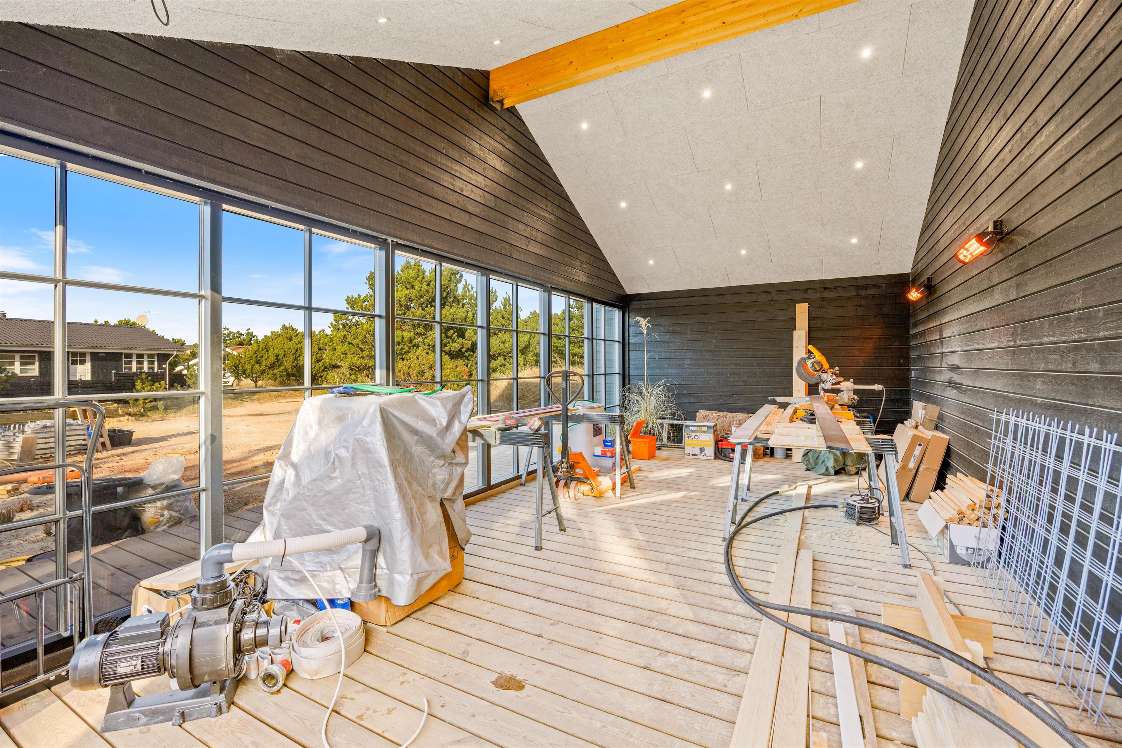 Velkommen til et unikt sommerhus beliggende på Bjerregårdsvej 189 kun 500 meter fra Vesterhavet. Feriehuset er opført i 2025, har plads til 10 personer samt 2 kæledyr og rummer alt, hvad I kunne drømme om – her er både en 16 m2 swimmingpool, aktivitetsrum og lækkert terrasseområde med udespa og sauna.