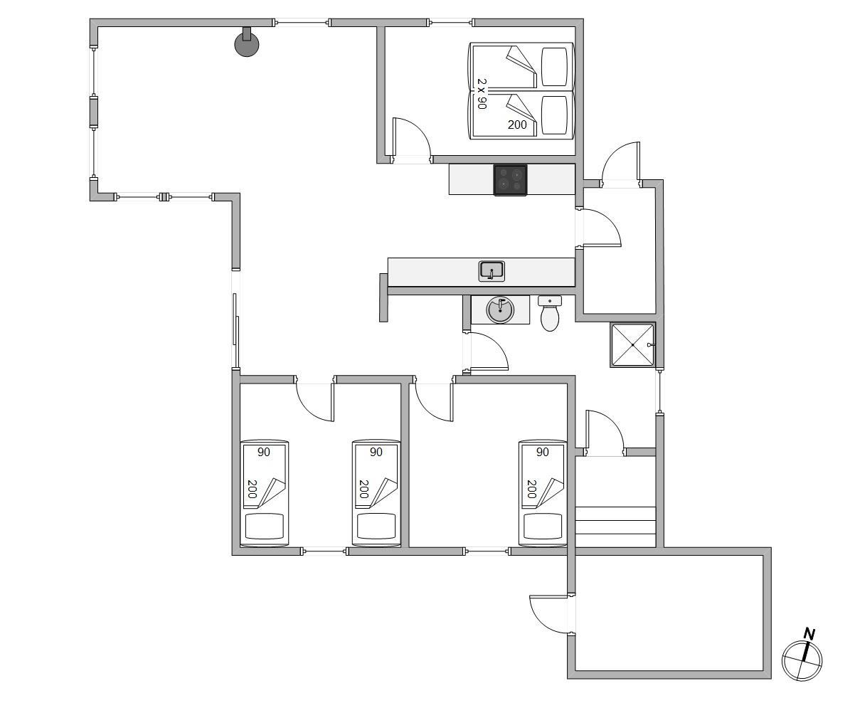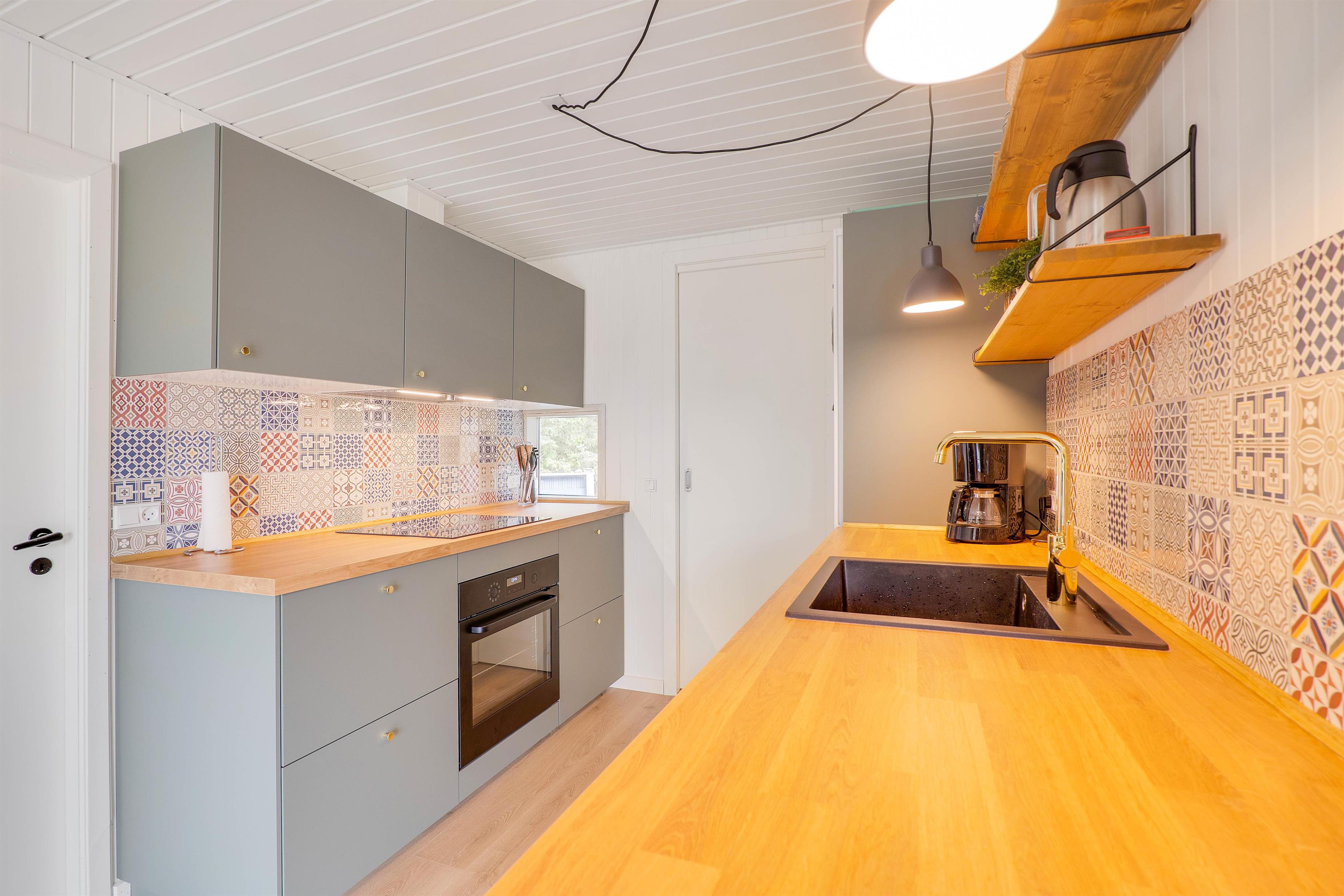 Inde i det blå sommerhus finder I 3 gode soverum og et køkken i forbindelse med det skønne leverum, hvor der er plads til hygge med hele familien. Her er både plads til brætspil, plads til at nyde et veltilberedt måltid og efterfølgende plads til at se en god film på langs i sofaen. Ekstra hygge spredes, når I tænder op i sommerhusets brændeovn – især efter en tur ved stranden eller netop hjemkommet med friskfanget fisk fra Hvide Sande, er det skønt.