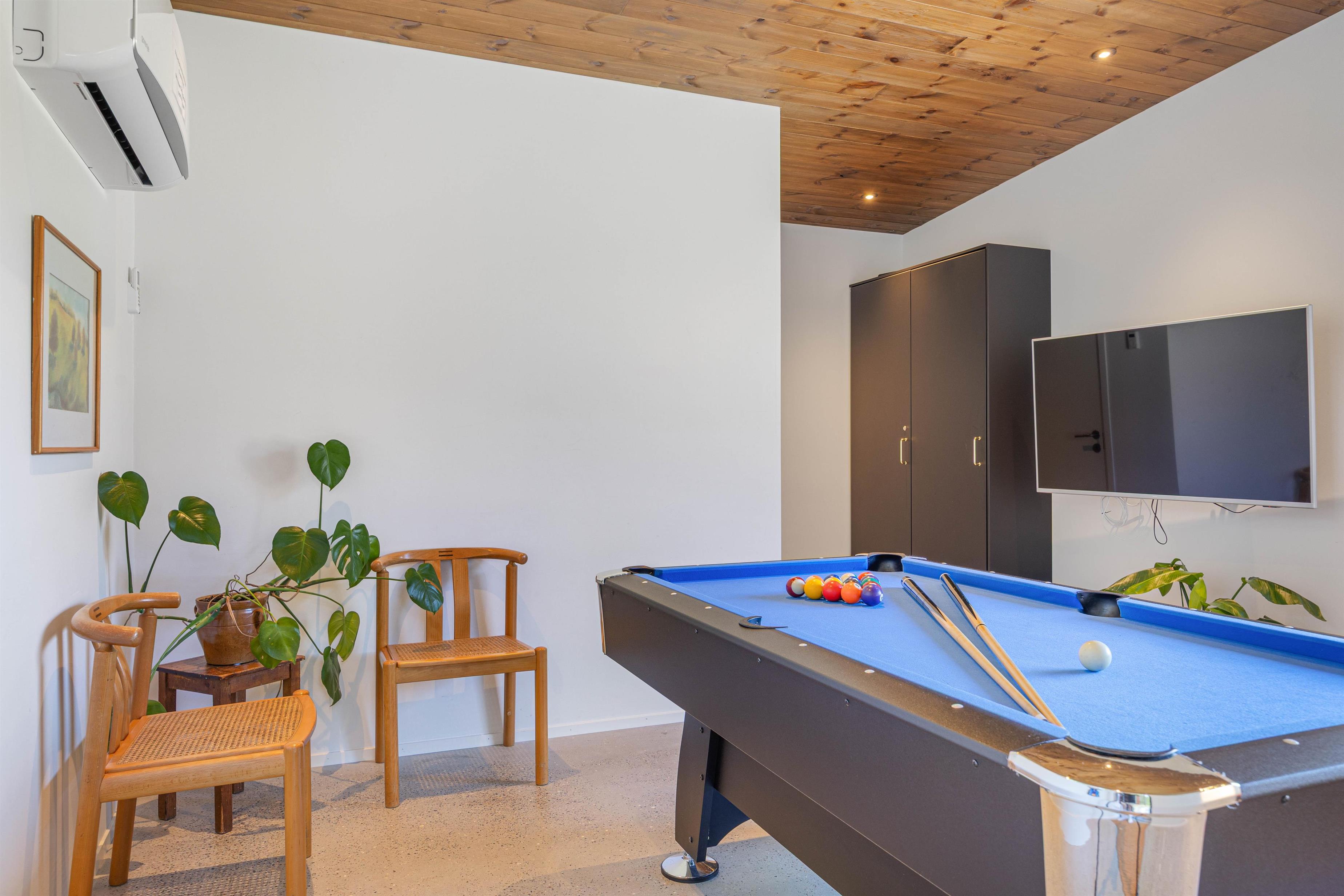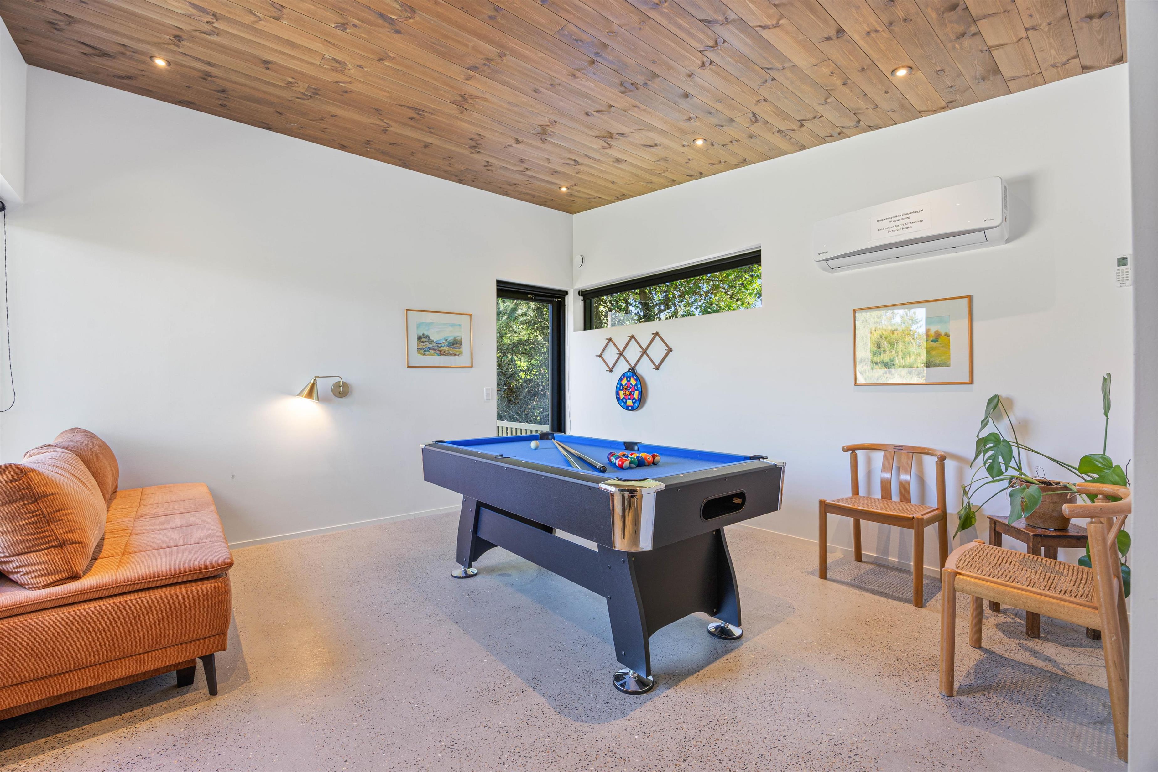 Sommerhusets akitivtetsrum byder på sjov for hele familien. Her kan I arrangere turneringer på kryds og tværs og finde familiens spillemester i billard.